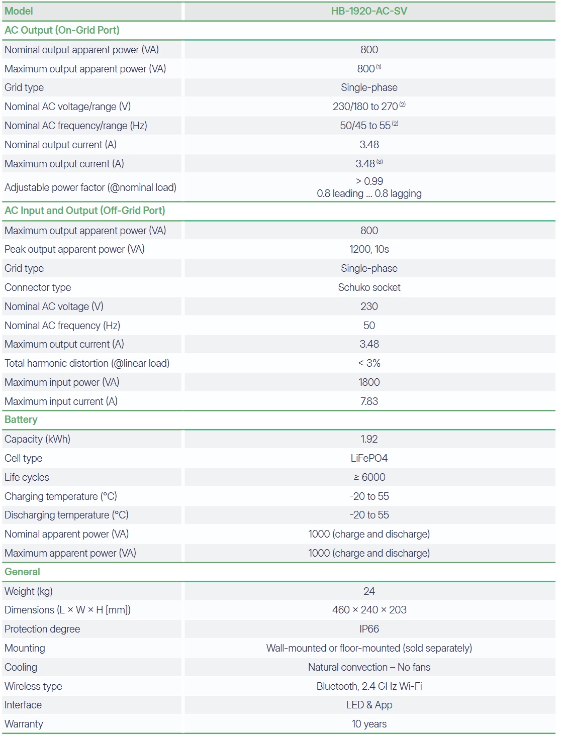 Wer sich bereits mit dem Vorgängermodell beschäftigt hat, wird feststellen, dass die technischen Daten in Bezug auf die Ausgangs- und Eingangsleistung denen des MS-A2 entsprechen. Es handelt sich bei der HiBattery um einen reinen AC-Speicher. Das bedeutet, dass die Solarmodule nicht direkt an das Speichersystem angeschlossen werden. Der Speicher kann entweder mit einem externen Wechselrichter verbunden oder durch PV-Überschuss direkt geladen werden. Die Hoymiles HiBattery 1920 AC bietet eine Einspeiseleistung von 800W, welche im “Eigenverbrauchsmodus” oder Off-Grid Betrieb auf bis zu 1.000W gesteigert werden kann. Die Eingangsleistung liegt bei 1.800W, wobei sich diese in 1.000W Ladeleistung und 800W Einspeiseleistung aufteilt. Das bedeutet, dass bei 1.800W Wechselrichterleistung 1.000W zur Ladung verwendet und 800W in euer heimisches Stromnetz eingespeist werden.