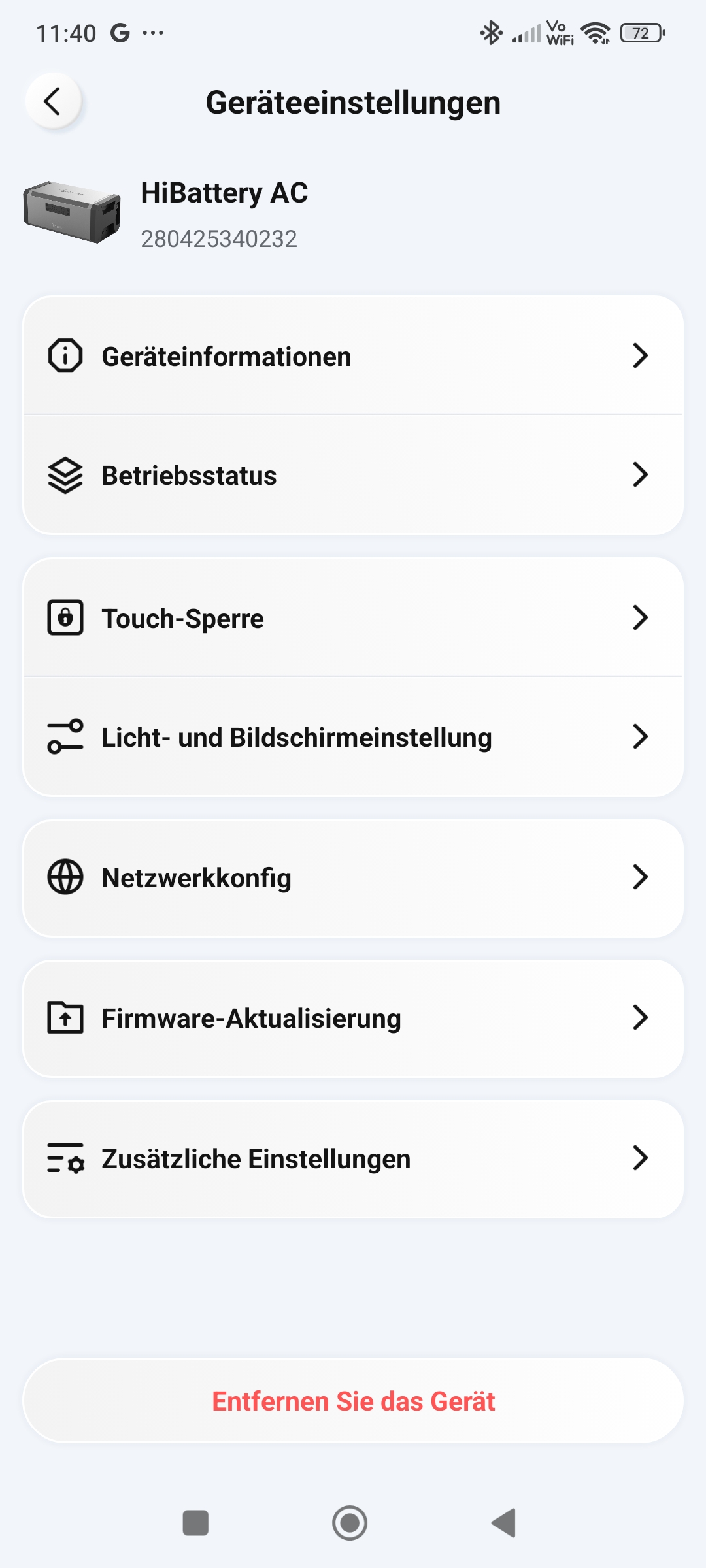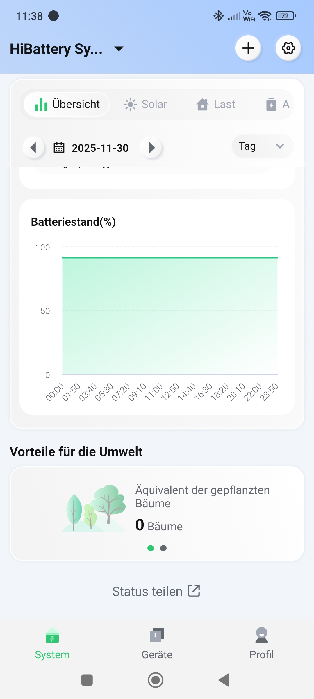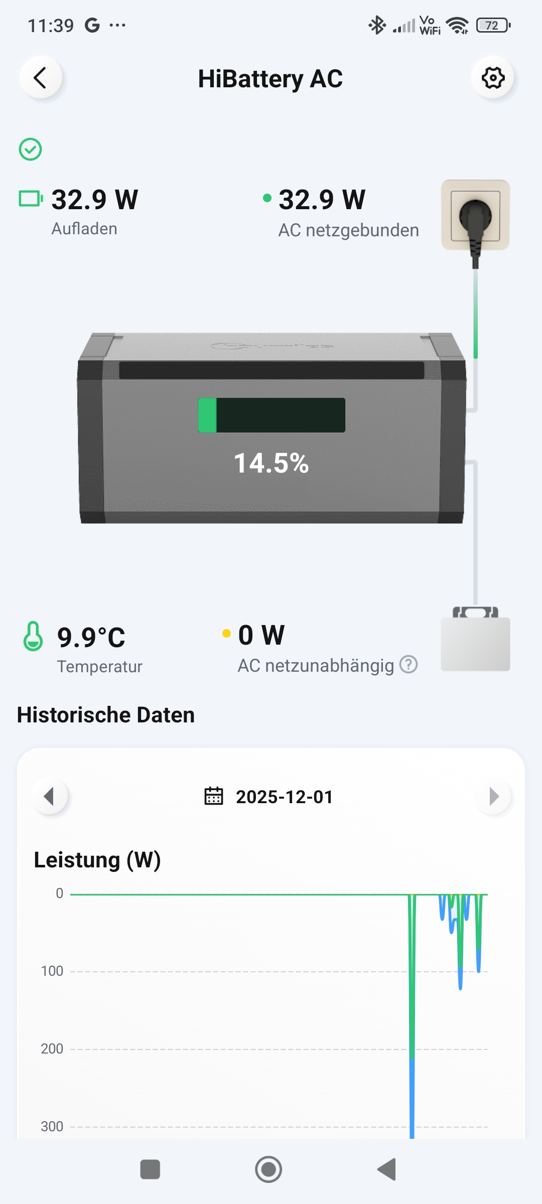 Der Stand-By-Verbrauch der HiBattery liegt bei rund 3,5W (Netzbezug) und somit in einem moderaten Bereich für ein Speichersystem dieser Leistungsklasse.
