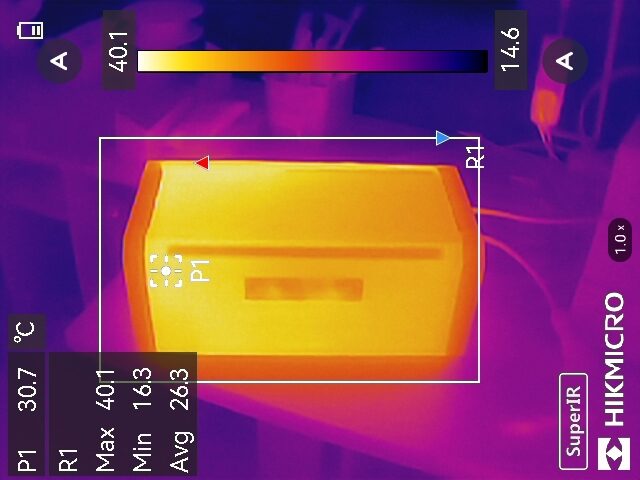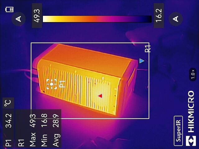 Mit einer Oberflächentemperatur von 40°C auf der Vorderseite und einer maximalen Temperatur am Kühlkörper von rund 50°C überzeugt die HiBattery mit einem vorbildlichen Temperaturverhalten. Auch wenn hier im Sommer bis zu 20°C mehr zu erwarten sind, sollten sich selbst unter Vollast keine Probleme einstellen.