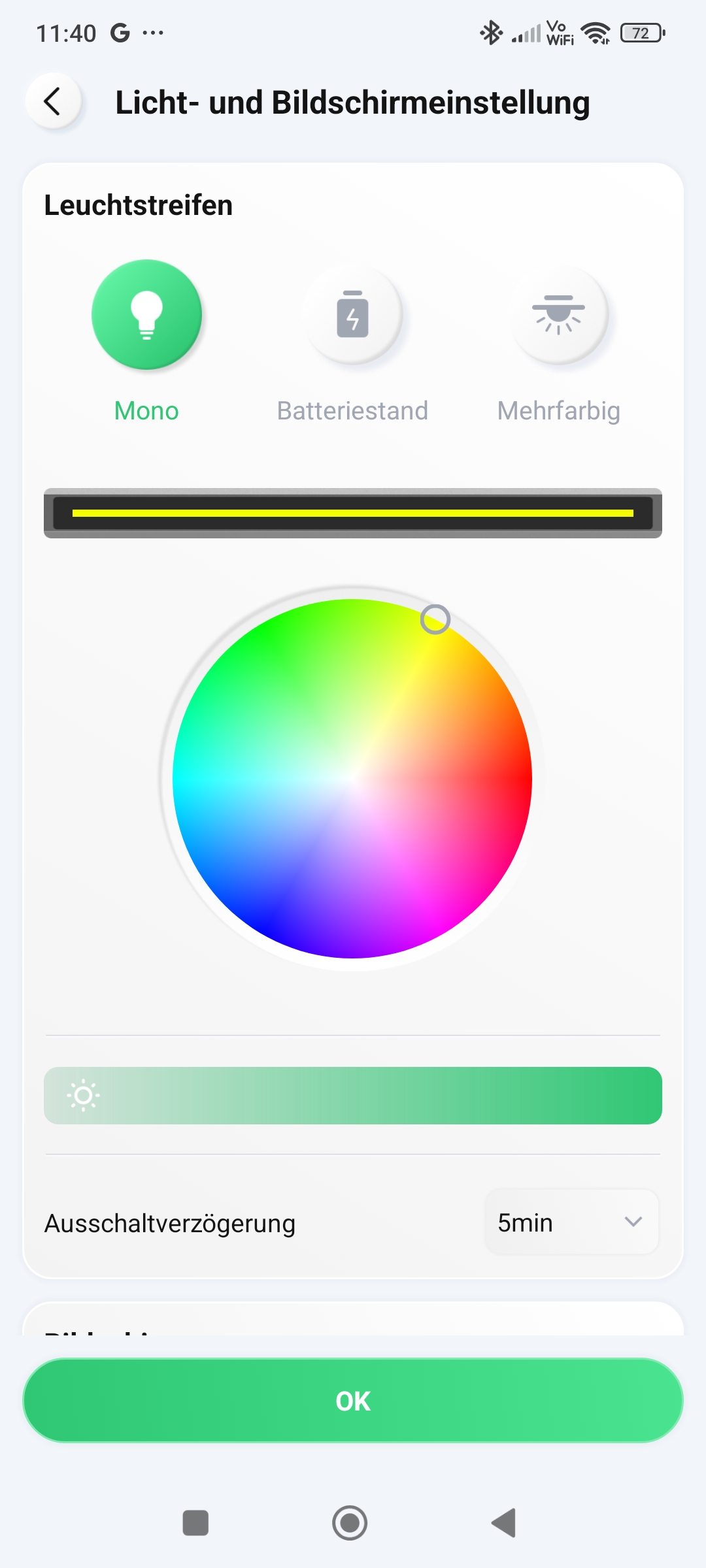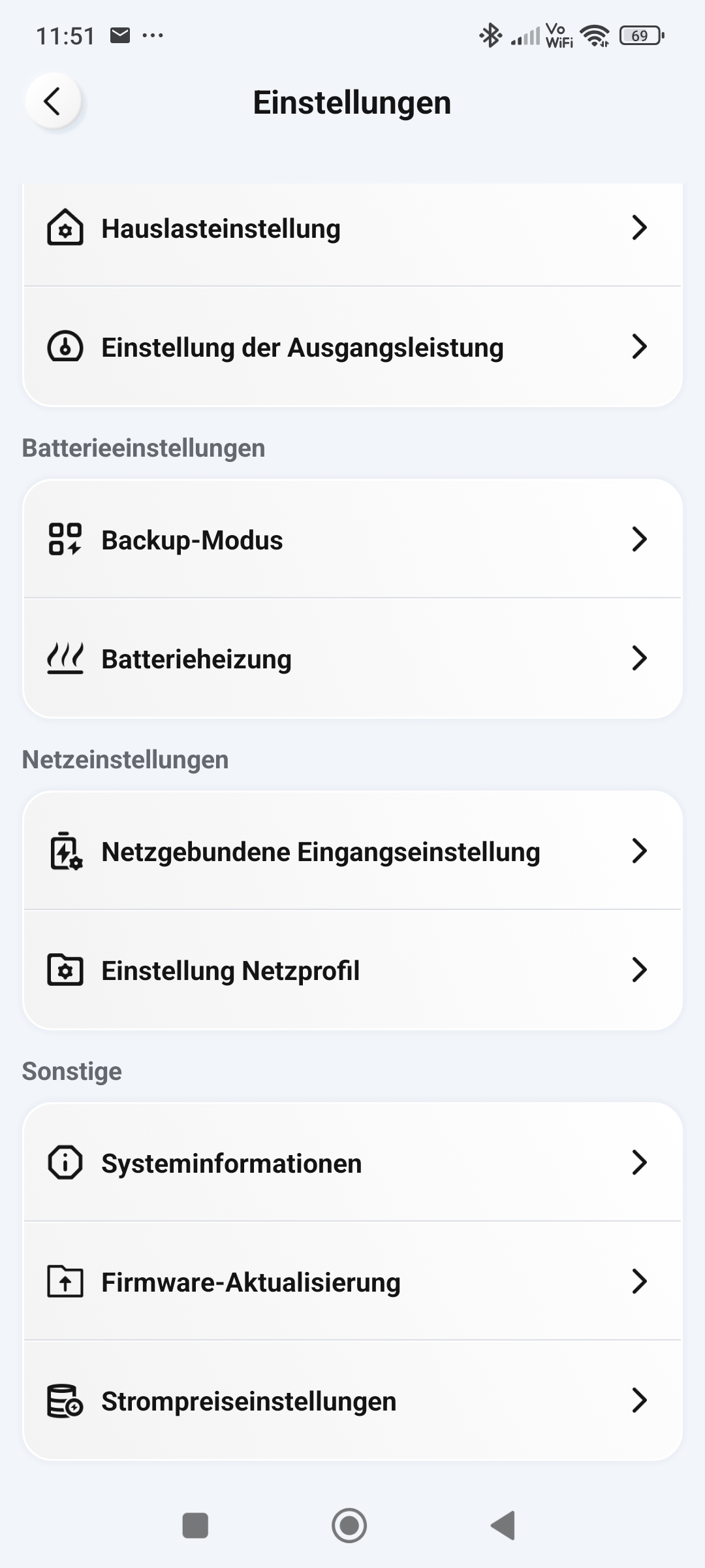 In den Einstellungen kann die maximale Ausgangsleistung im Bereich von 0-1000W (2000W bei Verwendung von mehreren HiBatterys) festgelegt werden. Die 1000W Ausgangsleistung sind nur in Verbindung mit einem Smart-Meter nutzbar. Hier wird sichergestellt, dass im Haushalt bis zu 1000W kompensiert, aber niemals mehr als 800W in euer Hausnetz eingespeist werden. Im Backup-Modus kann das System für die Off-Grid Nutzung vorbereitet werden. Hier kann entweder die manuelle Ladung aktiviert oder eine bestimmte SoC Reserve für einen bestimmten Zeitraum festgelegt werden. Die Ladeleistung über das heimische Stromnetz/PV-Überschuss lässt sich ebenfalls im Bereich von 100-1000W konfigurieren. Selbstverständlich bietet die App auch die Möglichkeit, Firmwareupdates durchzuführen, allgemeine Informationen einzusehen, die Temperatur des Akkusystems auszuwerten und das Farbprofil für den LED-Streifen individuell anzupassen.