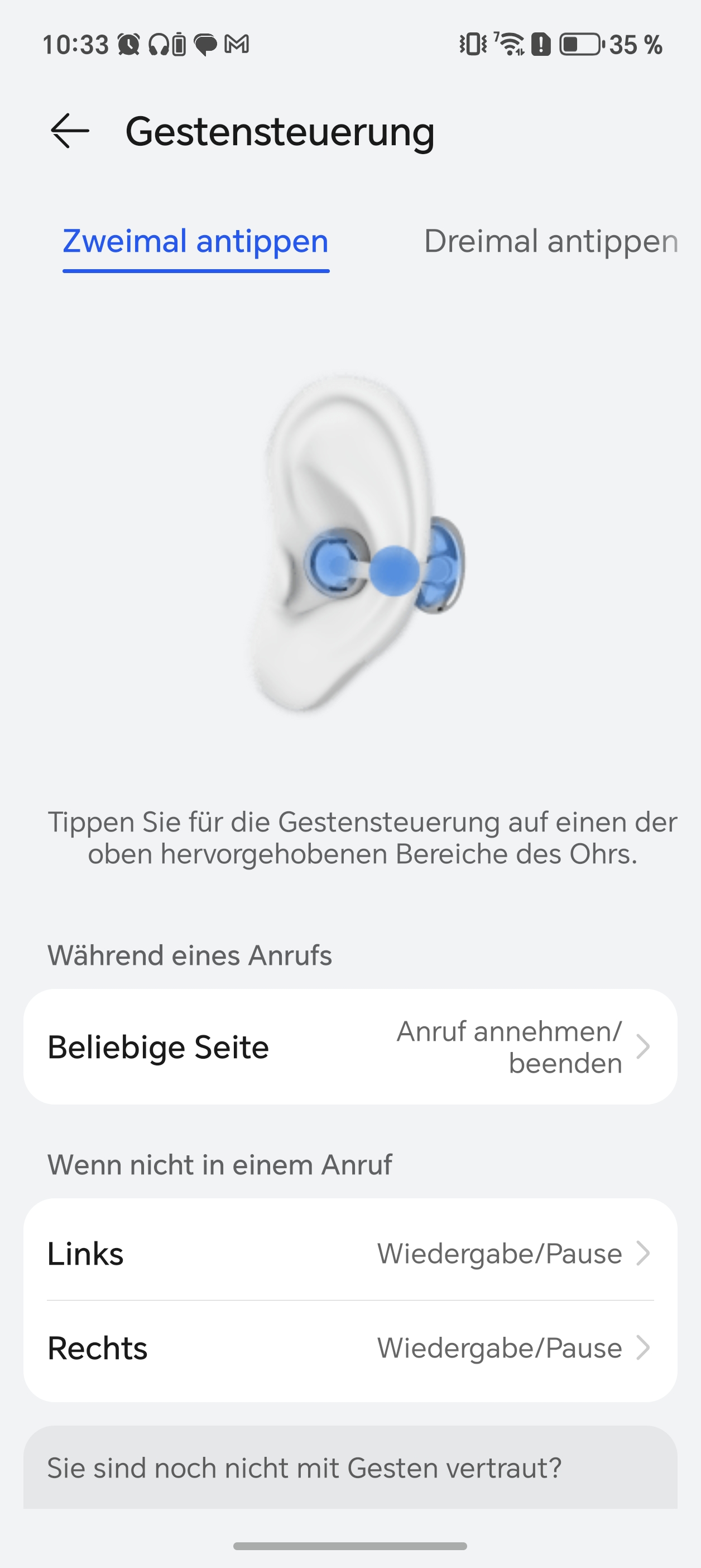 - Zweimal Antippen rechts – Wiedergabe/Pause oder Nächster/Vorheriger Titel oder Sprachassistent