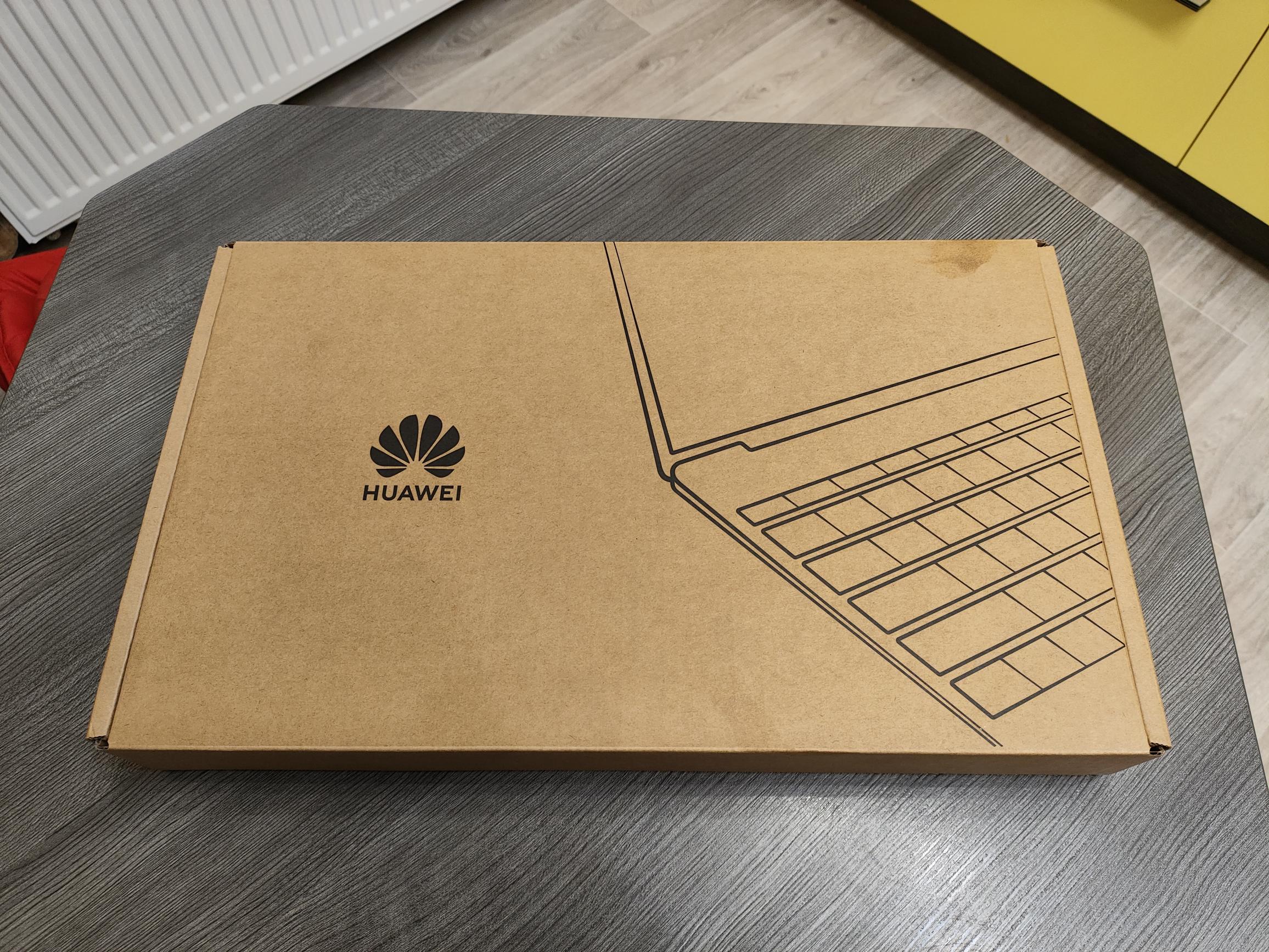 In dem braunen unscheinbaren Karton befindet sich neben dem Huawei Matebook 14 eine Tastaturschutzmatte, der 65W Ladeadapter und ein 180 Zentimeter langes USB-C-Kabel. Natürlich darf auch eine passende Kurzanleitung nicht fehlen.