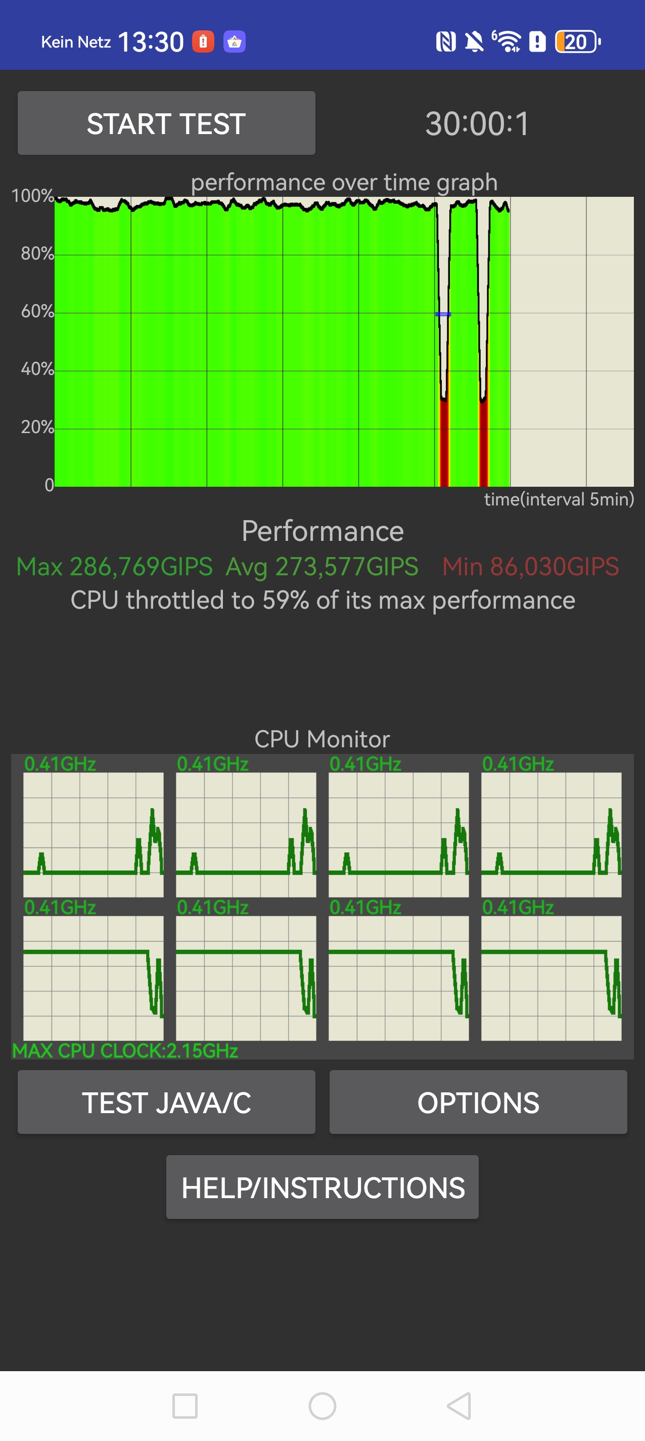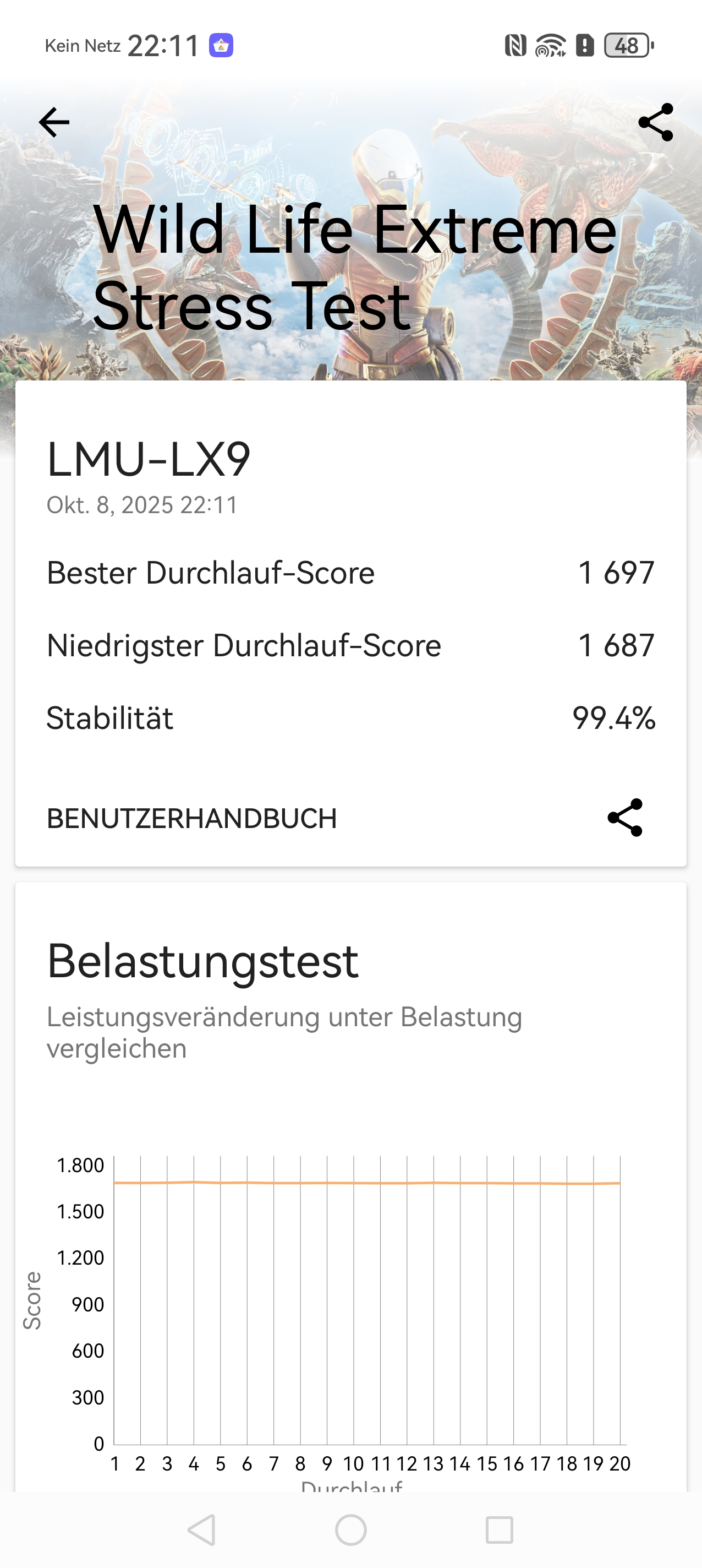 Immerhin hat Huawei das Thermal Management im Griff: Weder bei der CPU noch bei der GPU konnten wir nennenswertes Throttling feststellen. Der Chip bleibt also auch unter Last stabil. Hier schneidet das Huawei besser ab als beispielsweise Googles Pixel 10 Smartphones mit den Tensor G5 Chips, die eine ähnliche Leistung bieten, unter Last aber stark einbrechen.