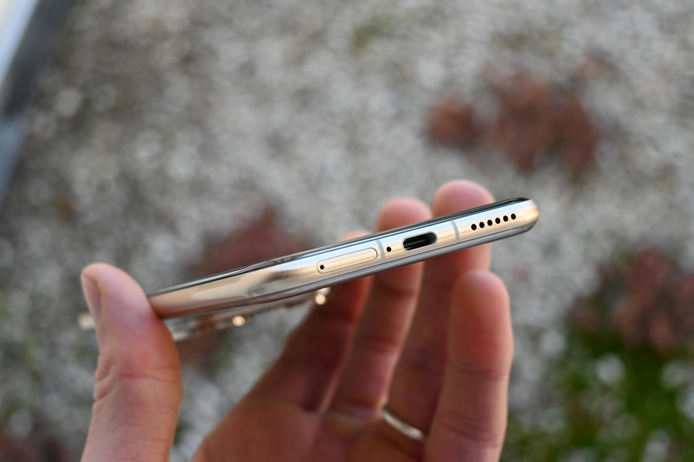 Am unteren Rand finden sich der USB-C-Anschluss und der Dual-SIM-Einschub. Positiv ist, dass der Anschluss den USB-3-Standard (5Gbit/s) unterstützt und auch einen Display-Output mit Desktop-Modus ermöglicht. Insgesamt bietet das Pura 80 Ultra eine solide Verarbeitung, auch wenn das rutschige Finish und das hohe Gewicht im Alltag negativ auffallen.