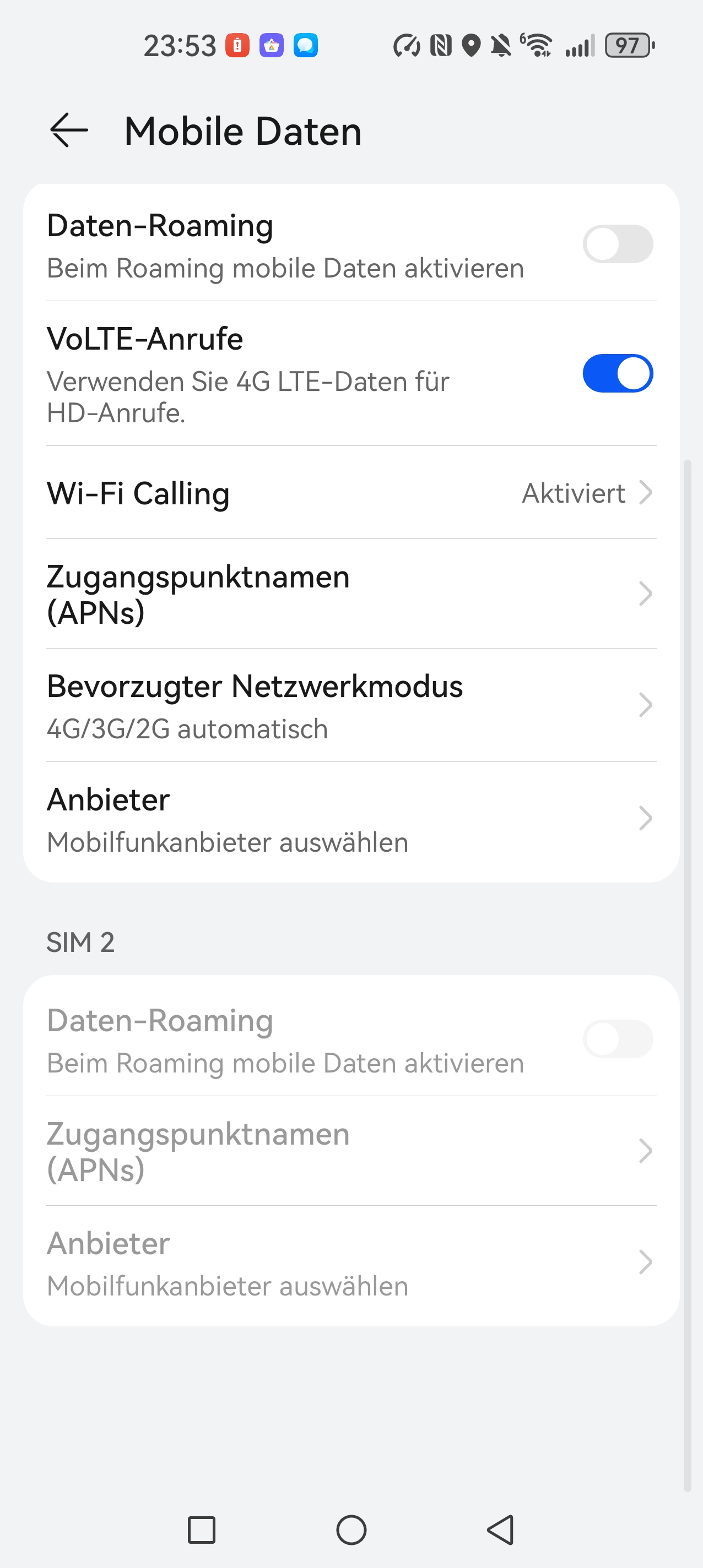 Damit ist auch das in Deutschland wichtige LTE-Band 20 abgedeckt. Ein großes Manko in dieser Preisklasse ist jedoch die fehlende 5G-Unterstützung außerhalb Chinas. Im Alltag störte dies im Test zwar nicht, da der Empfang im 4G-Netz durchweg gut war, für ein Flaggschiff ist dies aber dennoch ein erheblicher Nachteil. Die Gesprächsqualität war im Test sehr gut. Funktionen wie VoLTE und VoWiFi werden ebenfalls unterstützt.