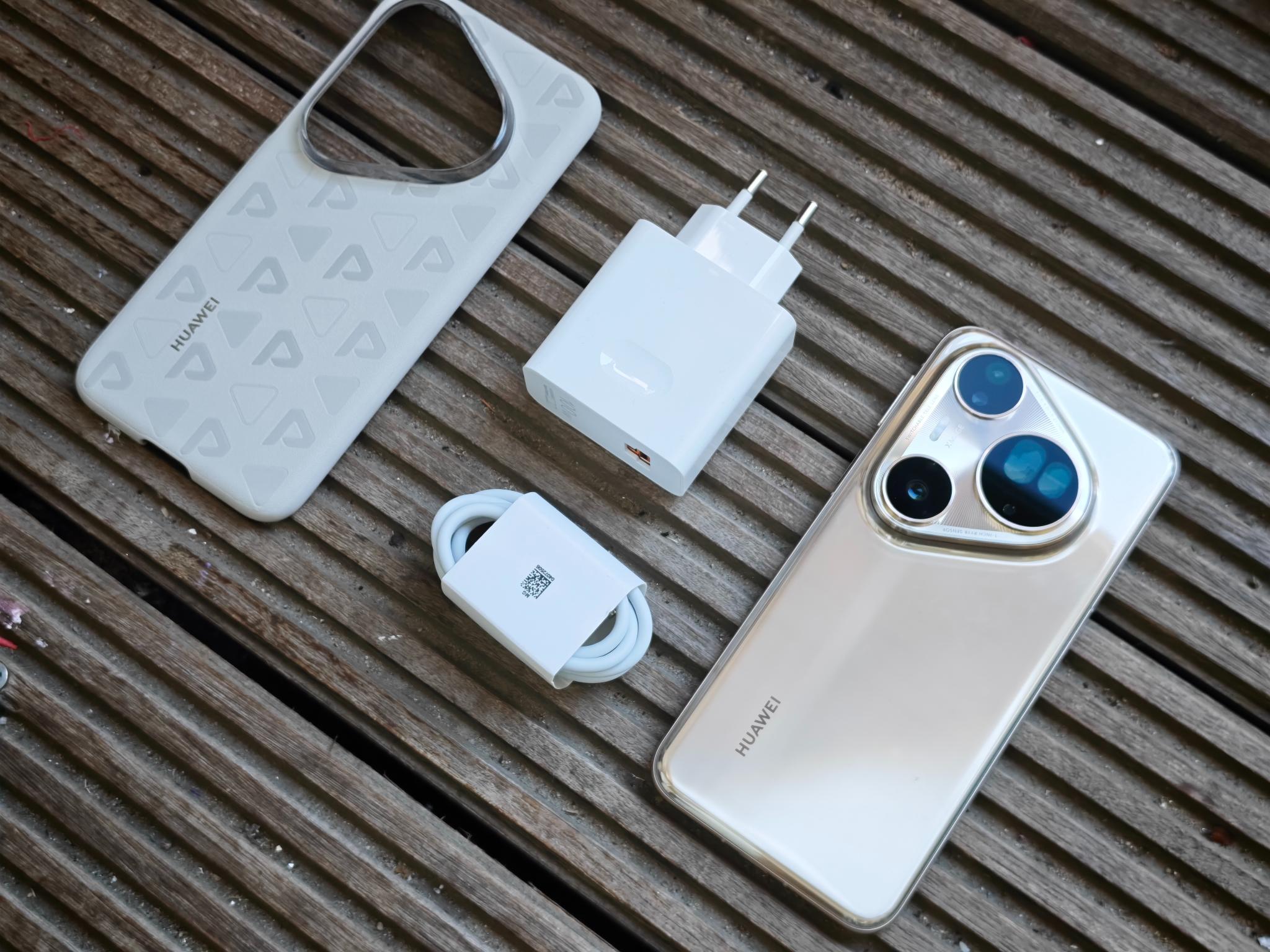 Der Lieferumfang des Huawei Pura 80 Ultra ist umfangreich. Neben einem USB-C-Kabel legt der Hersteller auch ein 100W-Netzteil bei. Besonders ist, dass dieses sowohl einen USB-A- als auch einen USB-C-Anschluss bietet.