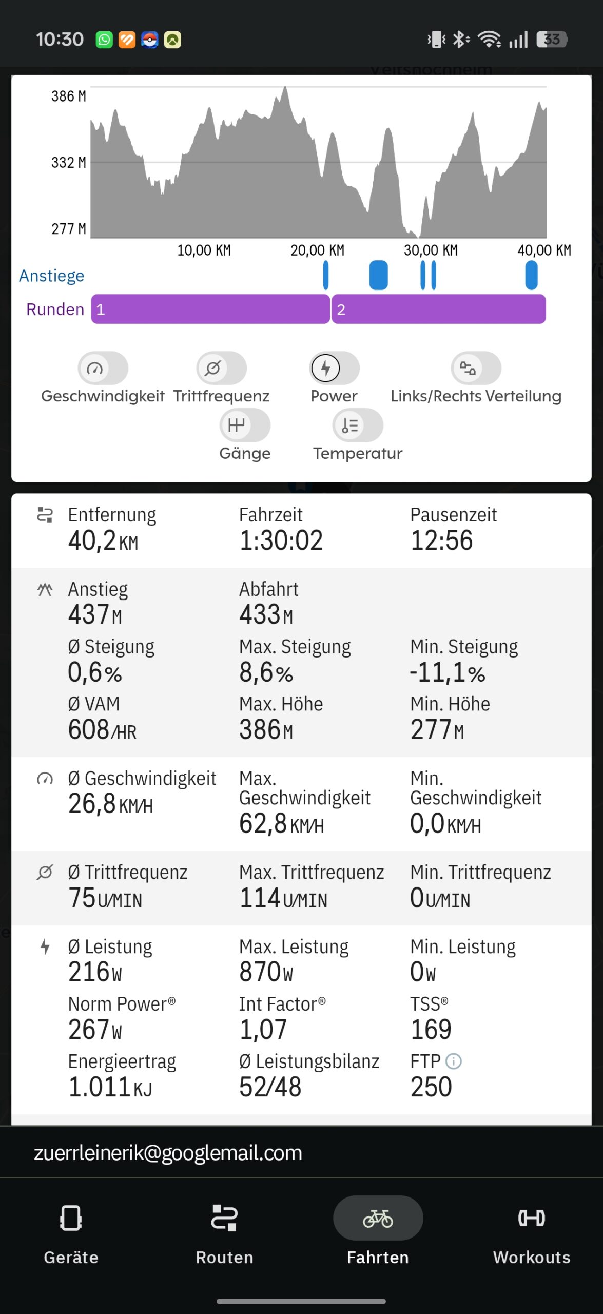 - Fahrrad – mit all den Zusatzmetriken