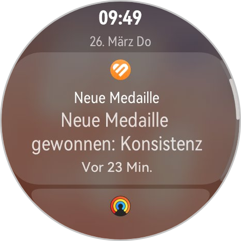 Die Menüstruktur ist logisch aufgebaut: Ein Wisch nach rechts führt zu individualisierbaren Informationskarten (Aktivitätsringe, Gesundheitsübersicht, Wetter), ein Wisch nach unten öffnet die Schnelleinstellungen, und Benachrichtigungen finden sich am unteren Bildschirmrand. Auf eingehende Messenger-Nachrichten könnt ihr direkt von der Uhr aus mittels vorgefertigter Kurzantworten oder einer kleinen On-Screen-Tastatur antworten.