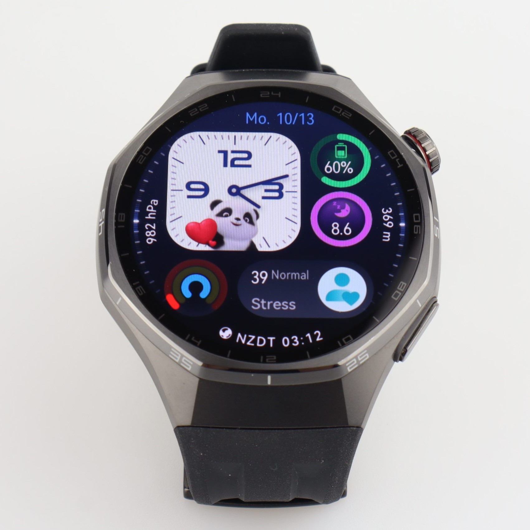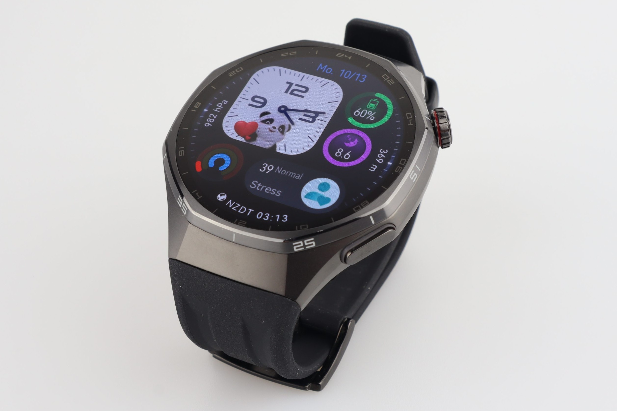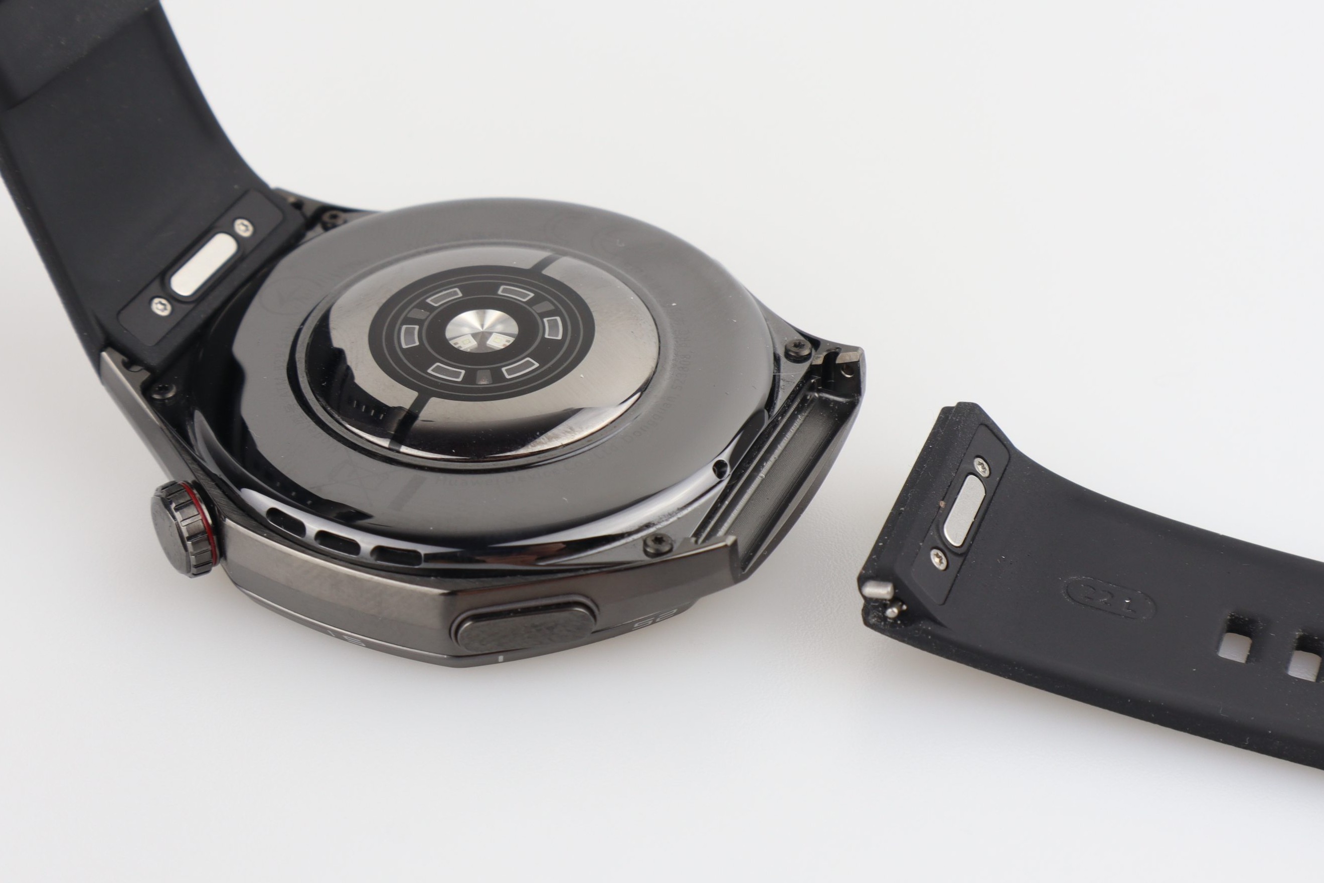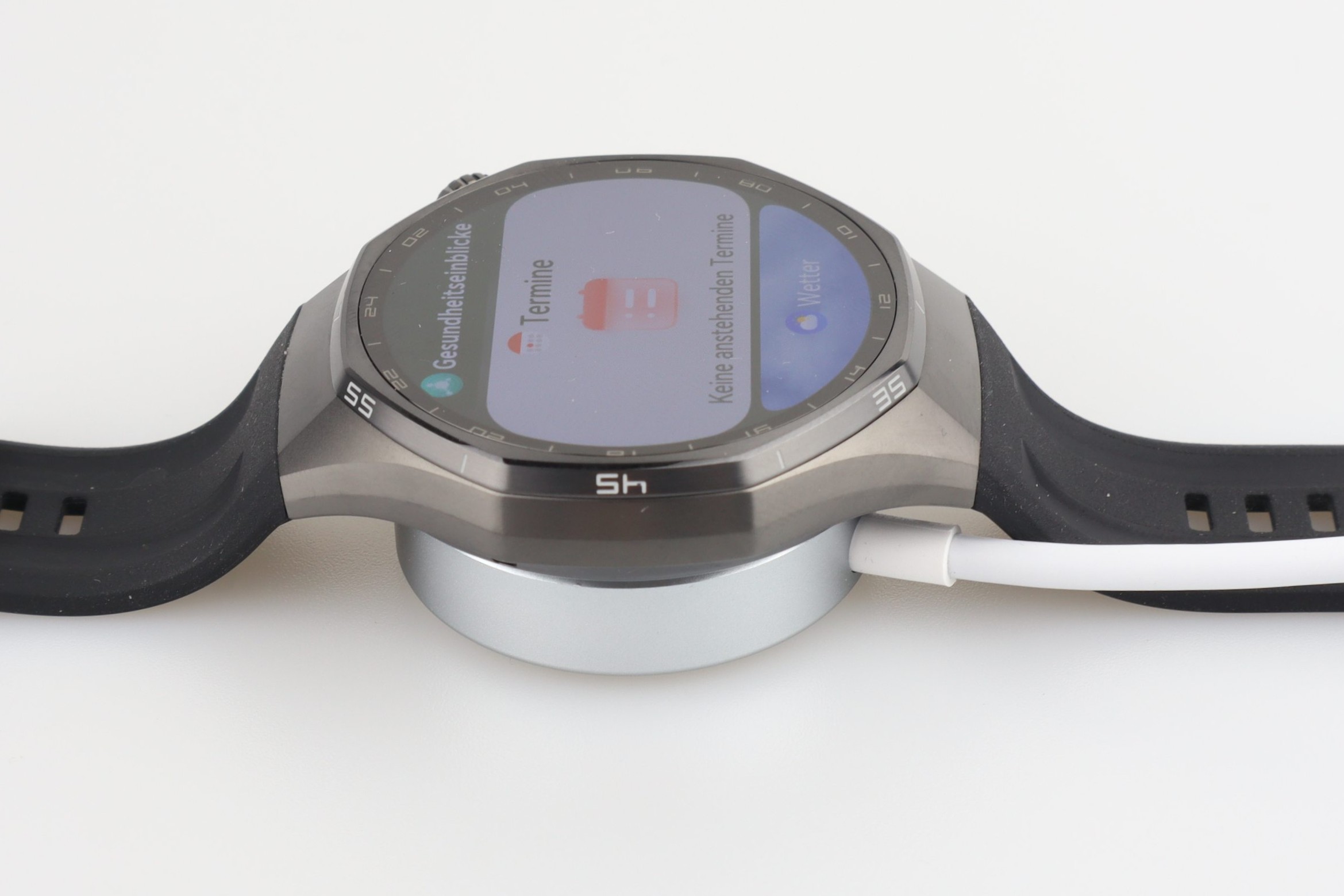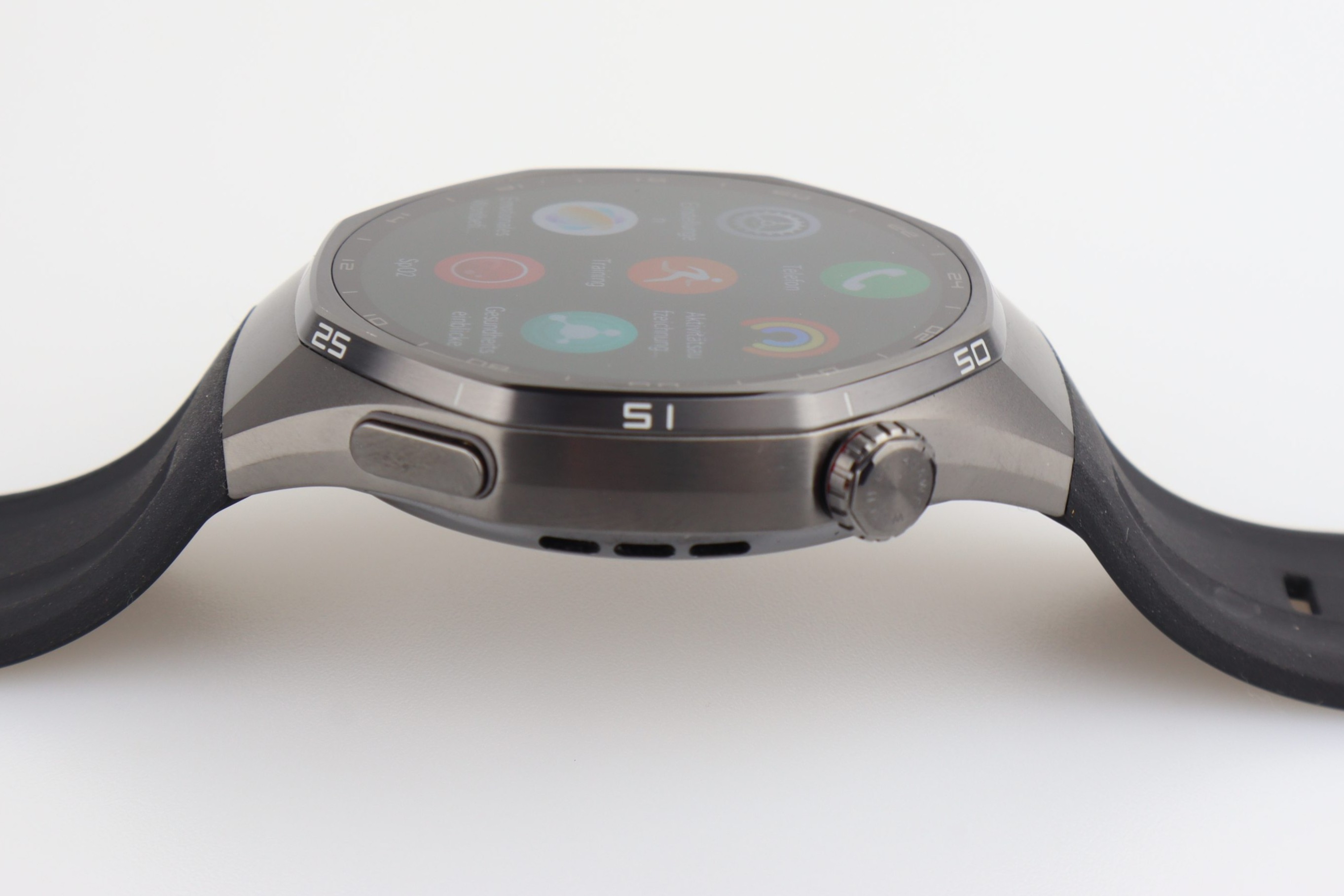 Das Gehäuse aus einer Titanlegierung verleiht der Uhr eine matte, edle Optik, zudem ist sie angenehm zu tragen. Die Verarbeitung ist, wie von Huawei gewohnt, auf höchstem Niveau. Alle Kanten sind präzise gefräst, die drehbare Krone an der Seite bietet ein angenehmes haptisches Feedback und die seitliche Taste hat einen klaren Druckpunkt.