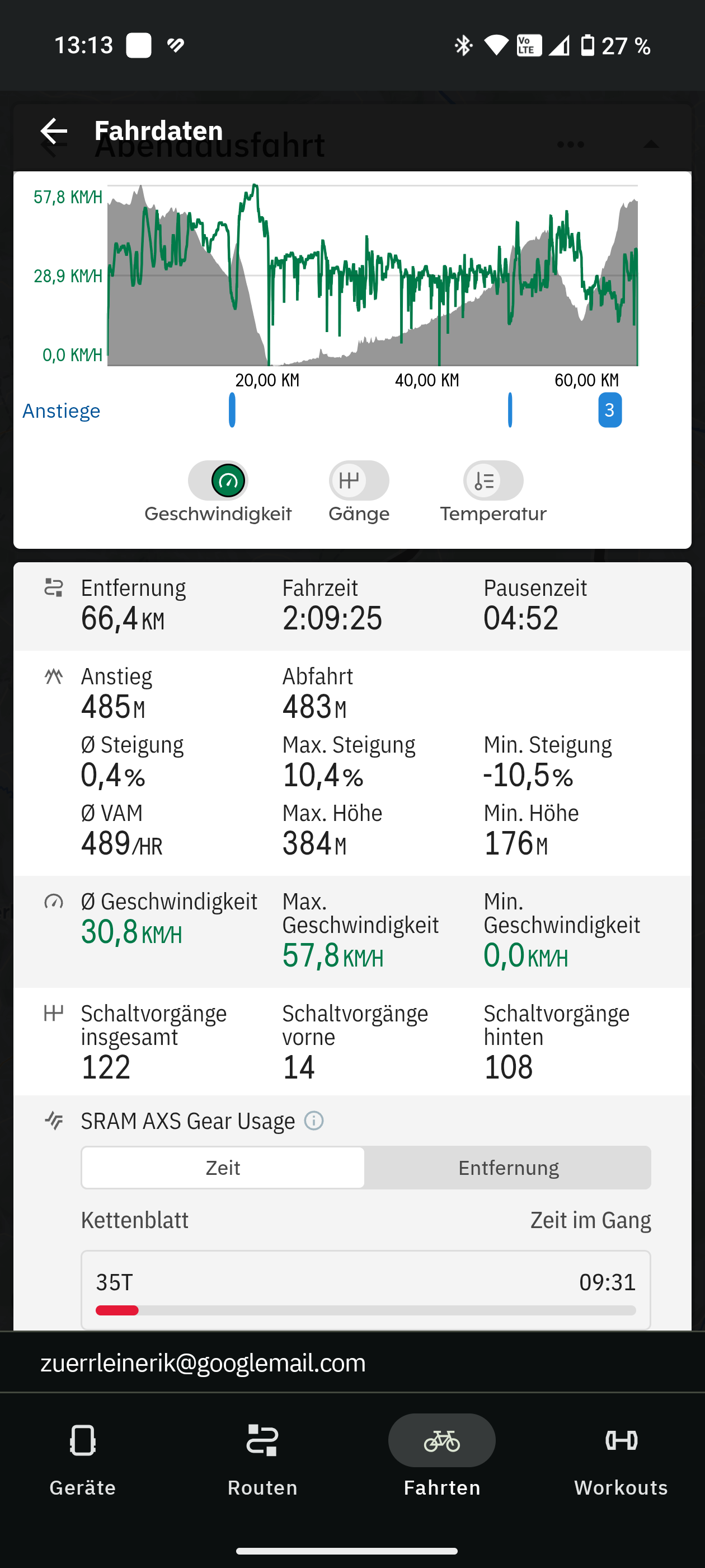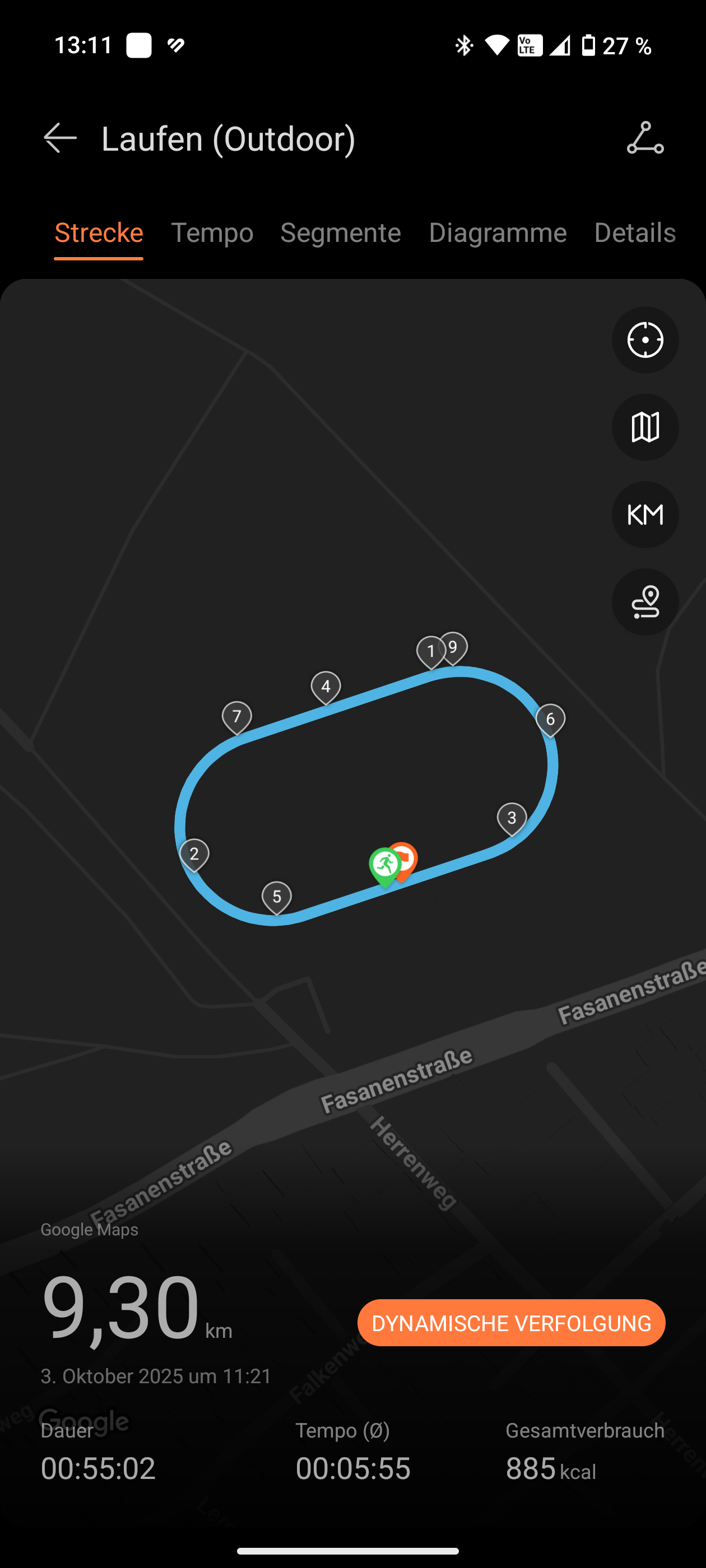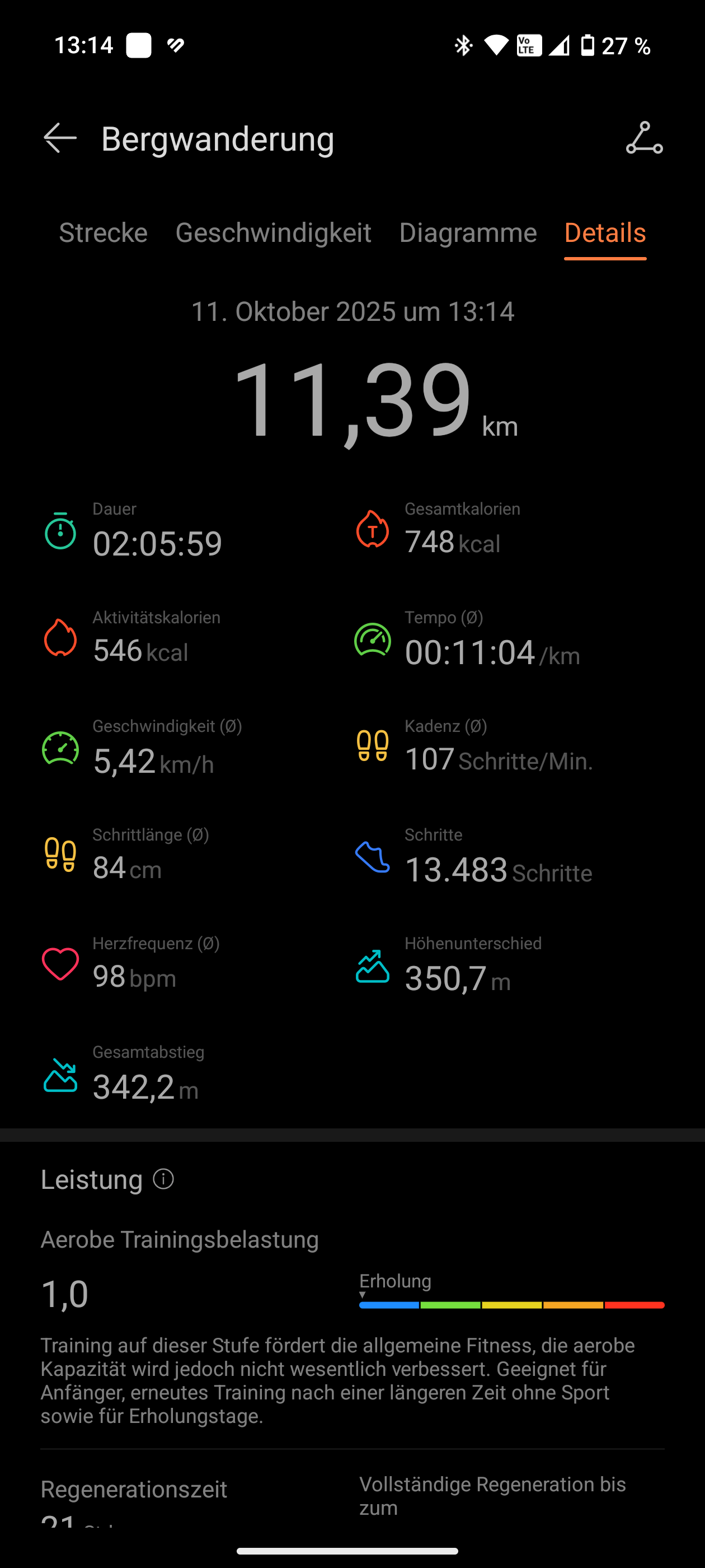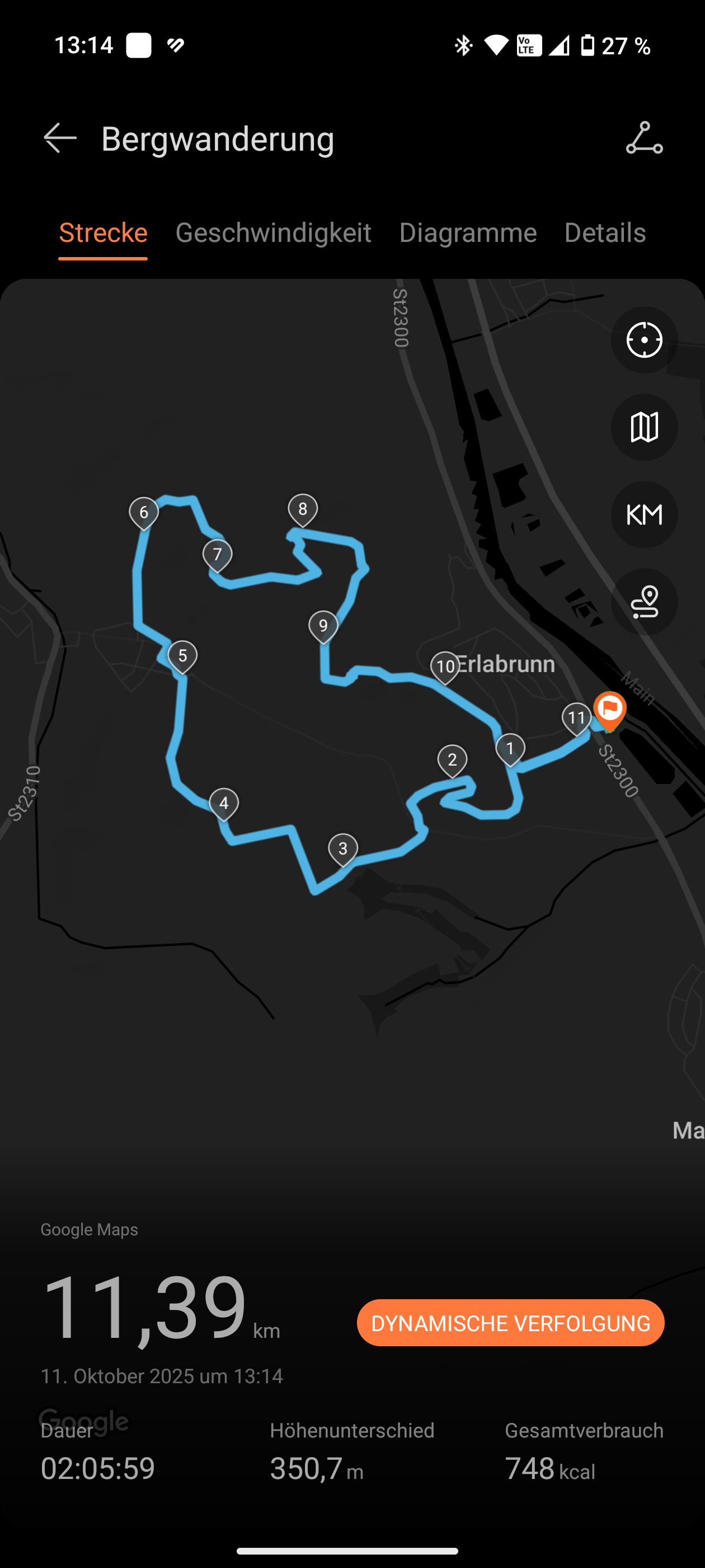 Die Huawei Watch GT6 Pro arbeitet exzellent. Im Vergleich mit einem Radcomputer war die aufgezeichnete Strecke deckungsgleich. Selbst ein Smartphone mit Dual-Band-GPS wird von der Smartwatch übertroffen, indem sie Kurven genauer nimmt und an Gebäuden (schwierig für GPS) entlangläuft.