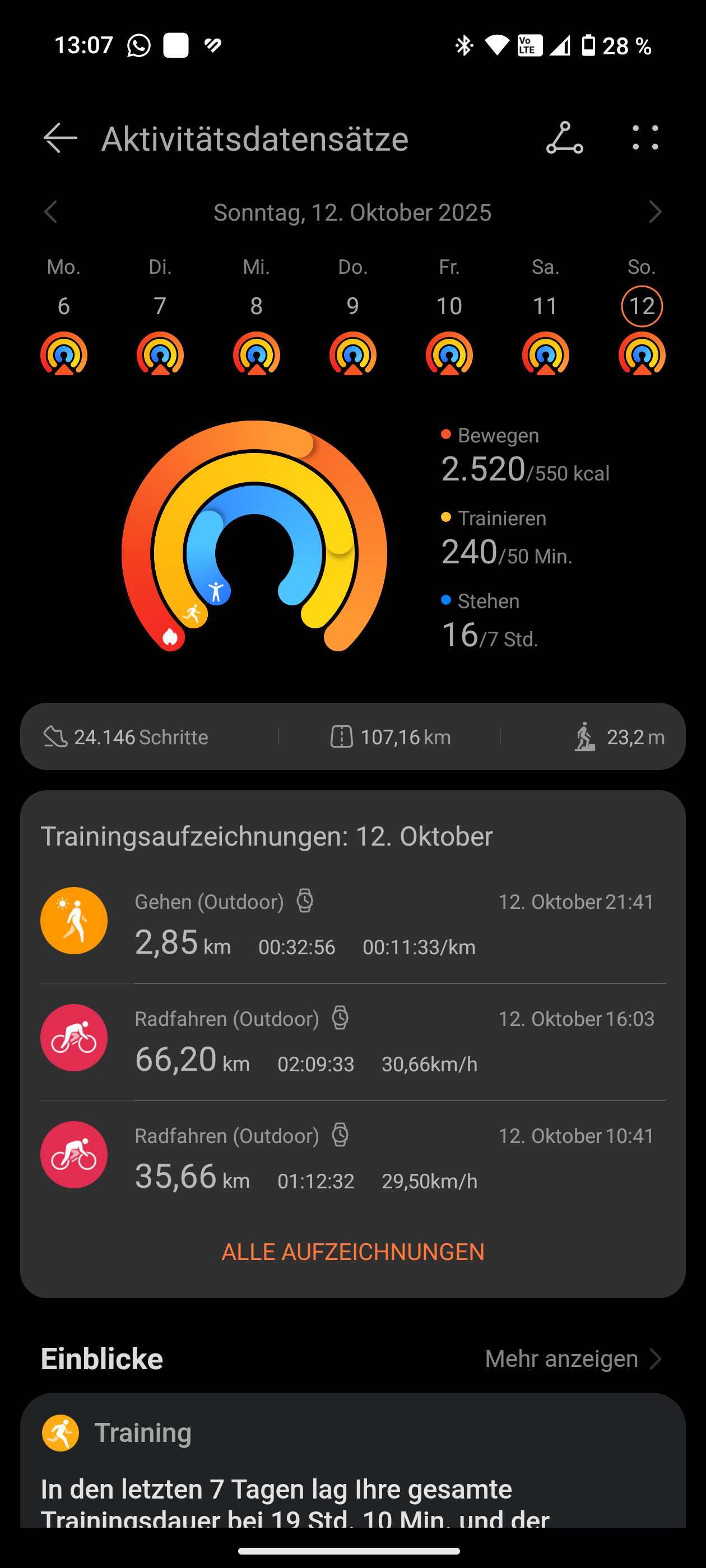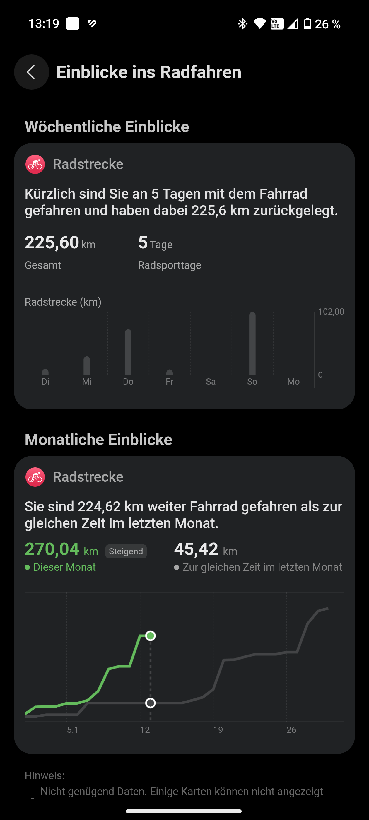 Das Thema „Fahrradfahren mit der Huawei Watch GT6 Pro“ würde ich gerne in einem separaten Artikel ausführlich behandeln. Zwar ist sie kein Profi-Tool, das Powermeter und Radcomputer ersetzt, aber Hobby-Radfahrer können die Uhr als Multitool einsetzen.