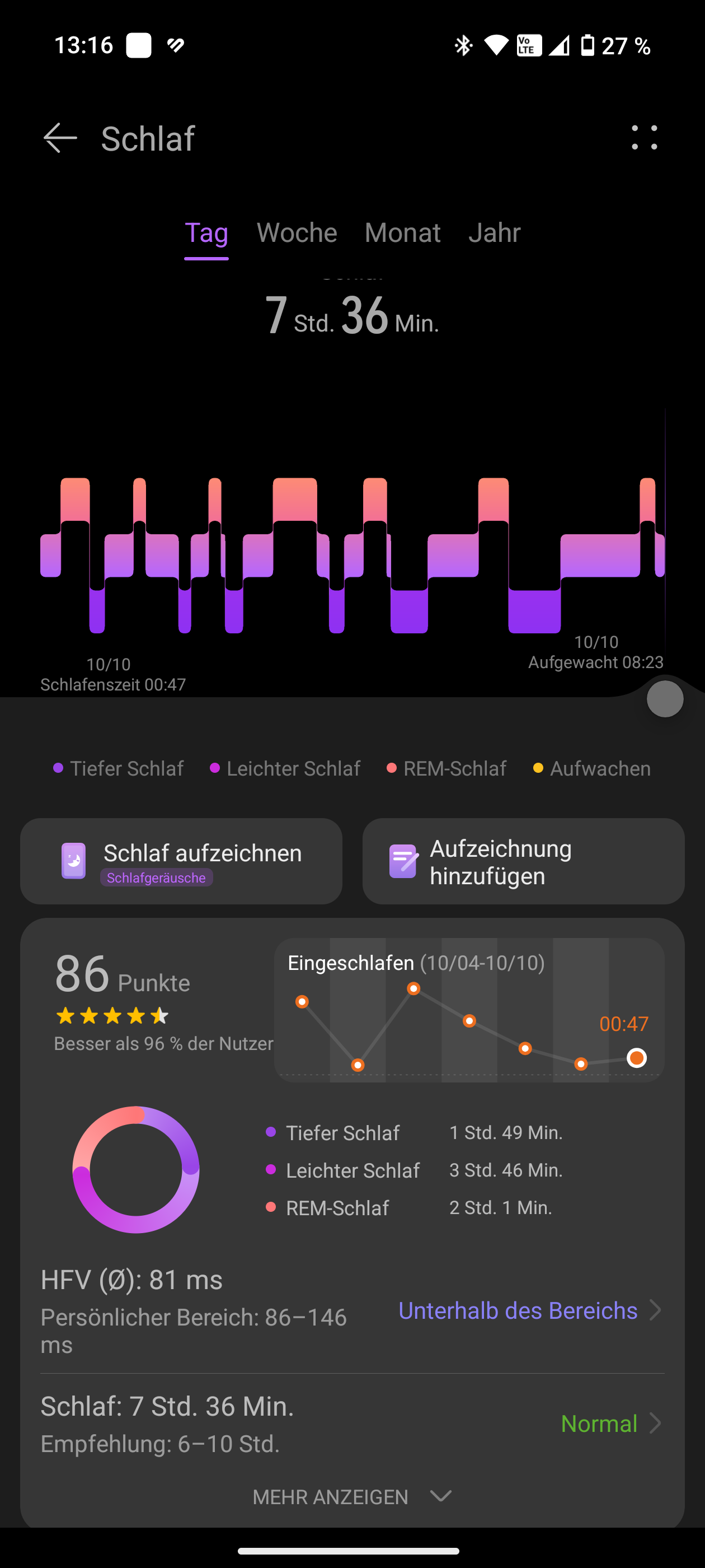 Die App ist das Herzstück des Huawei-Wearable-Ökosystems und überzeugt durch Übersichtlichkeit und Funktionsumfang. Alle Gesundheits- und Fitnessdaten werden hier synchronisiert, ansprechend visualisiert und detailliert ausgewertet. Bei längerer Nutzung der Huawei-Smartwatches erhaltet ihr auch Trends, die zeigen, wie sich Gesundheit und Sport verändern.