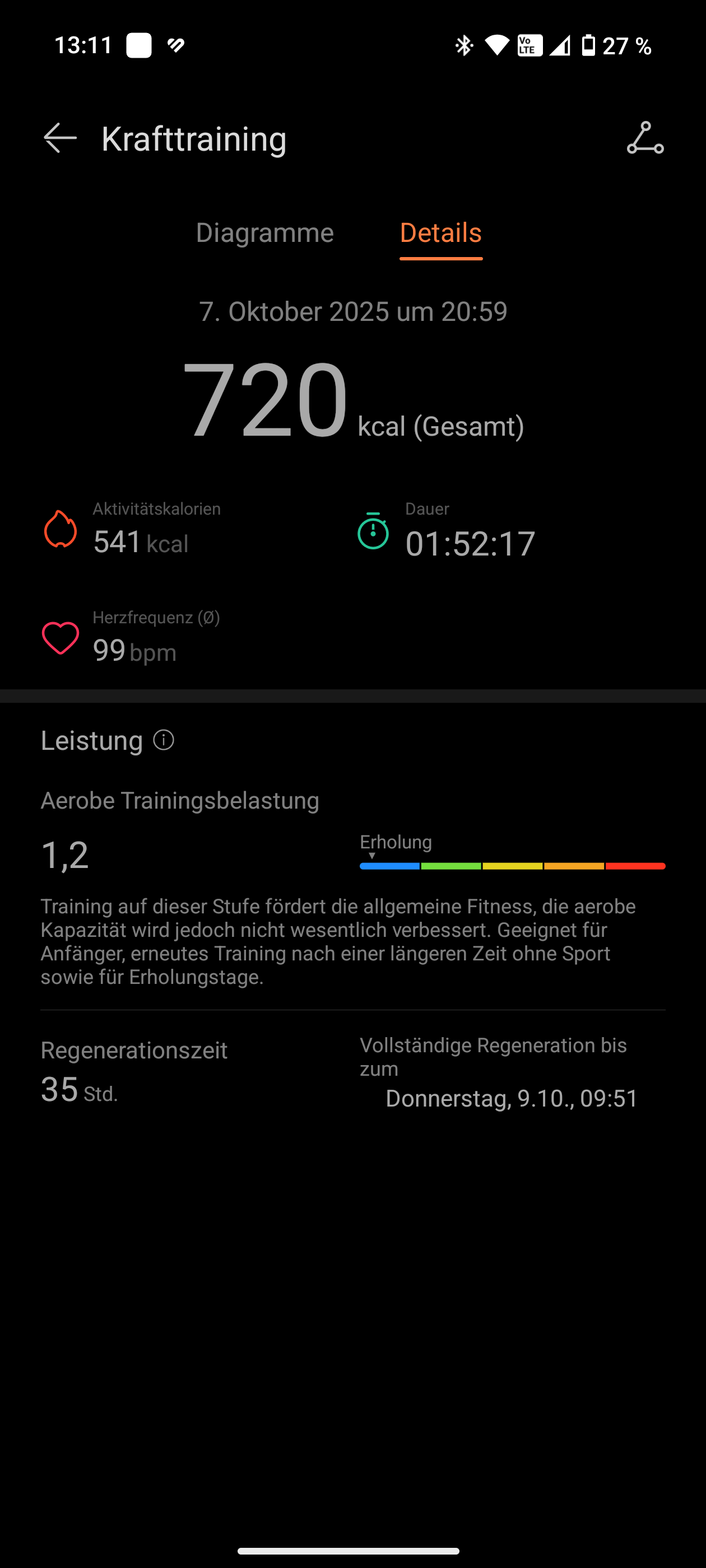 Die Paradedisziplin der Huawei Watch GT6 Pro ist das Gesundheits- und Sporttracking. Die Uhr misst kontinuierlich die Herzfrequenz, die Schritte, den Blutsauerstoffgehalt, das Stresslevel und die Hauttemperatur. Besonders präzise ist das Schlaftracking, das nicht nur die verschiedenen Schlafphasen, sondern auch kurze Nickerchen während des Tages erkennt. Der Puls ist bis Zone 3 absolut deckungsgleich mit einem Pulsgurt. Nur darüber kann es bei schnellen Anstiegen positionsbedingt zu Abweichungen von 2BPM und zu Verzögerungen von ein paar Sekunden kommen.