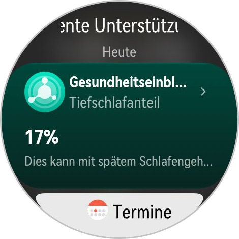Die gesamte Steuerung ist logisch um das Zifferblatt herum aufgebaut. Eine Wischgeste nach links öffnet einen anpassbaren Widget-Bildschirm für Wetter oder die Musiksteuerung. Wischt man nach rechts, gelangt man zu einer Serie von individualisierbaren Karten, die schnellen Zugriff auf die wichtigsten Funktionen bieten – von der detaillierten Trainingsbelastung und den täglichen Aktivitätszielen über das Gesundheitsmanagement bis hin zur Smartphone-Karte mit Kalender und Anruflisten.