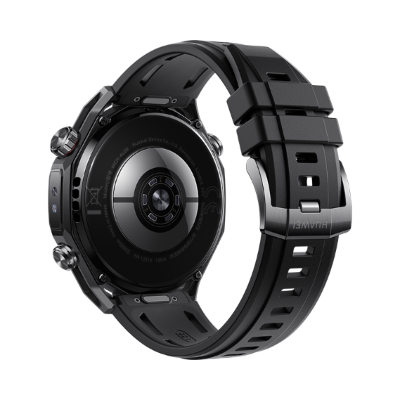 Die Huawei Watch Ultimate 2 positioniert sich klar im High-End-Segment, was sich bereits in der Wahl der Materialien widerspiegelt. Das robuste Gehäuse besteht aus einer zirkoniumbasierten Metalllegierung.