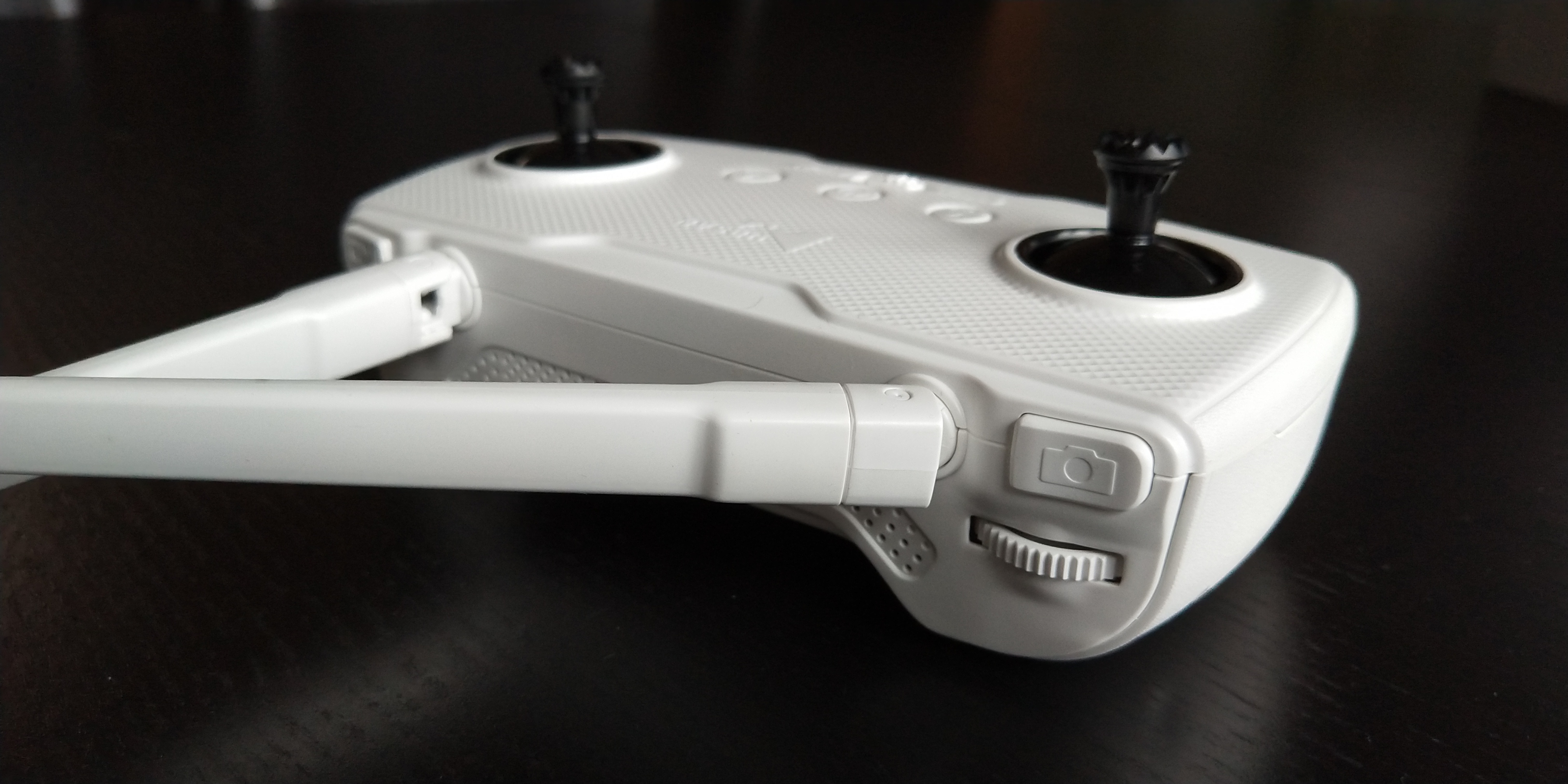 Zum ordnungsgemäßen Betrieb muss natürlich auch die Fernbedienung einen Akku besitzen. um die entsprechenden Signale an die Drohne funken zu können und auch um das Telefon mit Saft zu versorgen. Das Smartphone wird immer mitgeladen, was auch nötig ist, da bei Benutzung der App das Display „always on“ ist und nicht automatisch in den Standby geht. Die Remote Control hat einen 2.600mAh Akku. Das ist locker ausreichend um 2-3 Flüge á 20-23min absolvieren zu können.