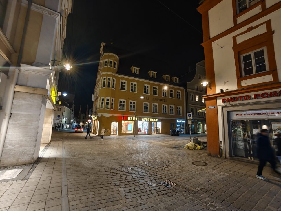 Auch bei Nacht weiß der Sony-Sensor zu überzeugen. In Verbindung mit Vivos Software gelingen auch hier hervorragende Ergebnisse. Bildrauschen sucht ihr bei nahezu jedem Foto vergebens und auch hier gefallen mir die Farbwiedergabe und Kontraste gut. Probleme hat die Kamera hingegen mit Lichtquellen und leidet unter dem sogenannten Lens Flare, was besonders bei Laternen zu erkennen ist.