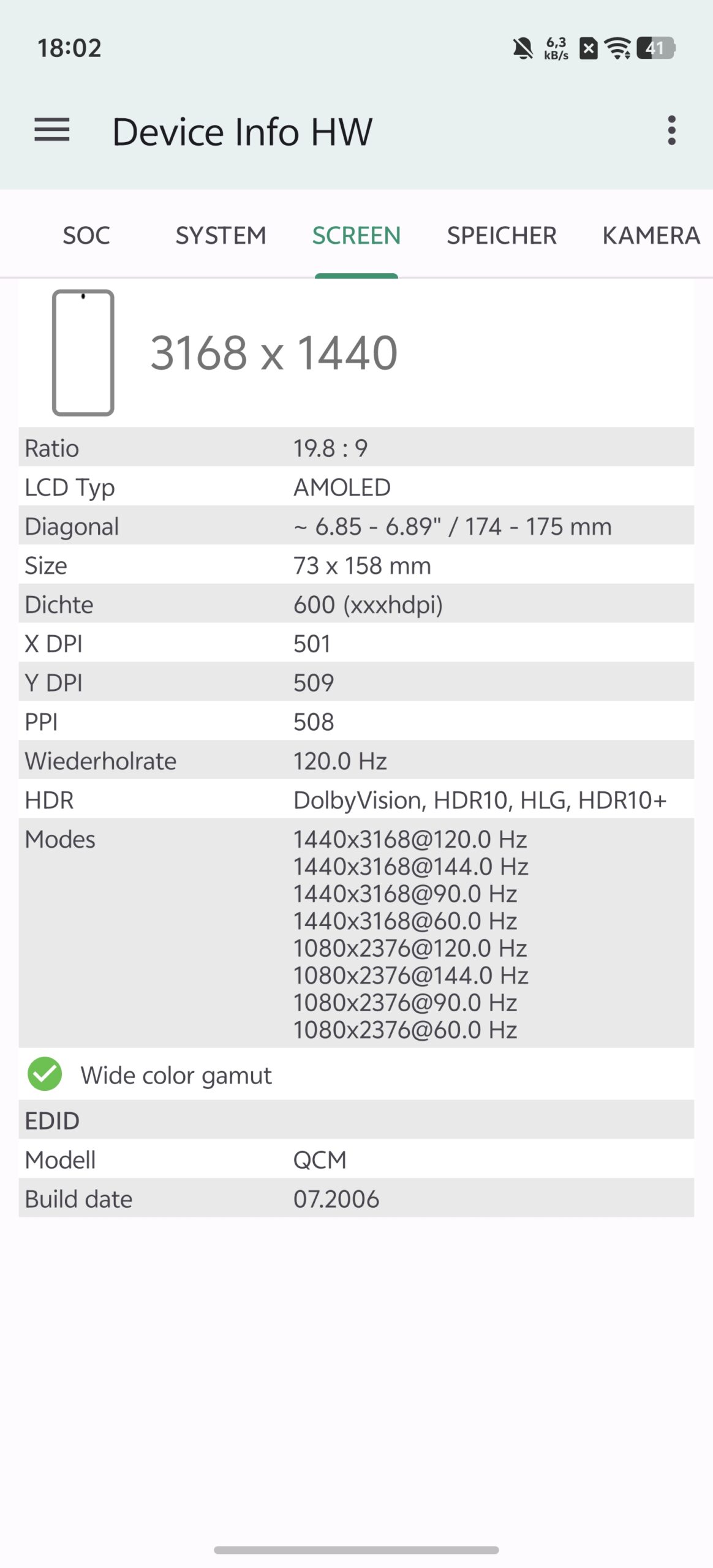 | Display | 3168 x 1440, 6,9 Zoll 144Hz (AMOLED) |