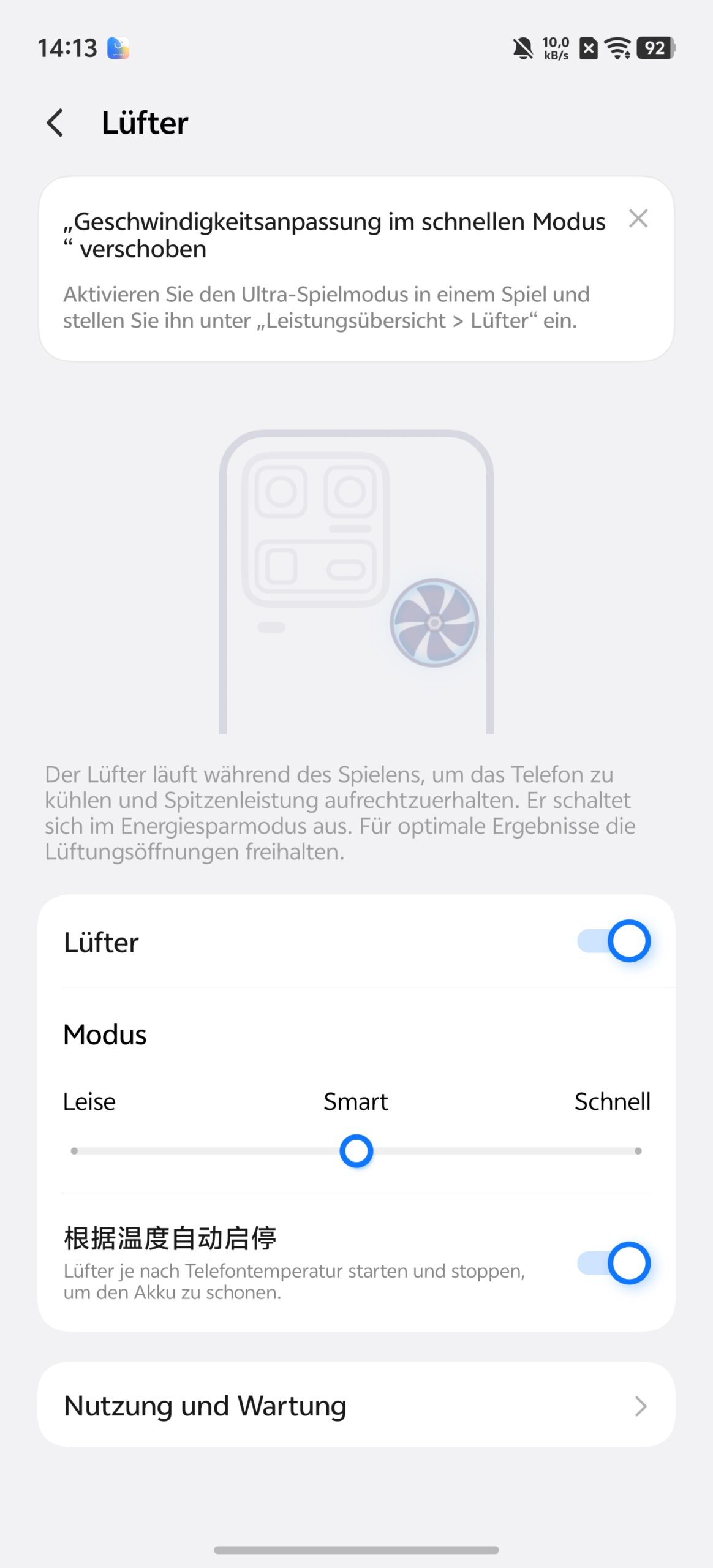 Den aktiven Lüfter müsst ihr nicht zwingend aktivieren. Das Smartphone ruft die Leistung auch ohne diesen zuverlässig und gleichbleibend über längere Zeiträume ab. Dennoch ist es ein nettes Feature, das besonders im Sommer hilfreich sein kann, wenn es ohnehin schon wärmer ist. Und auch für die Zukunft seid ihr hiermit bestens gerüstet.