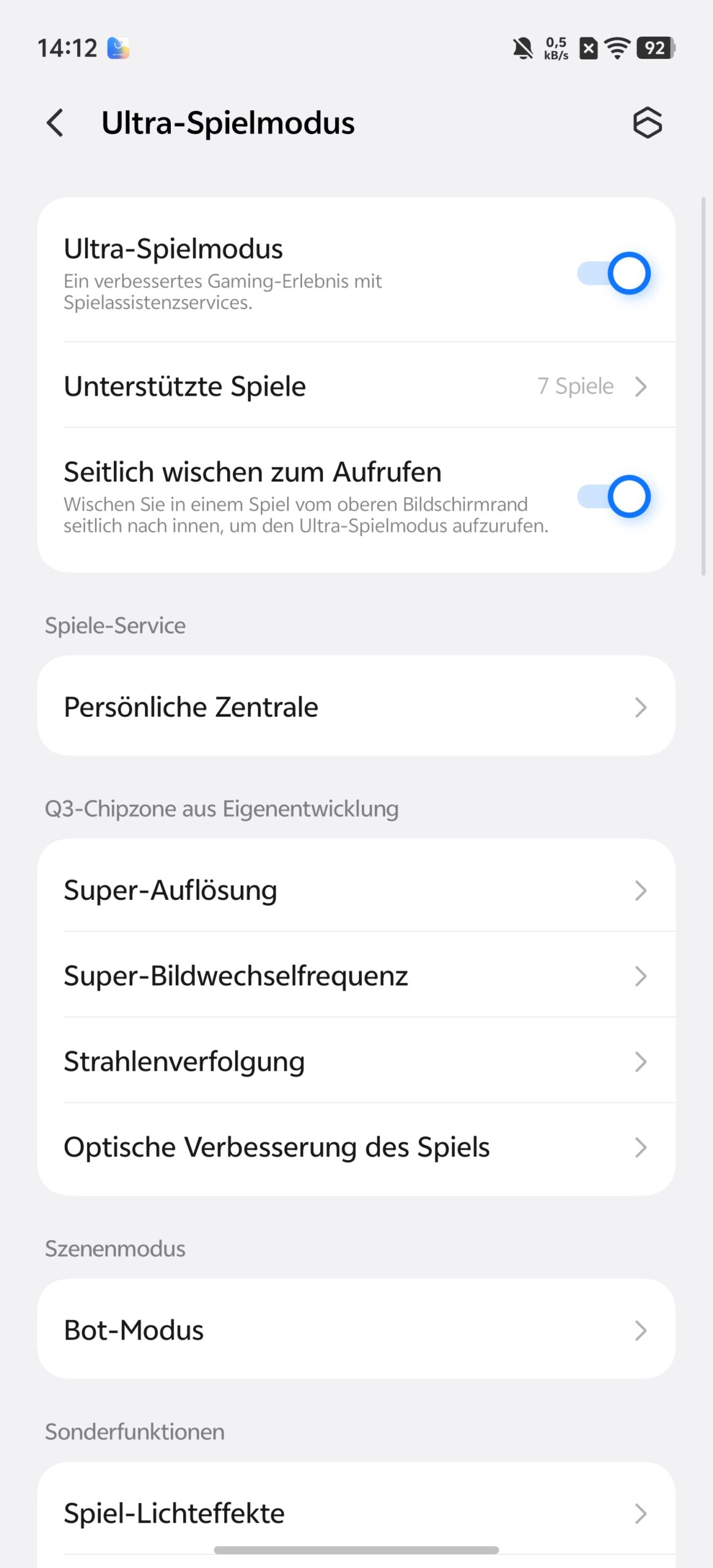 Ein großer Vorteil sind natürlich die Schultertasten, die besonders in Shootern wie PUBG eine spürbare Bereicherung darstellen. Da es sich hierbei aber nur um kapazitive Tasten handelt, müsst ihr die Finger für jede Betätigung zuerst anheben; sie können nicht einfach locker aufliegen, wie es bei physischen Tasten der Fall wäre. Die Bestätigung für einen Klick erhaltet ihr softwareseitig über Vibrationen. Vivo wirbt hier mit einem besonderen 4D-Vibrationsmotor, der auch auf spezielle Situationen im Spiel reagieren kann. Das funktioniert gut, jedoch kann der Vibrationsmotor nicht genau vermitteln, welche der beiden Schultertasten gerade gedrückt wurde. Somit fühlt sich die Vibration bei beiden gleich an, was das Spielerlebnis etwas zerstört. Die Lautsprecher des iQOO 15 Ultra klingen hervorragend. Sie werden sehr laut und besitzen gute Tiefen. Leider ist der Lautsprecher an der Oberseite jedoch so platziert, dass zumindest ich ihn beim Gaming häufig vollständig mit meiner Hand verdecke. Hier wäre es sinnvoller gewesen, beide Lautsprecher auf der gleichen Höhe zu platzieren.
