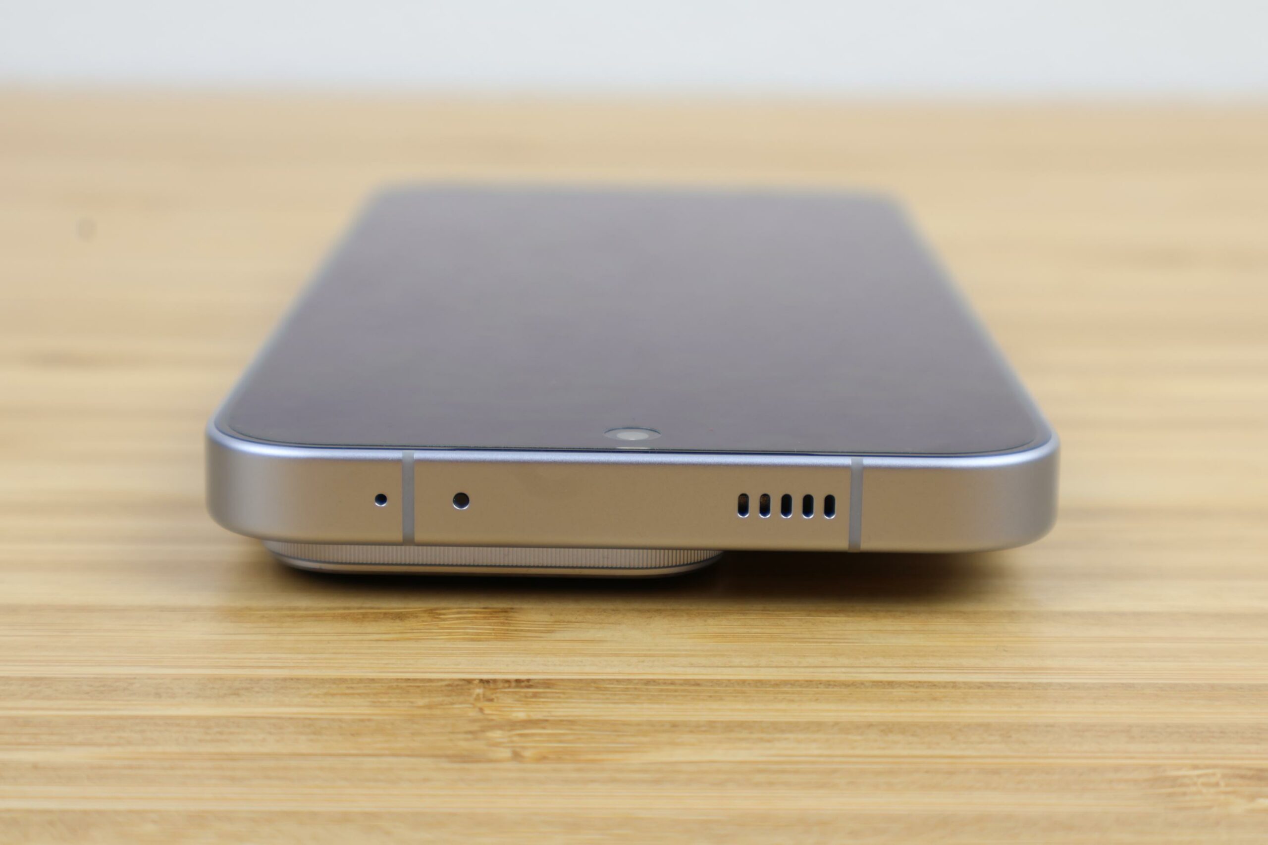 Auf der Unterseite befinden sich nebeneinander der Einschub für bis zu zwei SIM-Karten, der USB-C-3.2-Anschluss, ein erster Lautsprecher und zwei Mikrofone. Ein zweiter Lautsprecher auf der Oberseite komplettiert das Stereo-Setup. Hier sitzen zudem noch ein weiteres Mikrofon und ein Infrarot-Sender, mit dem ihr etwa Fernseher und dergleichen steuern könnt.