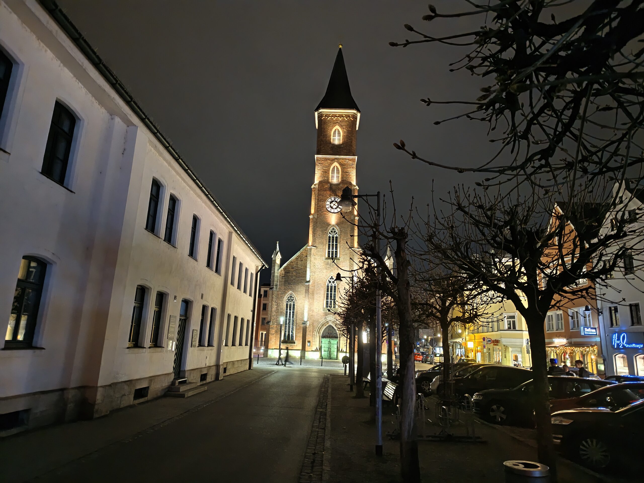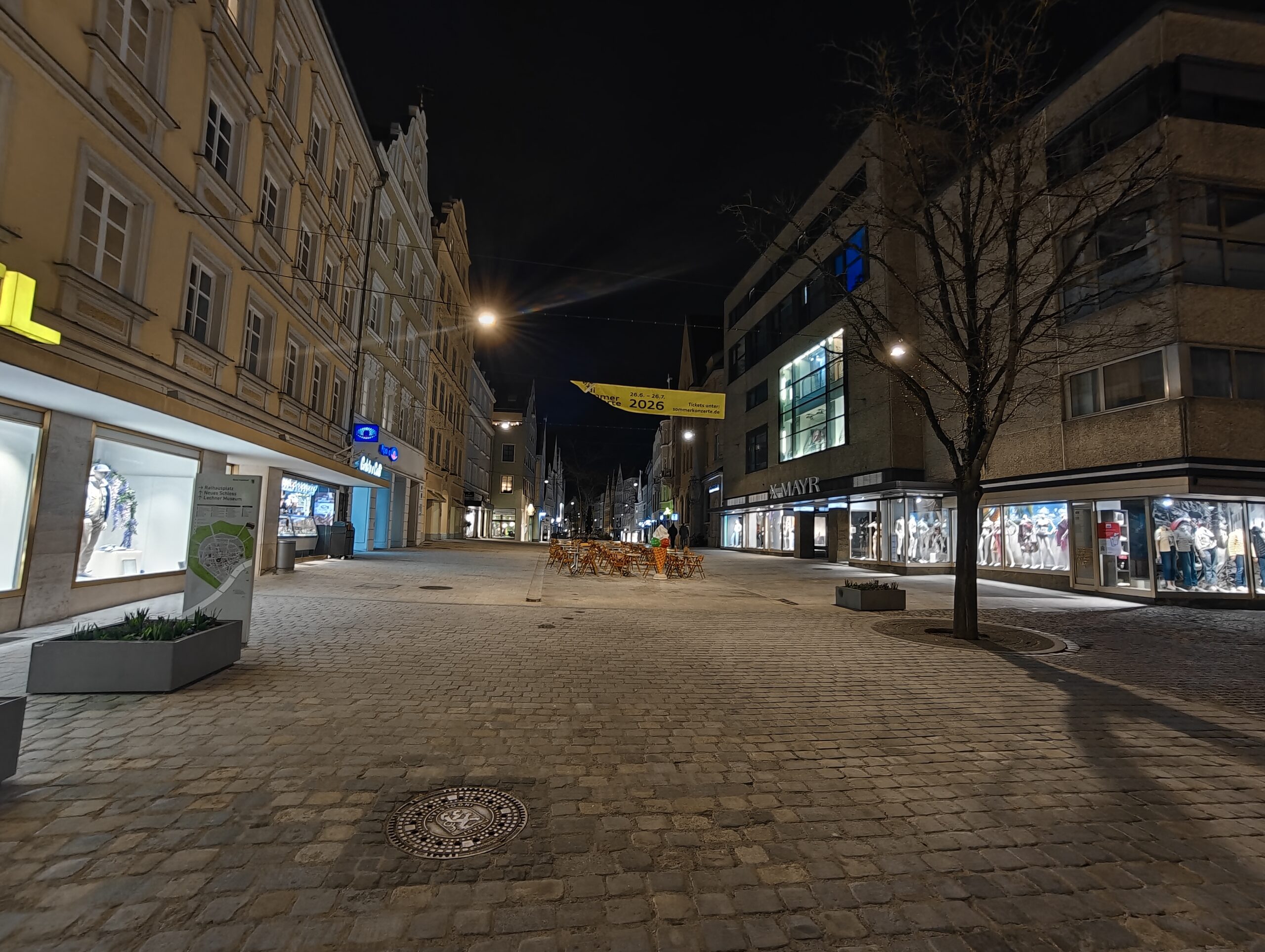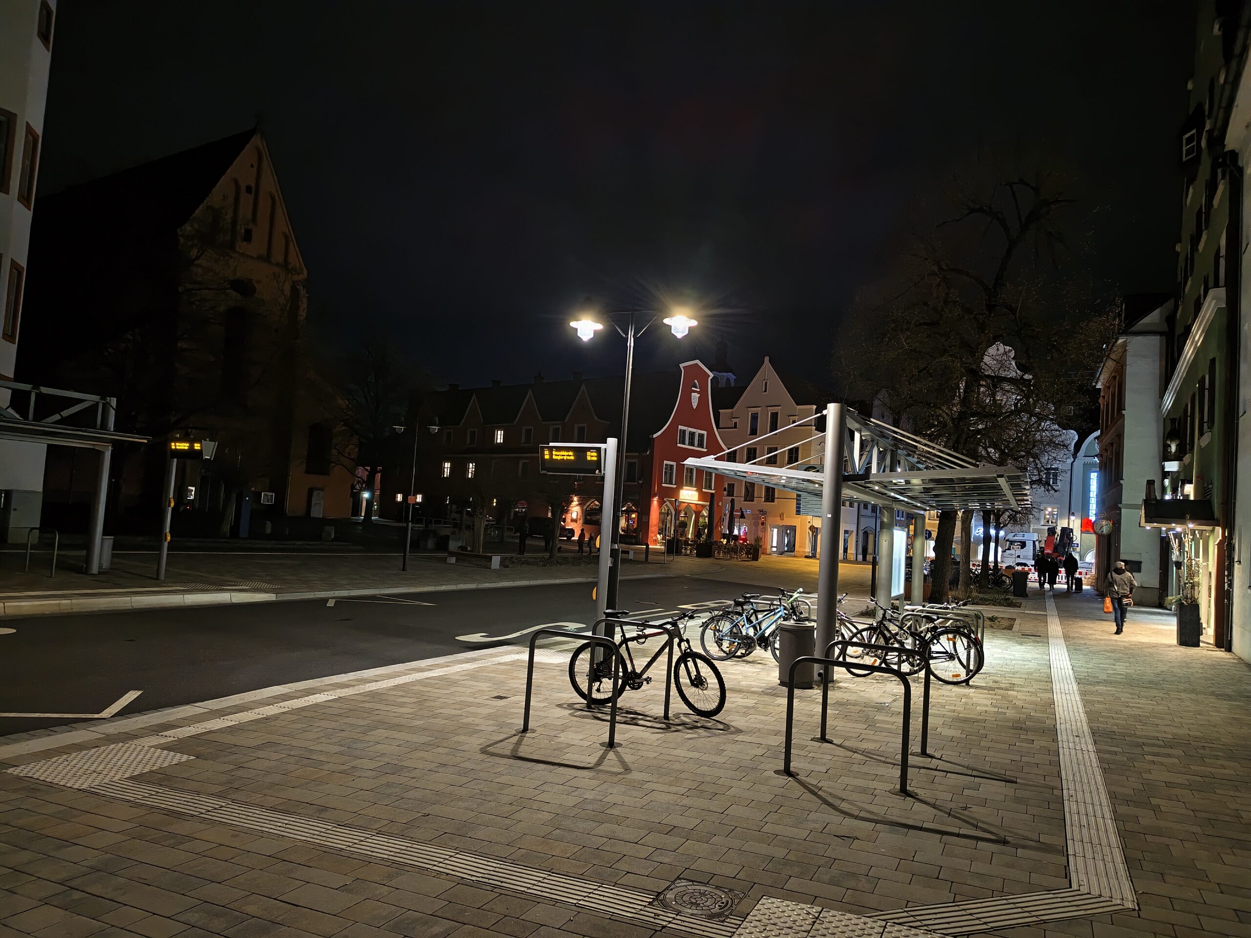 Auch bei Nacht weiß der Sony-Sensor zu überzeugen. In Verbindung mit Vivos Software gelingen auch hier hervorragende Ergebnisse. Bildrauschen sucht ihr bei nahezu jedem Foto vergebens und auch hier gefallen mir die Farbwiedergabe und Kontraste gut. Probleme hat die Kamera hingegen mit Lichtquellen und leidet unter dem sogenannten Lens Flare, was besonders bei Laternen zu erkennen ist.