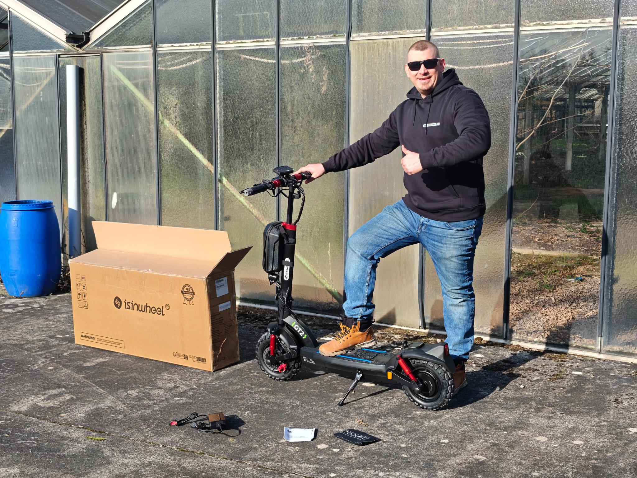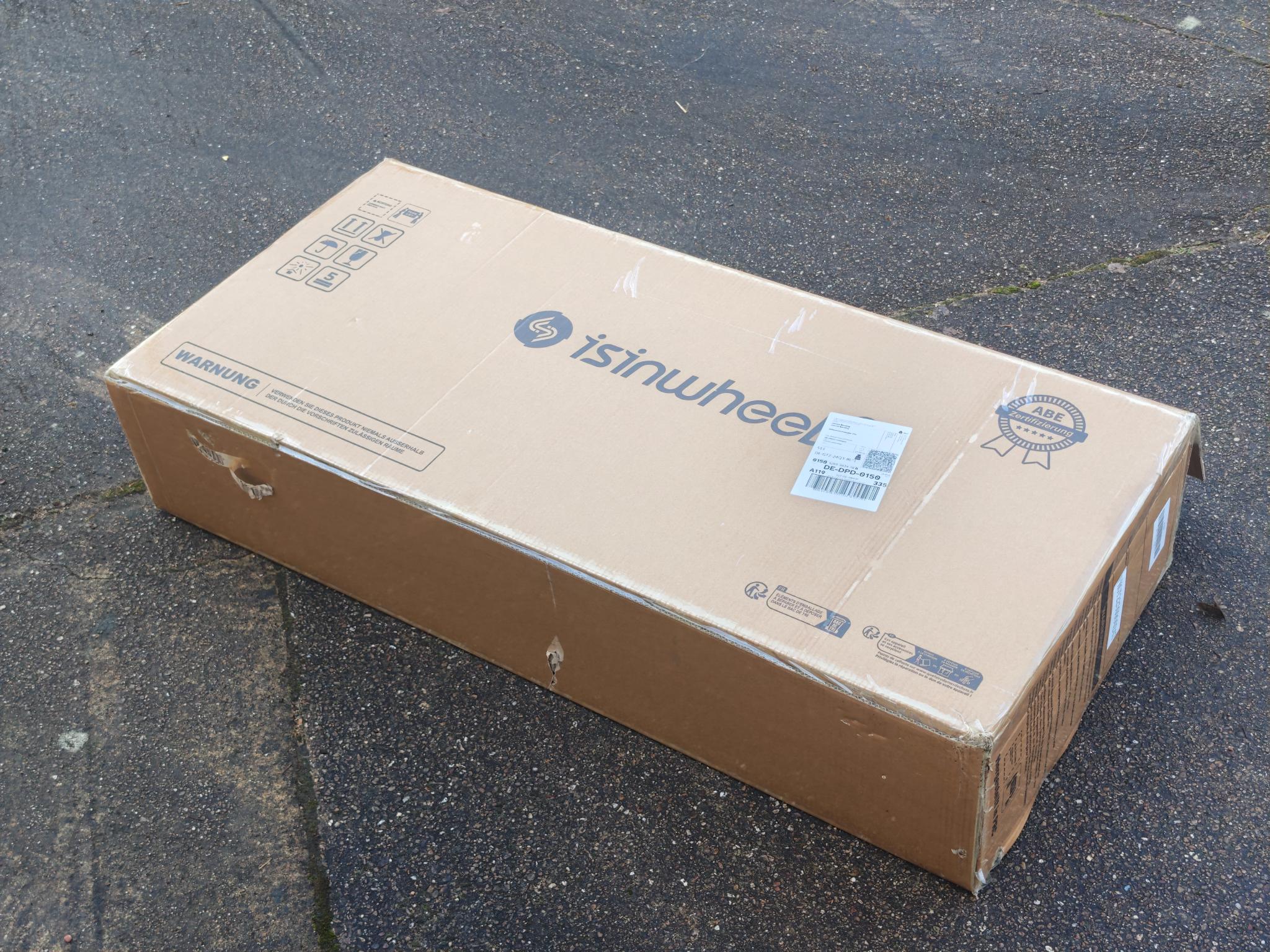 Der Isinwheel GT2 kommt in einem gewaltigen Paket zu euch. Der Aufbau ist erfreulich simpel und in knapp 5 Minuten erledigt, da die Magnesium-Aluminium-Karosserie weitgehend vormontiert ist. Ihr müsst lediglich den Scheinwerfer festziehen.