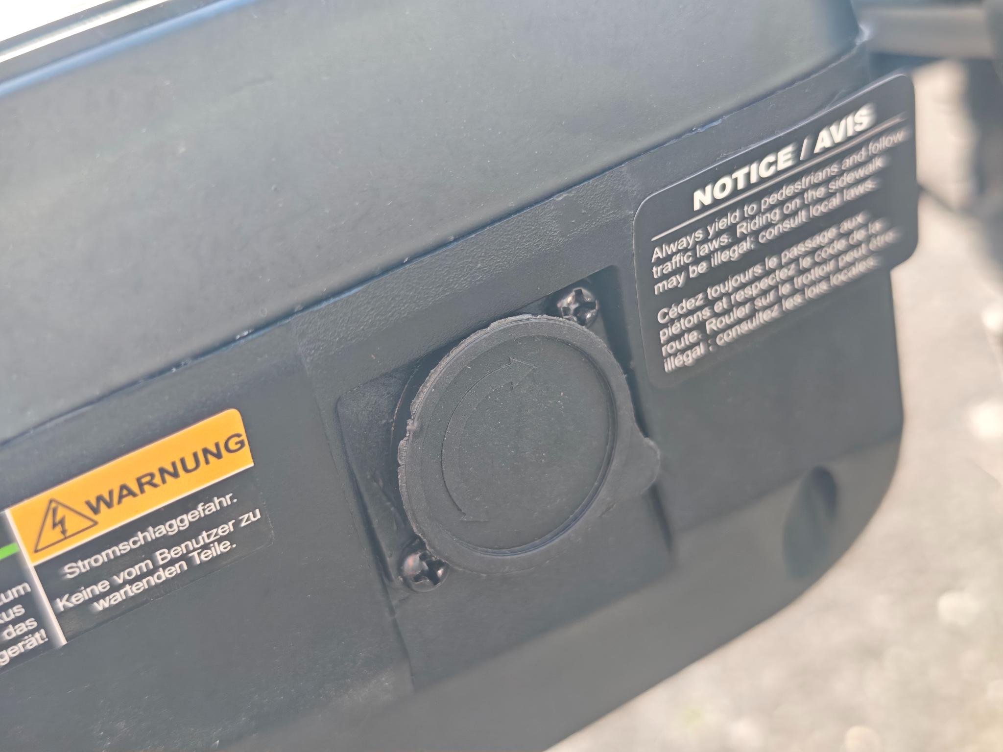 Laut Datenblatt besitzt der Scooter eine IP65-Schutzklasse. Der Scooter besitzt aber kaum Dichtungen, nicht einmal am Ladeport! Fahrten im Regen oder durch tiefe Pfützen sind also wahrscheinlich riskant für die Elektronik.