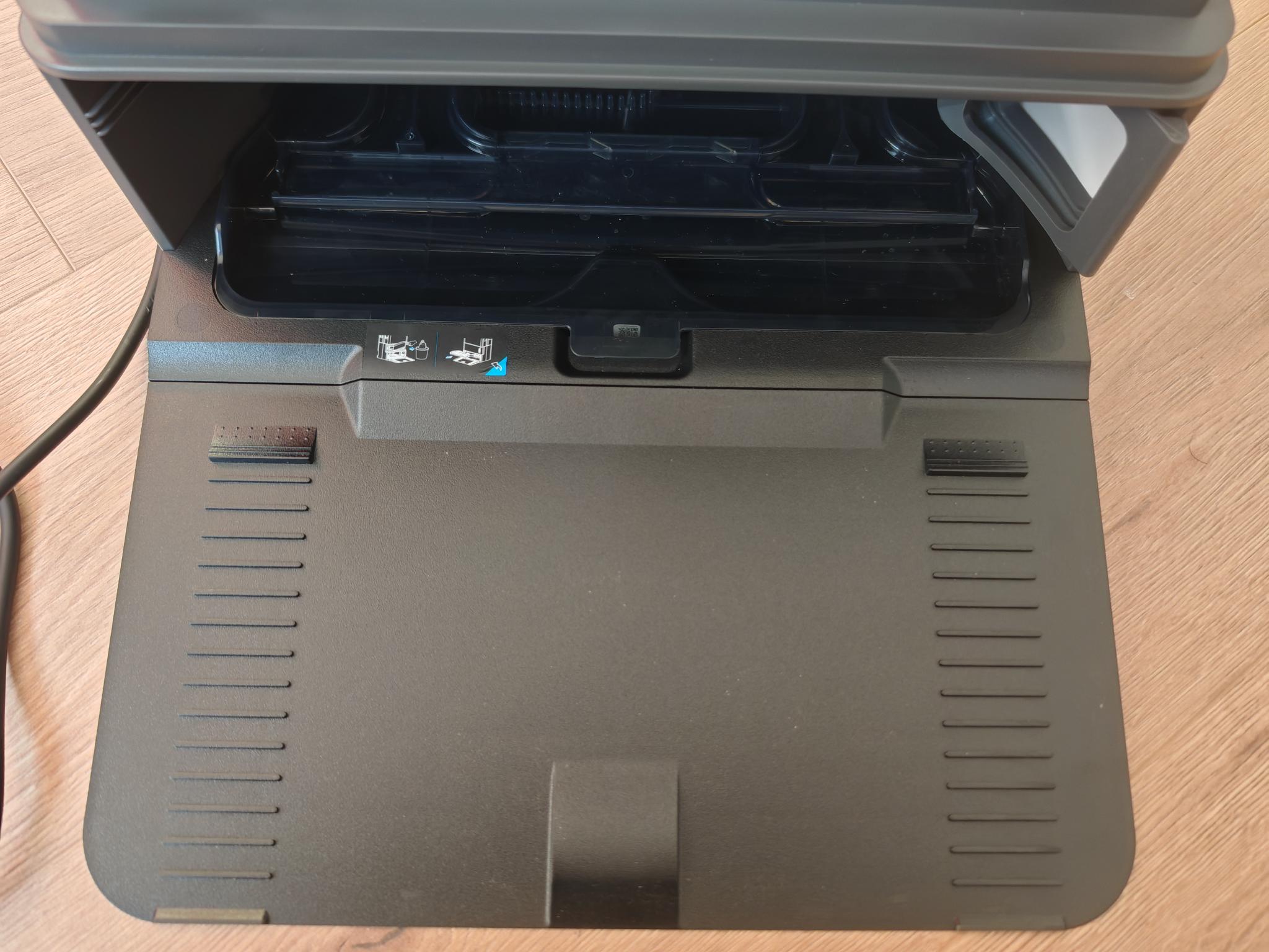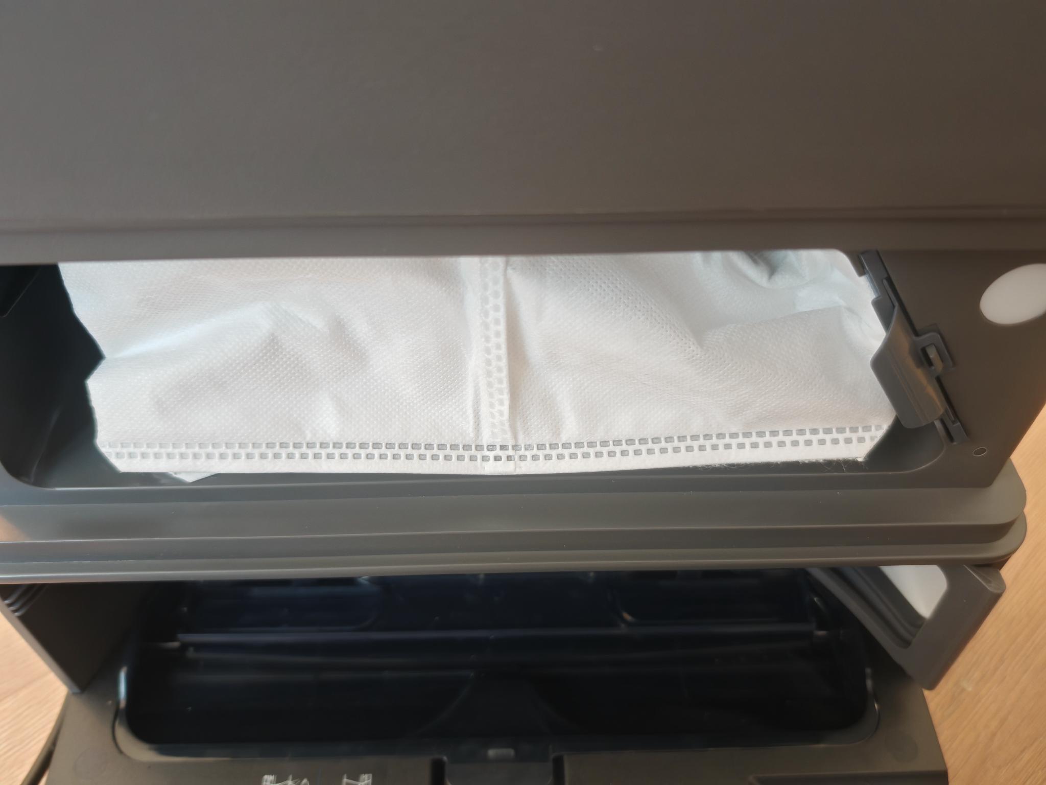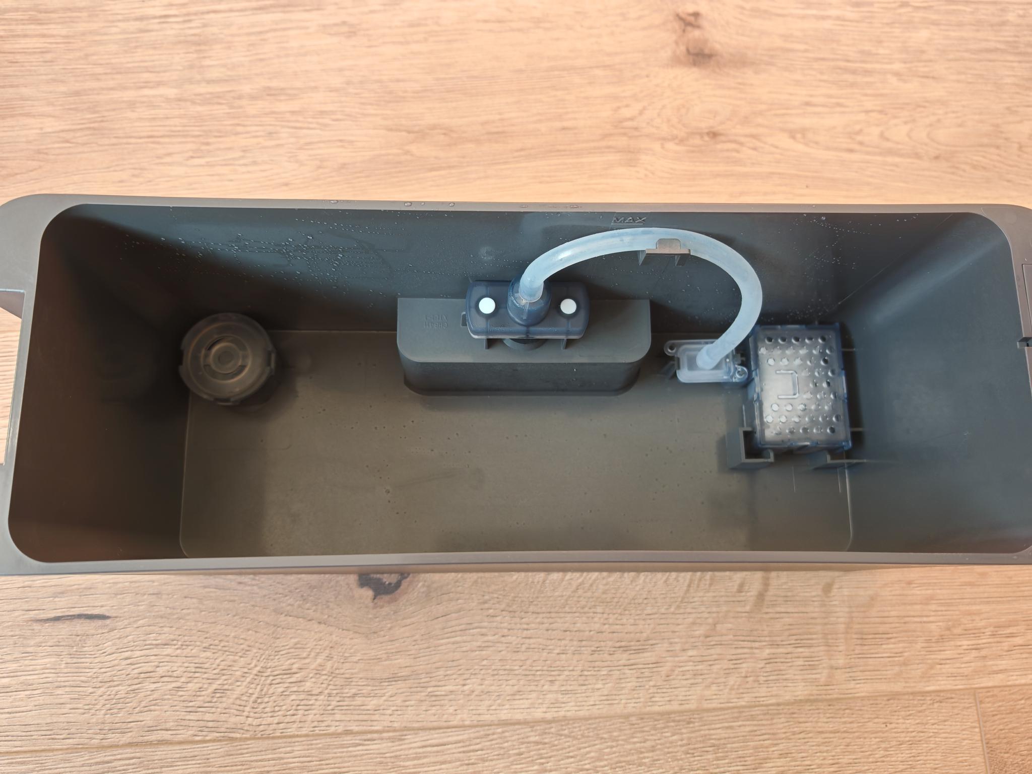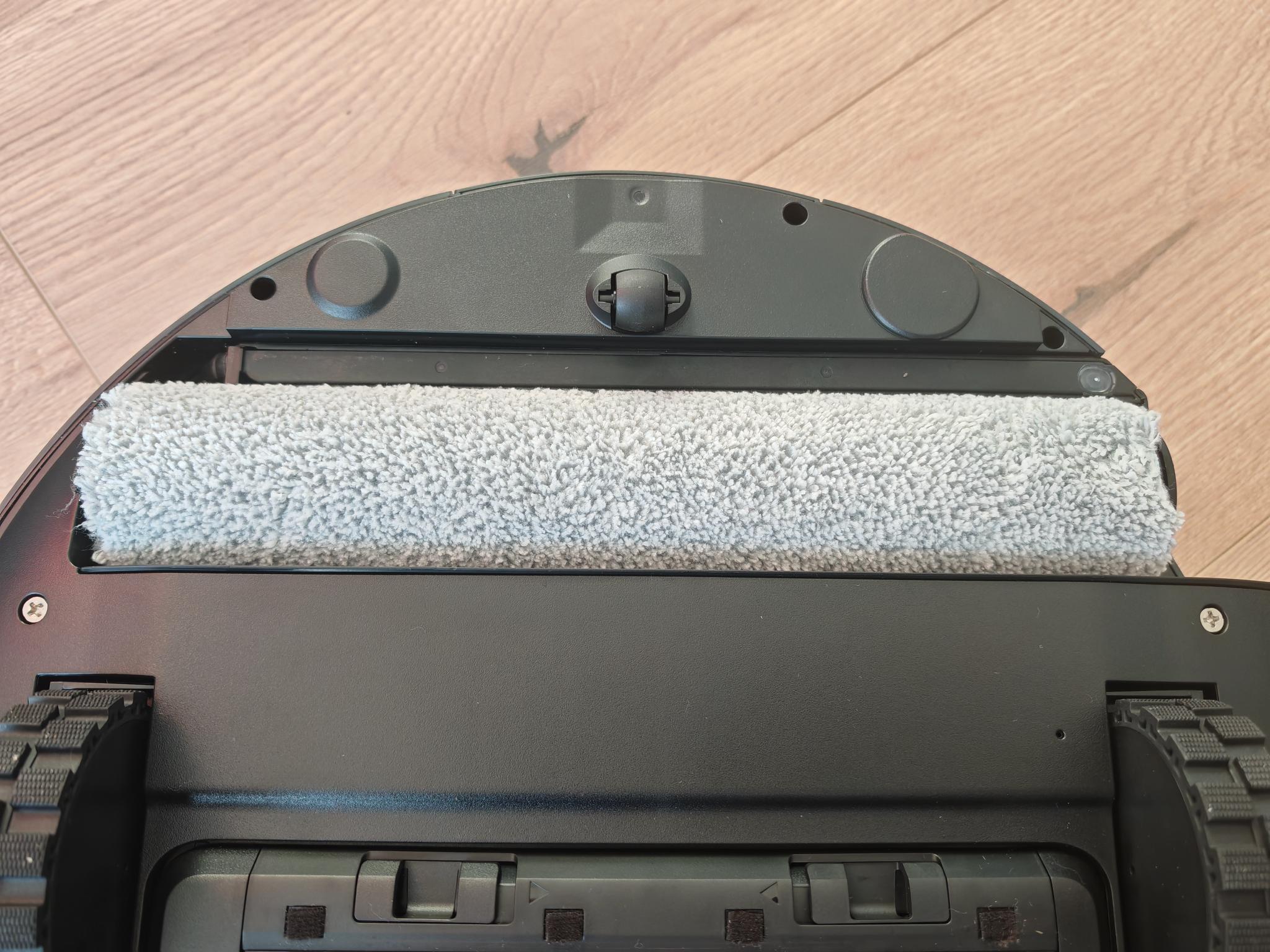 Loben möchte ich dagegen die Füllstandsanzeige des Staubsaugerbeutels. Sollte dieser voll sein, wird das optisch signalisiert. Die Füllstände der Wassertanks werden dagegen nicht angezeigt, auch nicht in der App. Die untere Schale lässt sich einfach entnehmen und reinigen. Die Spannungsversorgung erfolgt über ein fest angeschlossenes Kabel, das 1,5m lang ist.