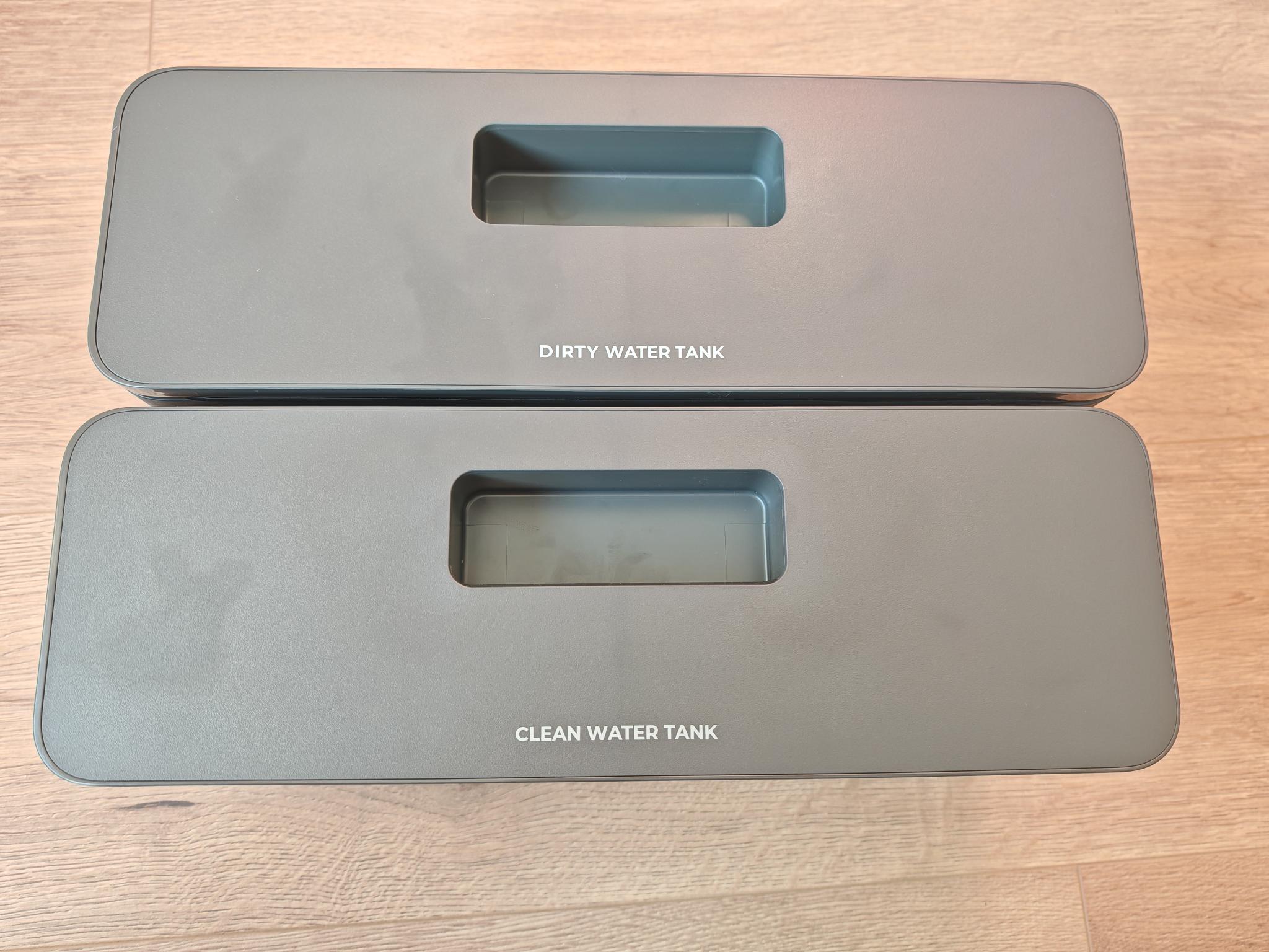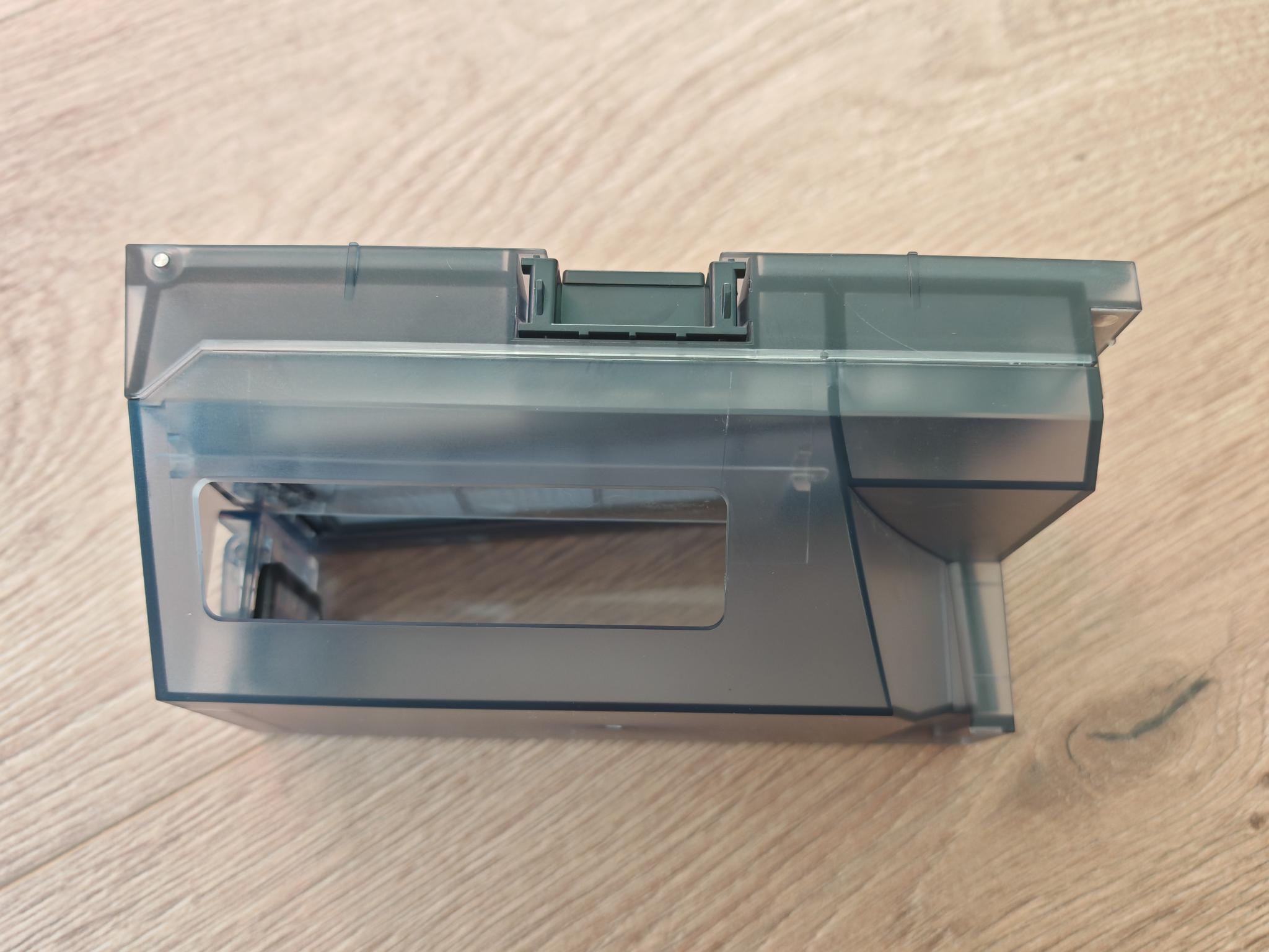 Die Servicestation ist kompakt und gleichzeitig wartungsfreundlich. Mit einer Höhe von 45cm und einer Breite von 40cm benötigt diese wenig Grundfläche. Oben thronen die beiden Behälter für Frischwasser und Abwasser. Diese haben jeweils ein Fassungsvermögen von 2,5 Litern. Der verbaute Wasserfilter im Frischwassertank überzeugt genauso wie die gute Abdichtung beider Behälter. Nur die verbauten Plastiknasen zum Schließen vermitteln nicht den Eindruck von Langlebigkeit. Darunter, im Querformat, ist der kleine Staubsaugerbeutel verbaut. Auch hier sichert nur eine simple Plastiknase den Zugang. Der Beutel selbst hat eine Kapazität von rund 2 Litern. Hier bietet die Konkurrenz teilweise mehr.