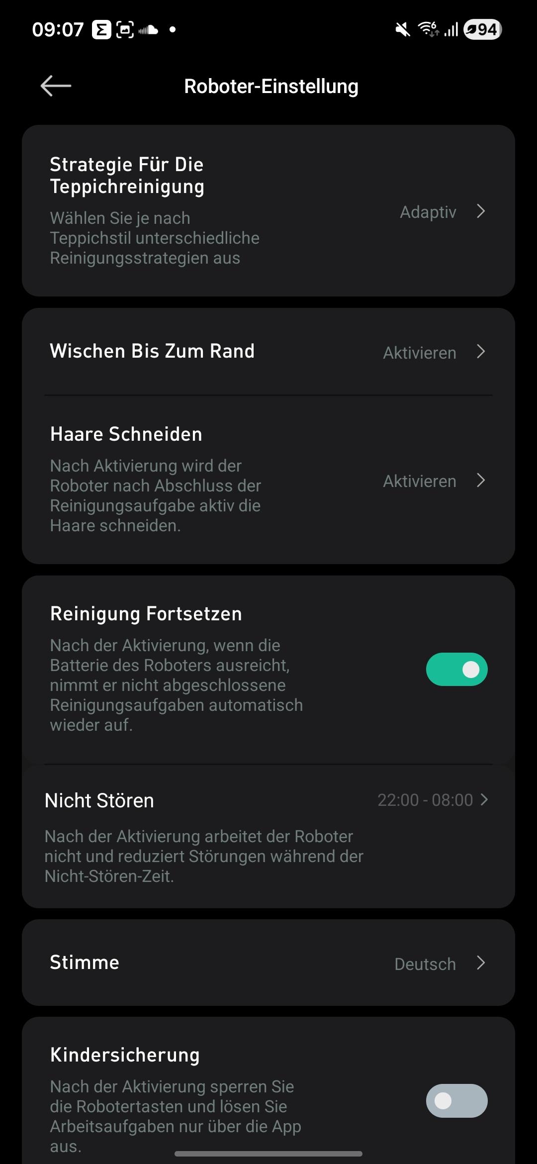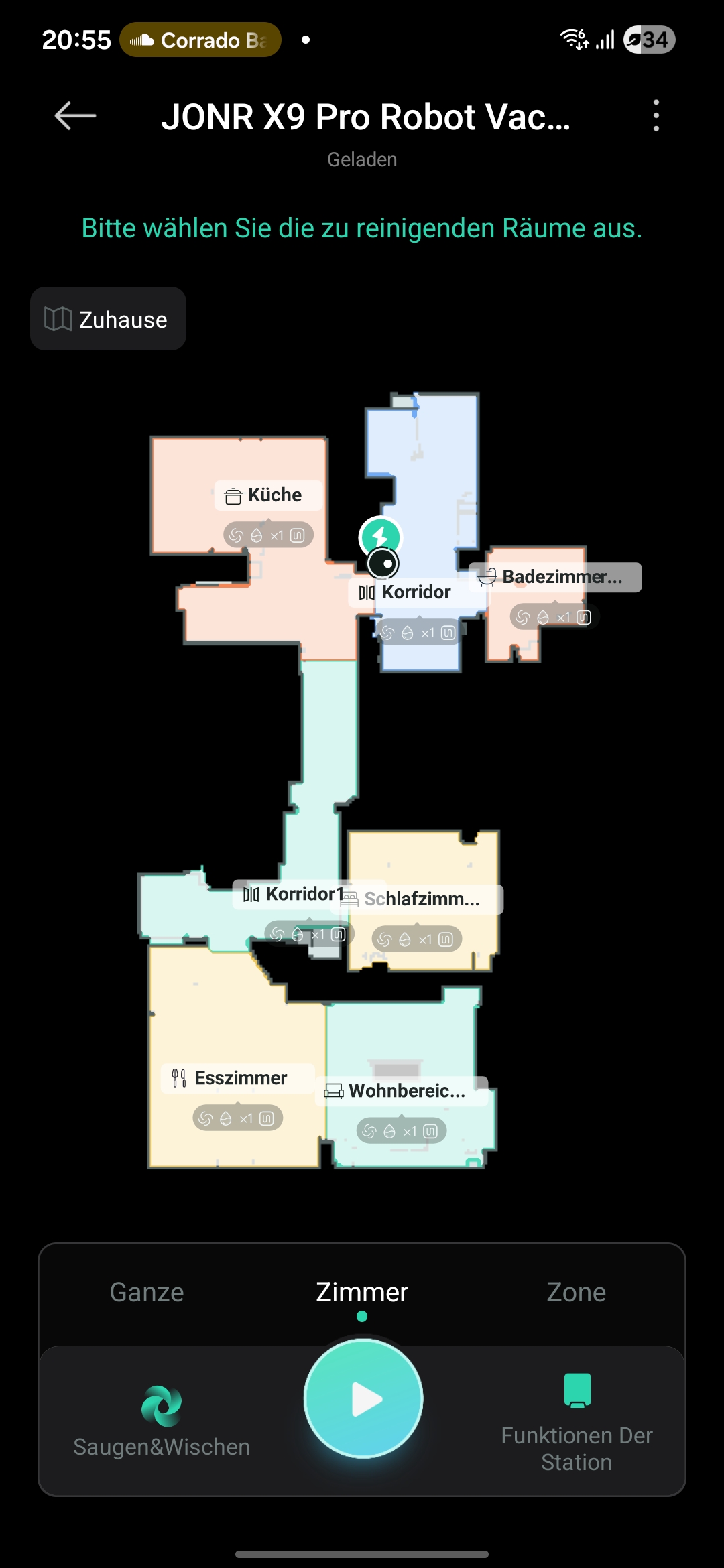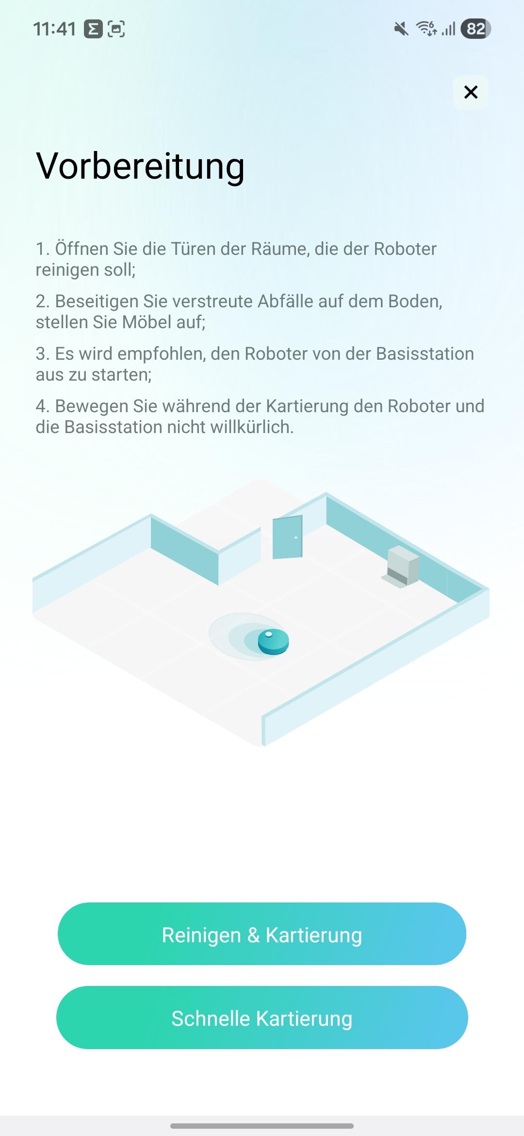 - Staubsaugen / Wischen (beides, nur saugen, nur wischen)