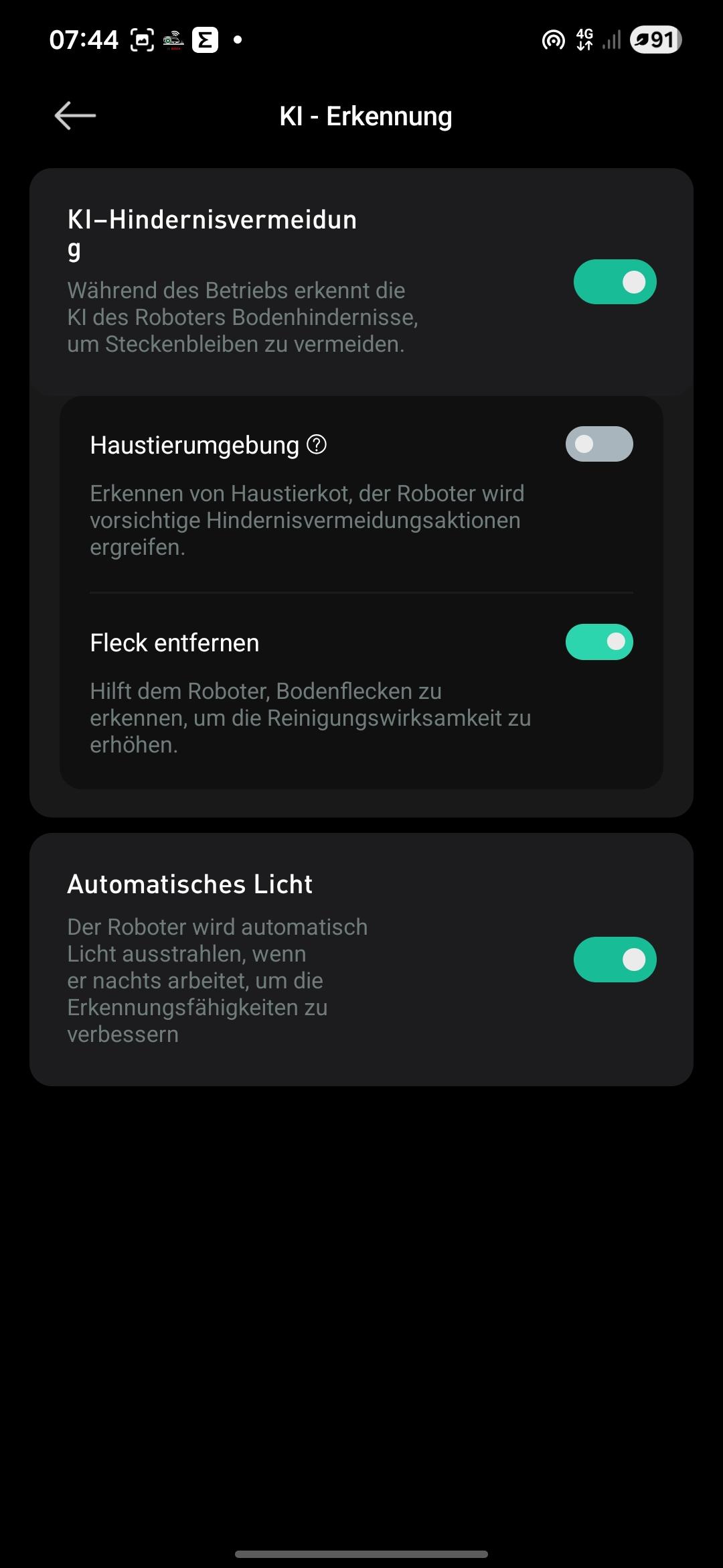 Die App begrüßt euch mit der Karte und einer Übersicht der letzten Reinigung. Im unteren Bereich könnt ihr den benötigten Modus einstellen; generell überzeugt die App mit einer guten Übersichtlichkeit. Die Funktionen der Servicestation könnt ihr manuell aktivieren, und zusätzliche Einstellungen finden sich unter den drei Punkten oben rechts. Hier könnt ihr weitere Optionen im Detail anpassen. Von Zeitplänen und Kartenverwaltung bis zu KI-Funktionen könnt ihr den JONR X9 Pro fein an die persönlichen Vorgaben anpassen. Nur in die Automatisierungsebene könnt ihr den Staubsaugerroboter bislang nicht einbinden. Dafür funktioniert die Einbindung in Google Home oder Alexa ohne Probleme. Updates für den Roboter installiert ihr über die App. Insgesamt gefällt die App durch einen eingängigen und logischen Aufbau.