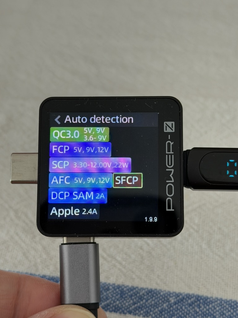 - USB-A1 bis -A2: QC3.0, SFCP, SCP, FCP, AFC, DCP, Apple 2,4A