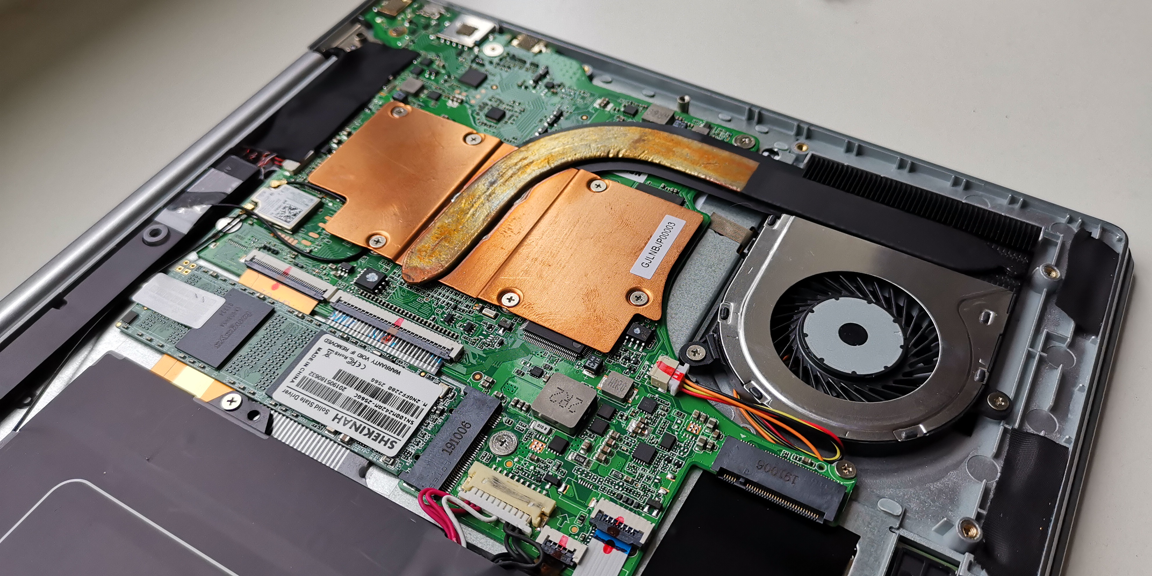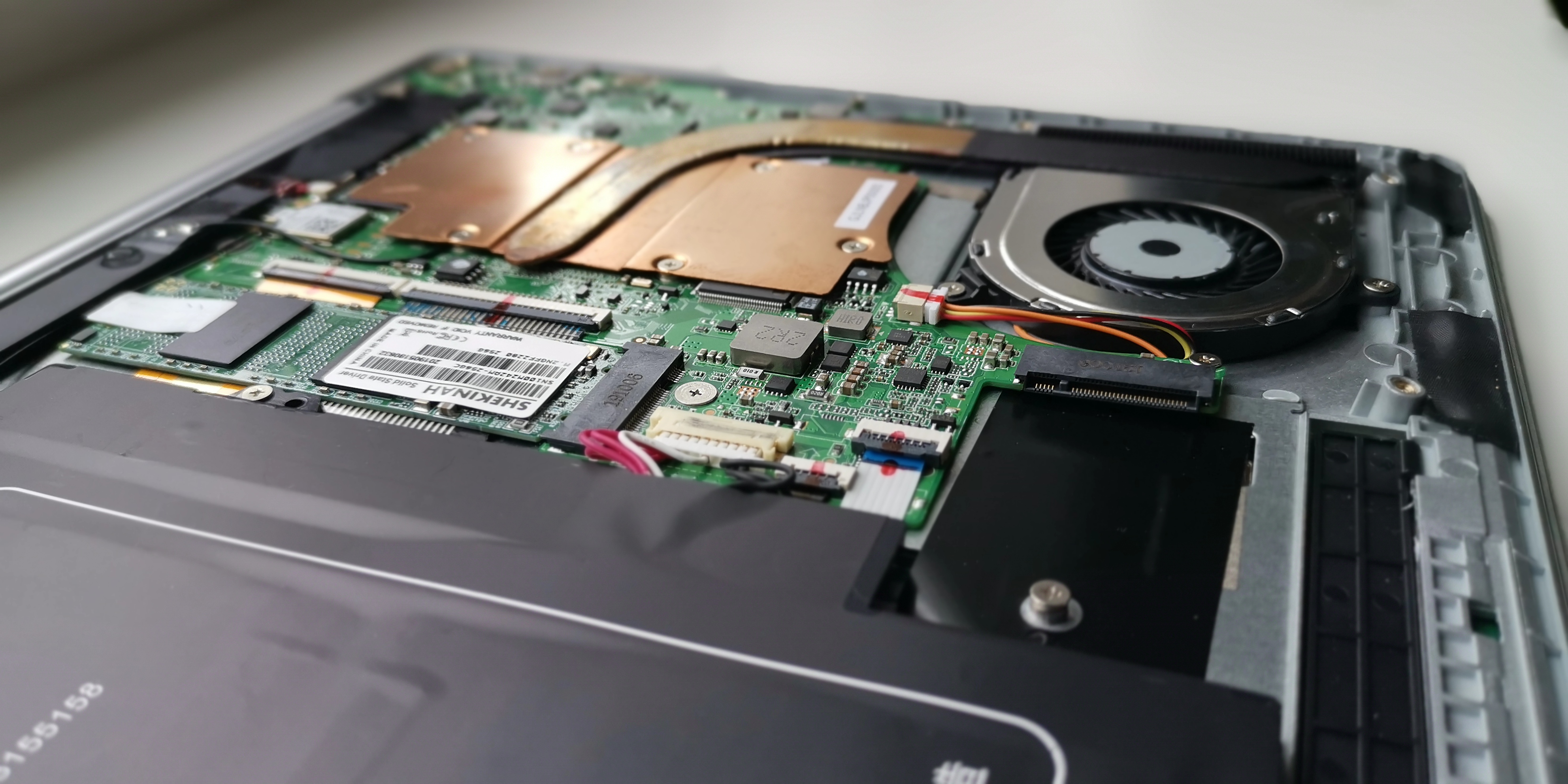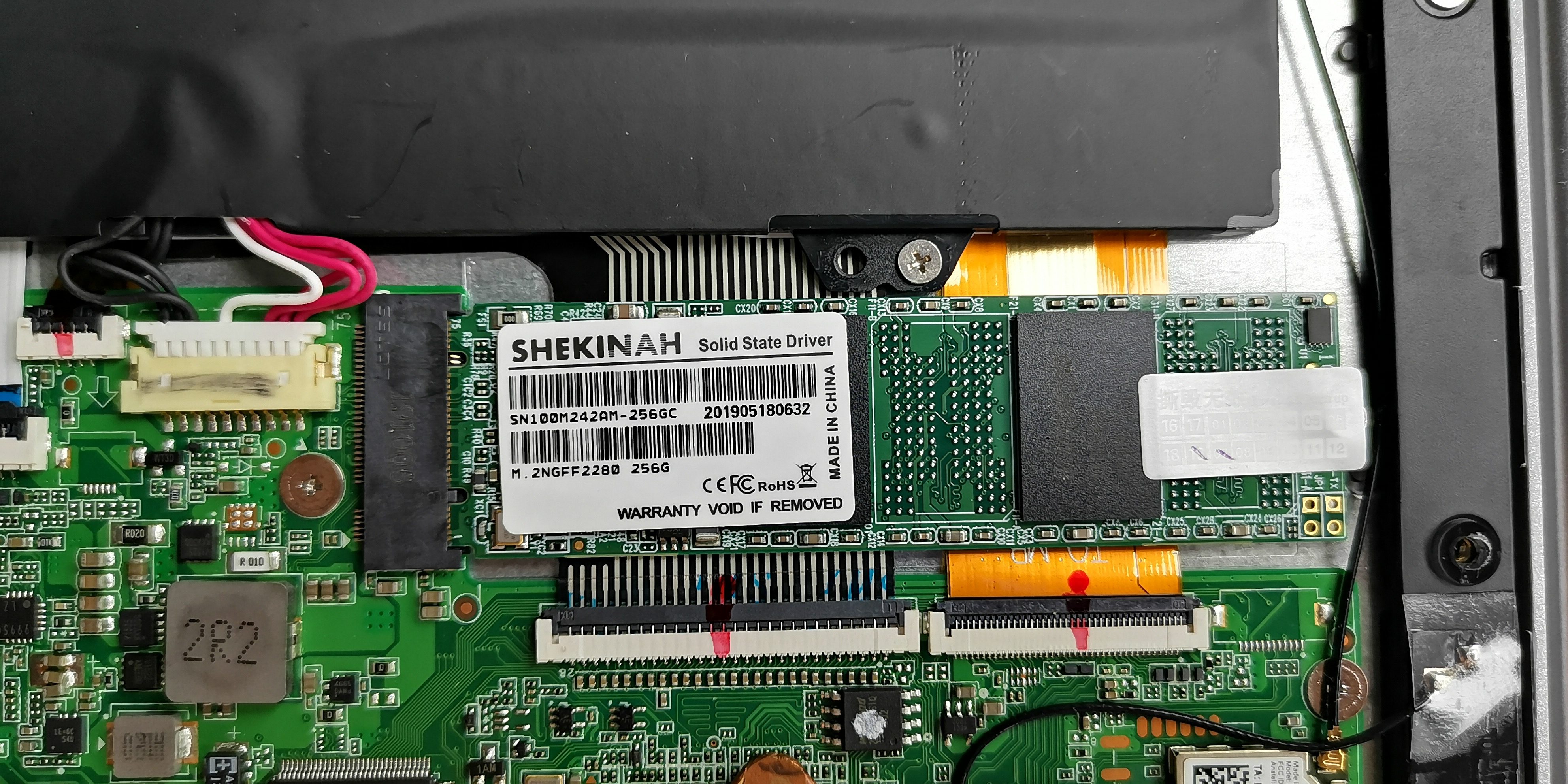 Als Hauptspeicher kommt eine große 256 GB SSD M.2 (2280) Festplatte vom unbekannten Hersteller Shekinah zum Einsatz. Die Datentransferraten sprechen klar für sich. So liest die SSD Daten mehr als 20% schneller als die im Vorgängermodell. Beim Schreiben von Daten ist sie sogar mehr als 9 Mal flotter unterwegs. Wem die ROM-Kapazität doch nicht ausreichend ist, kann das Ultrabook mit einer zusätzlichen SSD im M.2 2242-Format bestücken. Hier muss einfach nur die kleine Schraube auf der Unterseite gelöst werden und schon kann neuer Speicher eingesteckt werden. Wer eher auf die portable Variante steht, der darf auch gerne zur SD-Karte greifen. Eine Class 10 Speicherkarte kommt auf einem Datendurchsatz von 31 MB/s beim Lesen und knapp 15 MB/s beim Schreiben von Daten. Das ist kein Spitzenwert, aber dennoch 3 Mal schneller als beim X4. Die maximal unterstützte Speicherkapazität sind 128 GB.