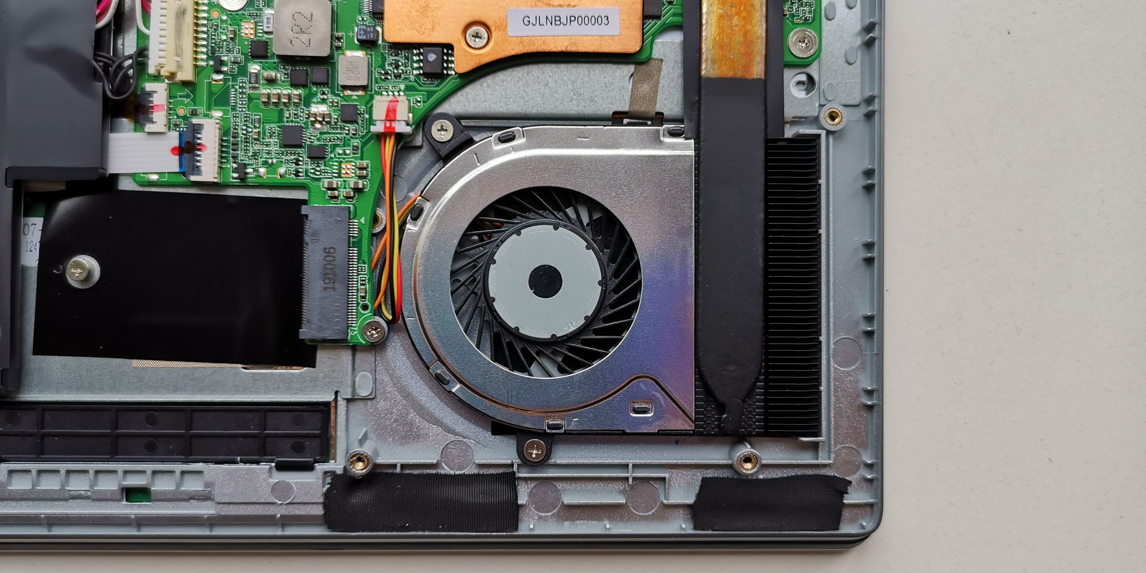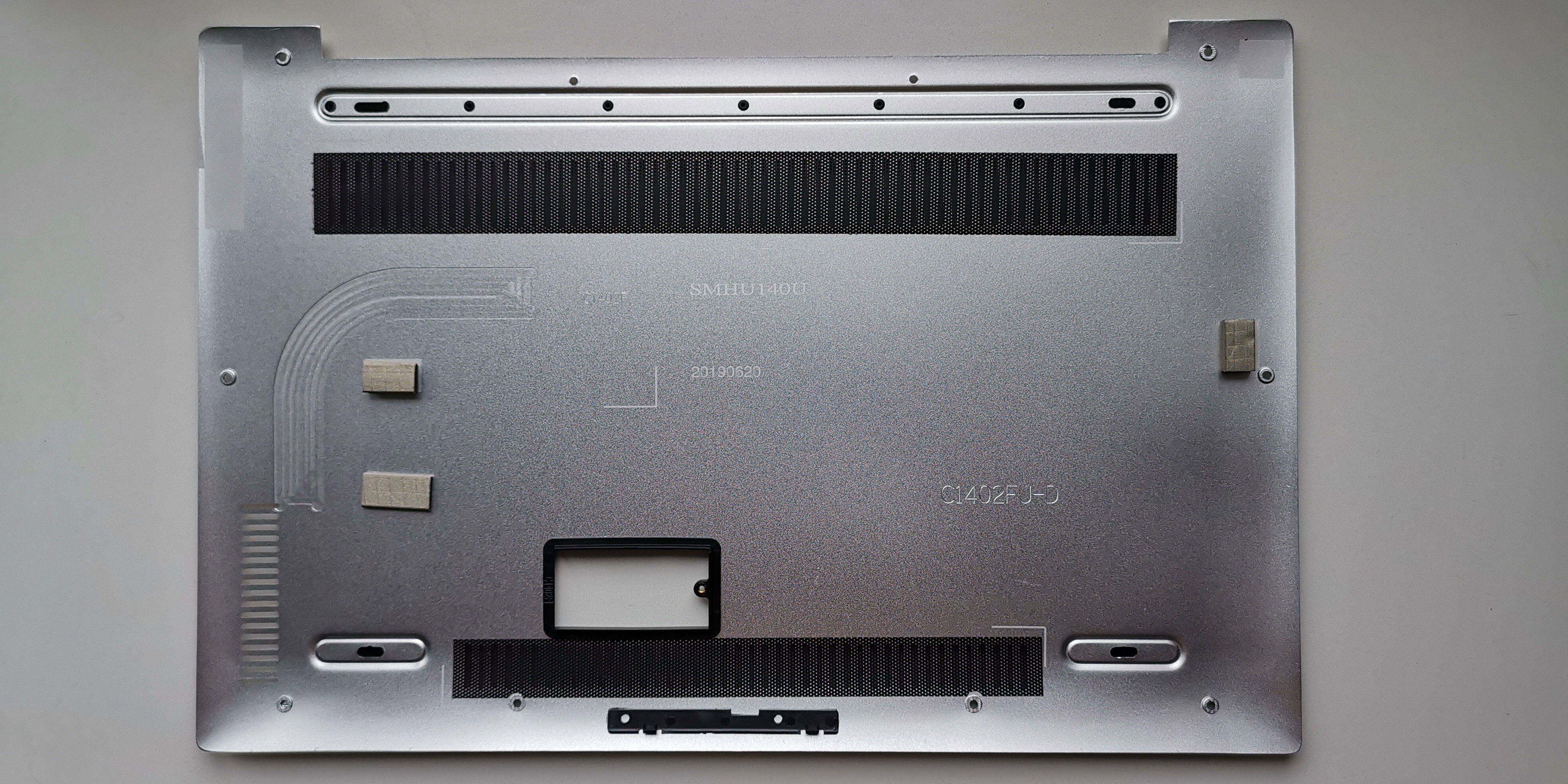 Kommen wir nun zu den äußeren Details des X4 Pro‘s. Die Displayoberseite bietet nichts Neues und kommt, wie schon erwähnt, in gebürsteter Metalloptik daher, nur eben aus Kunststoff. In der Mitte ist wie eh und je der typische Jumper-Schriftzug in Silber aufgedruckt. Die Unterseite des X4 Pro kann nach Entfernen der 10 Schrauben abgenommen werden. Eine der Schrauben ist mit einem Garantiesiegel versehen. Auffälligstes Merkmal sind die geänderten Gummifüße. Während bisher alle Modelle von Jumper über 4 runde Gummifüße verfügten, hat man sich beim X4 Pro entschlossen, im vorderen Bereich auf 2 längliche und im hinterem Bereich zum Display hin auf eine durchgehende Gummierung zu wechseln. Dies verschafft dem Gerät einen noch besseren Halt auf rutschigen Untergrund. Wer dem Rechner weiteren Speicher spendieren will, kann eine zusätzliche M.2 SATA 3 Festplatte im 2242 Format einbauen.