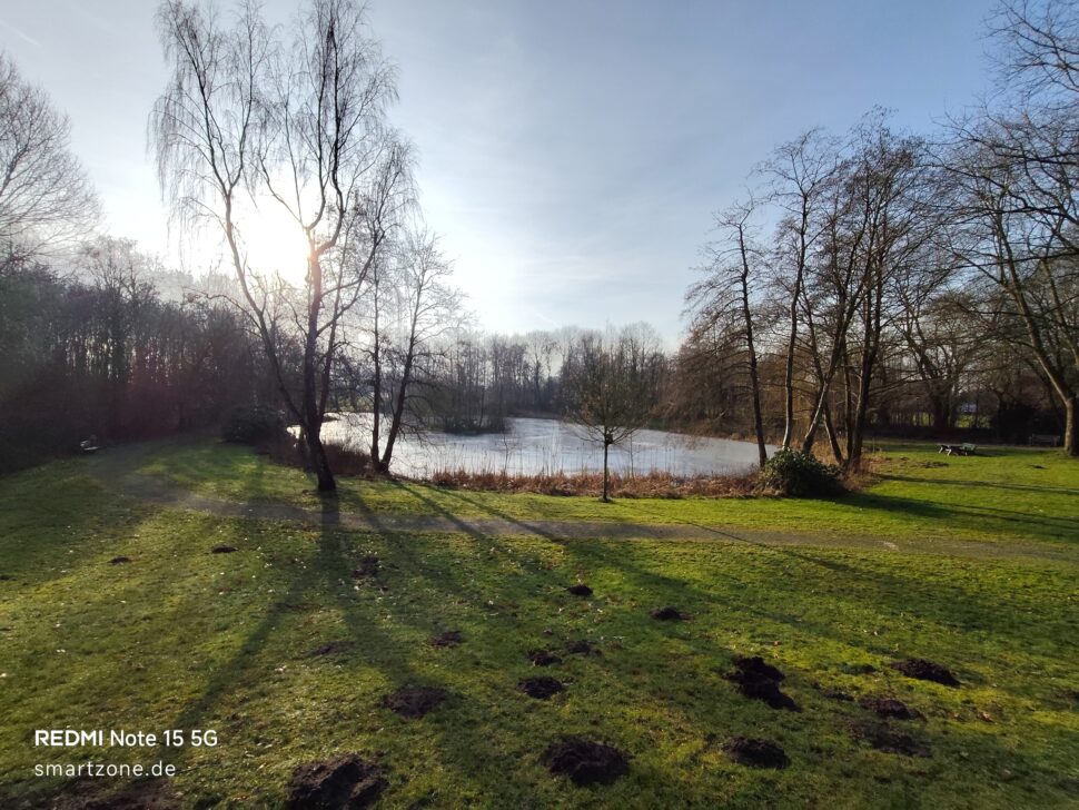 Das Honor Magic 8 Lite hat hier Probleme mitzuhalten. Die Perspektive mag noch in Ordnung sein, aber schon bei Gegenlicht schwächelt der Sensor und die Helligkeit der Aufnahme leidet. Dieser Effekt ist beim Redmi Note 15 5G weniger stark ausgeprägt und es entstehen am Tag ausreichend helle Aufnahmen. Der Aufnahmewinkel fällt fast identisch aus. Details sind eher Mangelware, wobei das Redmi hier noch stärker aufgestellt ist als das Honor; gleiches gilt für die Kontraste. Die Farben beim Smartphone von Redmi sind noch akzeptabel, während diese beim Honor Magic 8 Lite unausgegoren wirken.