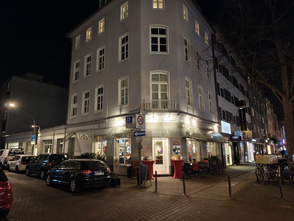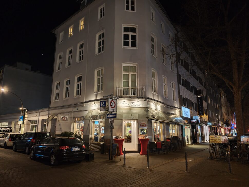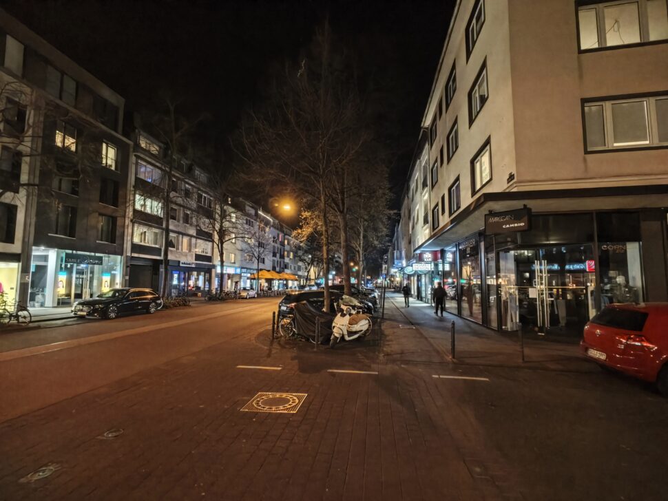 Bei den Nachtaufnahmen ist das Bild ein wenig differenzierter, denn je nach Motiv liegt mal das Xiaomi und mal das Motorola in Front. Schaut ihr euch das zweite Bild an, hat das Smartphone von Xiaomi sichtbare Vorteile, während sich im dritten Bild das Ergebnis umdreht. Es scheint, als hätte das Motorola Signature bei Dunkelheit mehr Reserven durch den größeren Sensor. Gleichzeitig wird der Himmel gräulich und verliert seine schwarze Farbe. Die Farben sind grundsätzlich, wie schon am Tag, beim Smartphone von Xiaomi recht kräftig, während das Motorola natürlich bleibt. Bildrauschen ist bei keinem der beiden Smartphones zu finden. Die Dynamik der Aufnahmen ist hervorragend, mit leichten Vorteilen für das Xiaomi 17. In der Schärfe und im Detailreichtum der Bilder sind keine Unterschiede auszumachen. In der Summe funktioniert der Nachtmodus des Xiaomi minimal besser als der des Motorola.