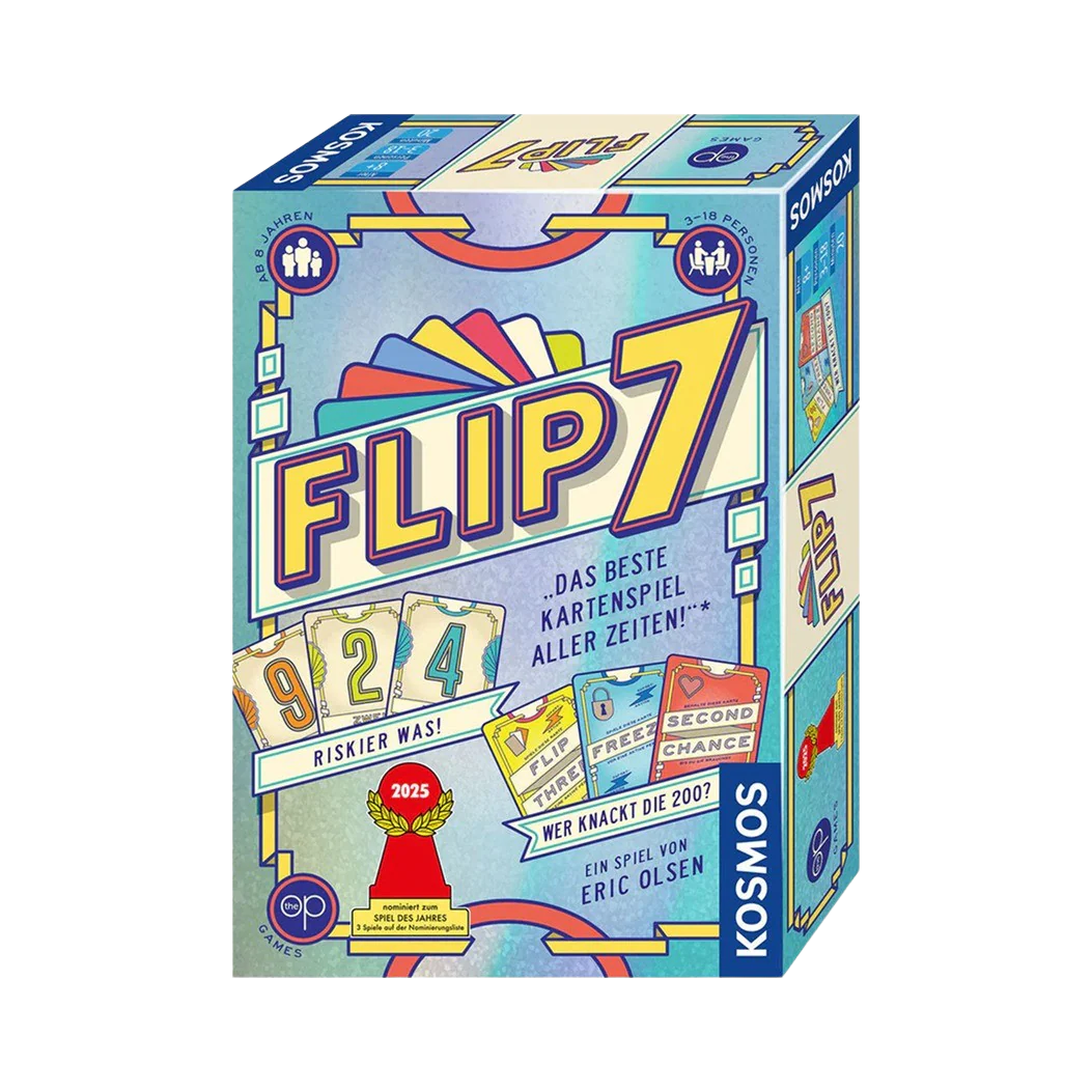 Über ein YouTube-Video bin ich vor einigen Wochen auf das Kartenspiel Flip 7 von Eric Olsen aufmerksam geworden. Das in Deutschland von Kosmos und im Original von The OP Games vertriebene Spiel kombiniert ein einfaches Konzept mit einer wunderschönen Begleit-App für Android: Score 7.