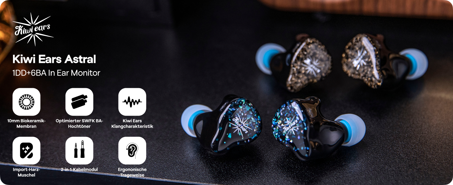 Mit den Kiwi Ears Astral bekommen wir heute vom chinesischen Hersteller Linsoul HiFi auf die Ohren. Das neue In-Ear-Modell spricht gezielt audiophile Hörer an oder solche, die es werden möchten. Die Astral kombinieren einen dynamischen Treiber mit sechs Balanced-Armature-Treibern (BA) pro Seite. Ziel ist es, sowohl eine neutrale Abstimmung als auch eine gewisse musikalische Wärme zu liefern. Bei dieser Vielzahl an BA-Treibern könnt ihr einiges an Klarheit erwarten, doch die Menge allein entscheidet nicht immer.