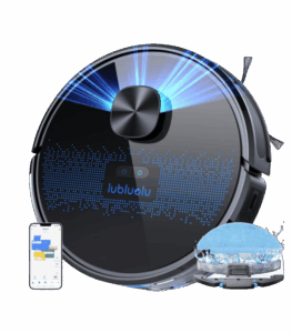 Der Lubluelu SL60D ist ein Saugroboter mit Wischfunktion, der sich besonders an preisbewusste Käufer richtet. Für 100€ bekommt ihr einen Saugroboter mit Laser-Navigation, eine Basisstation ist jedoch nicht an Bord. Das Staubfach leert ihr klassisch, indem ihr die Kammer vom Roboter löst. Genauso füllt ihr das Wasser auf, wenn ihr wischen lassen möchtet.