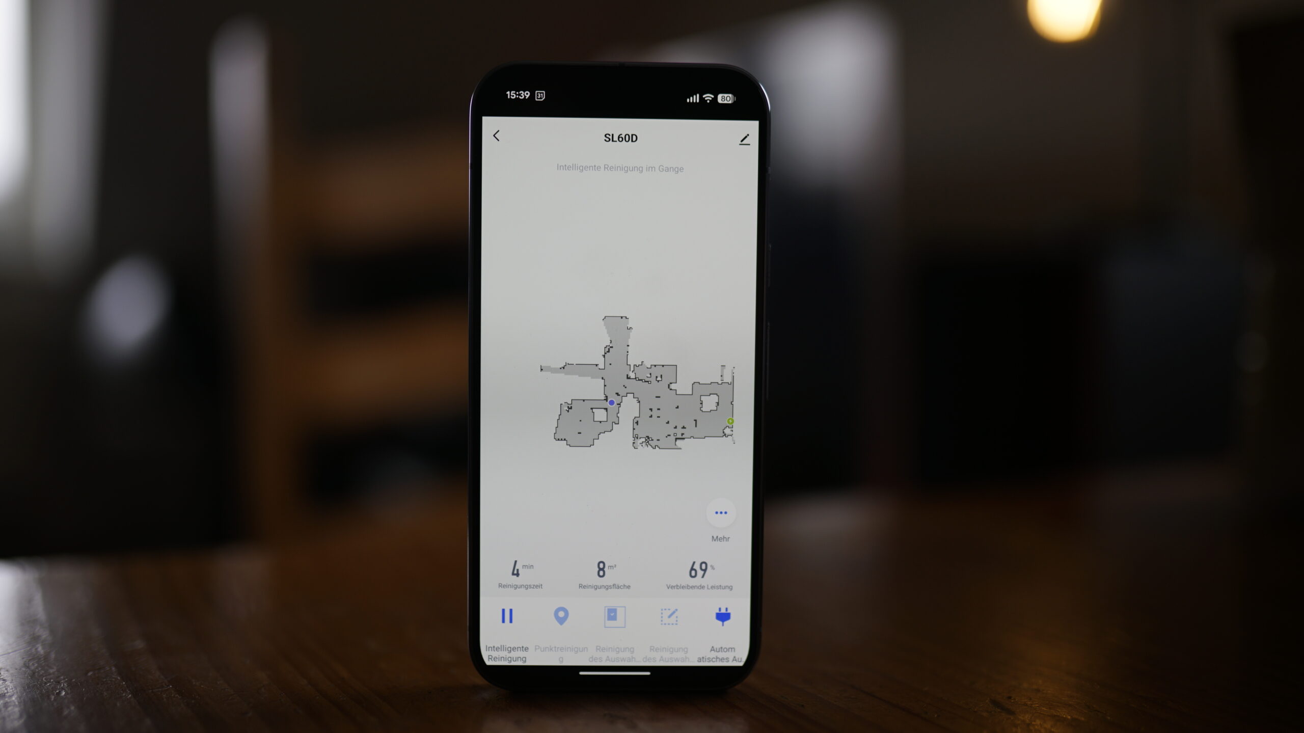 Letztendlich funktionierte die Kartierung flott und präzise. Schwächen zeigt das Gerät jedoch bei der Navigation und dem robusten Umgang mit Möbeln oder Wänden. Diese Resolutheit kommt dem SL60D bei Türschwellen wiederum entgegen: Hier hatte er keinerlei Probleme und schnitt in meiner Wohnung besser ab als einige deutlich teurere Konkurrenzmodelle. Auch auf meinen Teppich fuhr er jederzeit mühelos.