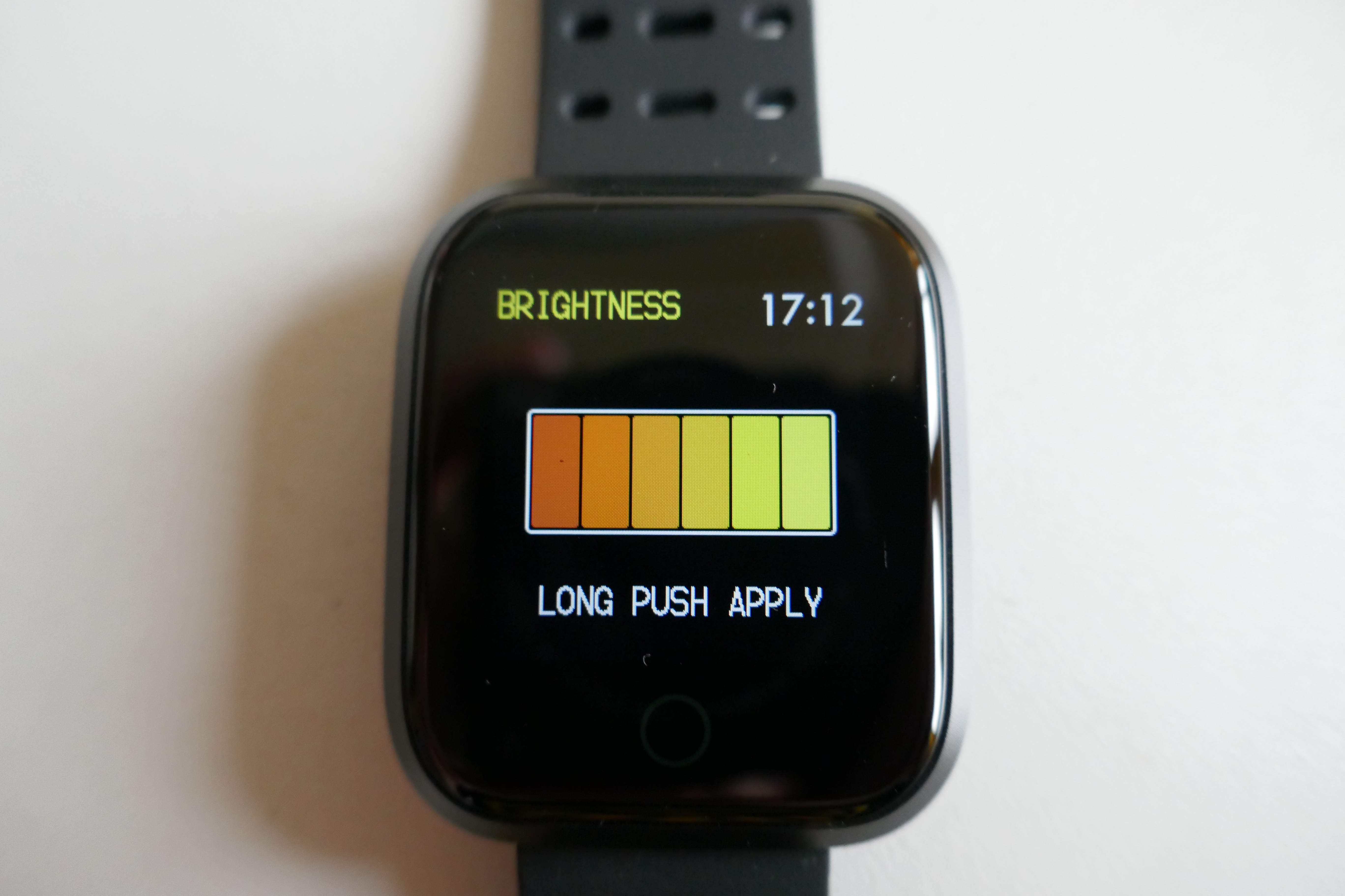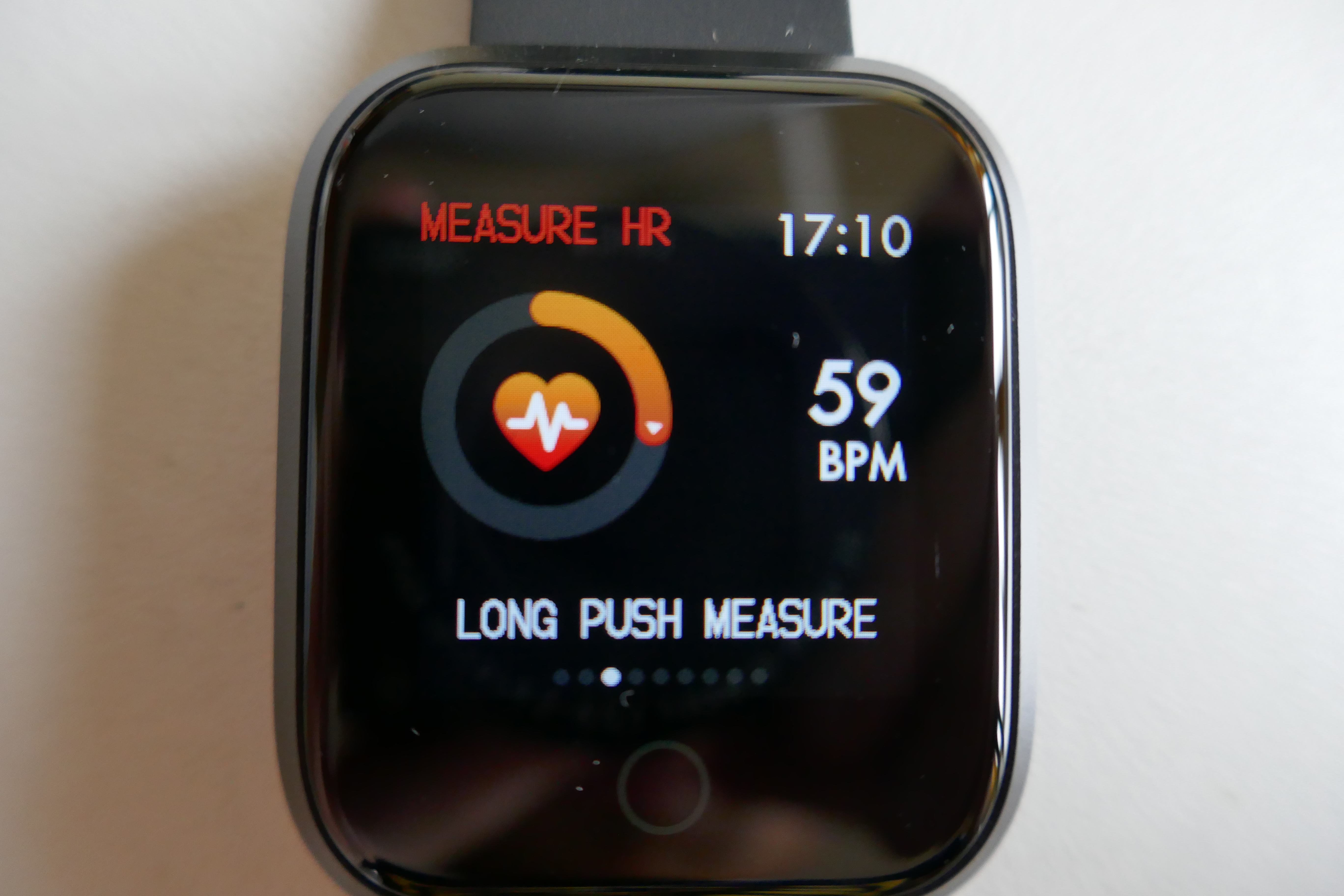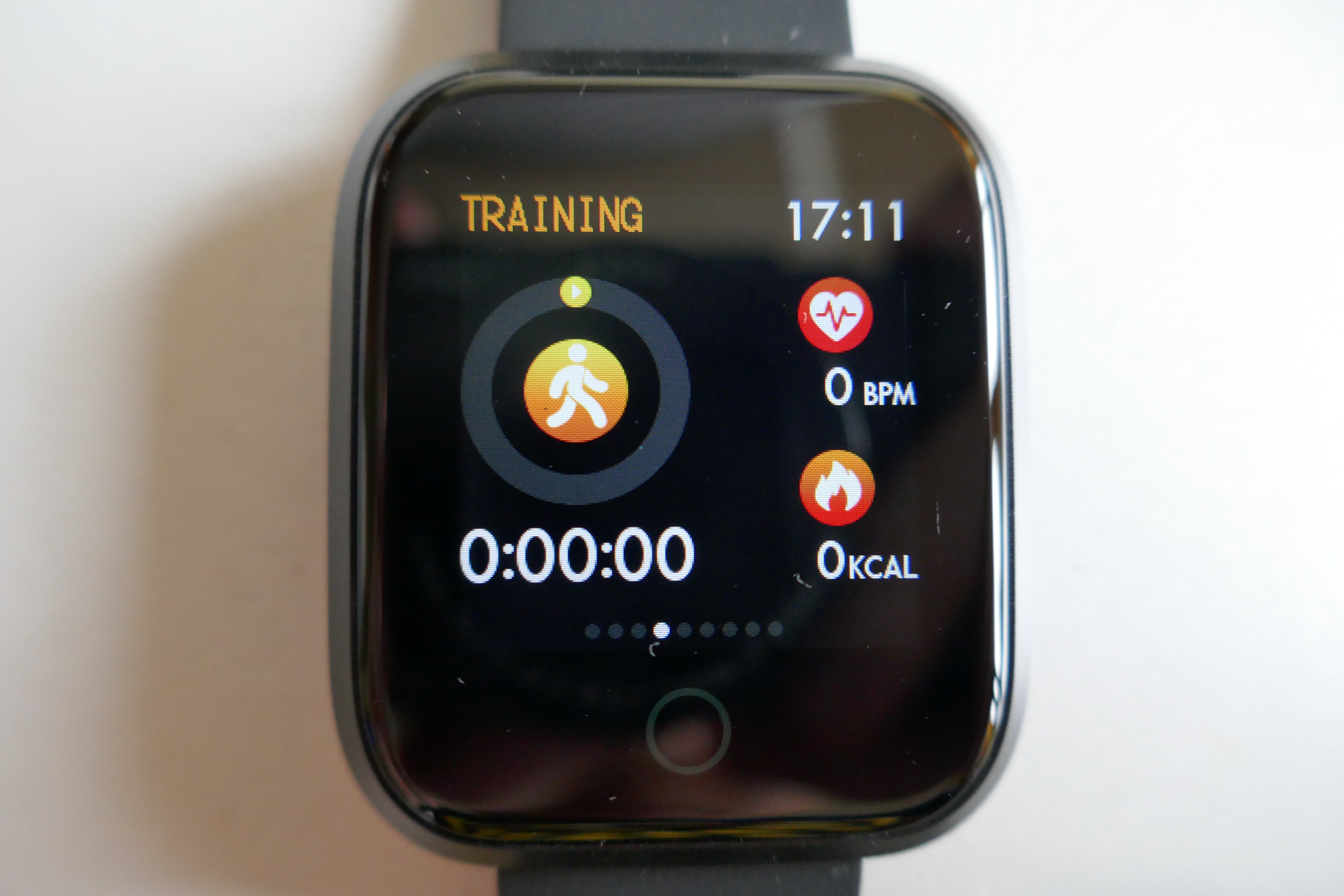 Von AMOLED kann nicht die Rede sein. Viel mehr kommt ein einfacher TFT Screen zum Einsatz, der offiziell 1,33 Zoll misst und 240 x 240 Pixel bietet. Das entspricht grob 255 ppi, ist also nicht gerade hoch aufgelöst. Allerdings muss man zugeben, dass dies bei dem kleinen Display kaum ins Gewicht fällt. Die Farben auf diesem Bildschirm sind okay, können aber mit IPS oder AMOLED Screens nicht mithalten. Die Helligkeit geht auf der maximalen Stufe in Ordnung und ist auch tagsüber gut ablesbar. Auch niedrigste Einstellung hingegen ist abends und nachts ebenfalls brauchbar und angenehm dunkel. Das Display ist nur über einen Soft-Touch-Button steuerbar, das wiedergegebene Bild hat keine Touchfunktion. Der Soft-Touch-Button reagiert schnell und verarbeitet auch häufiges und wildes Tippen zuverlässig.