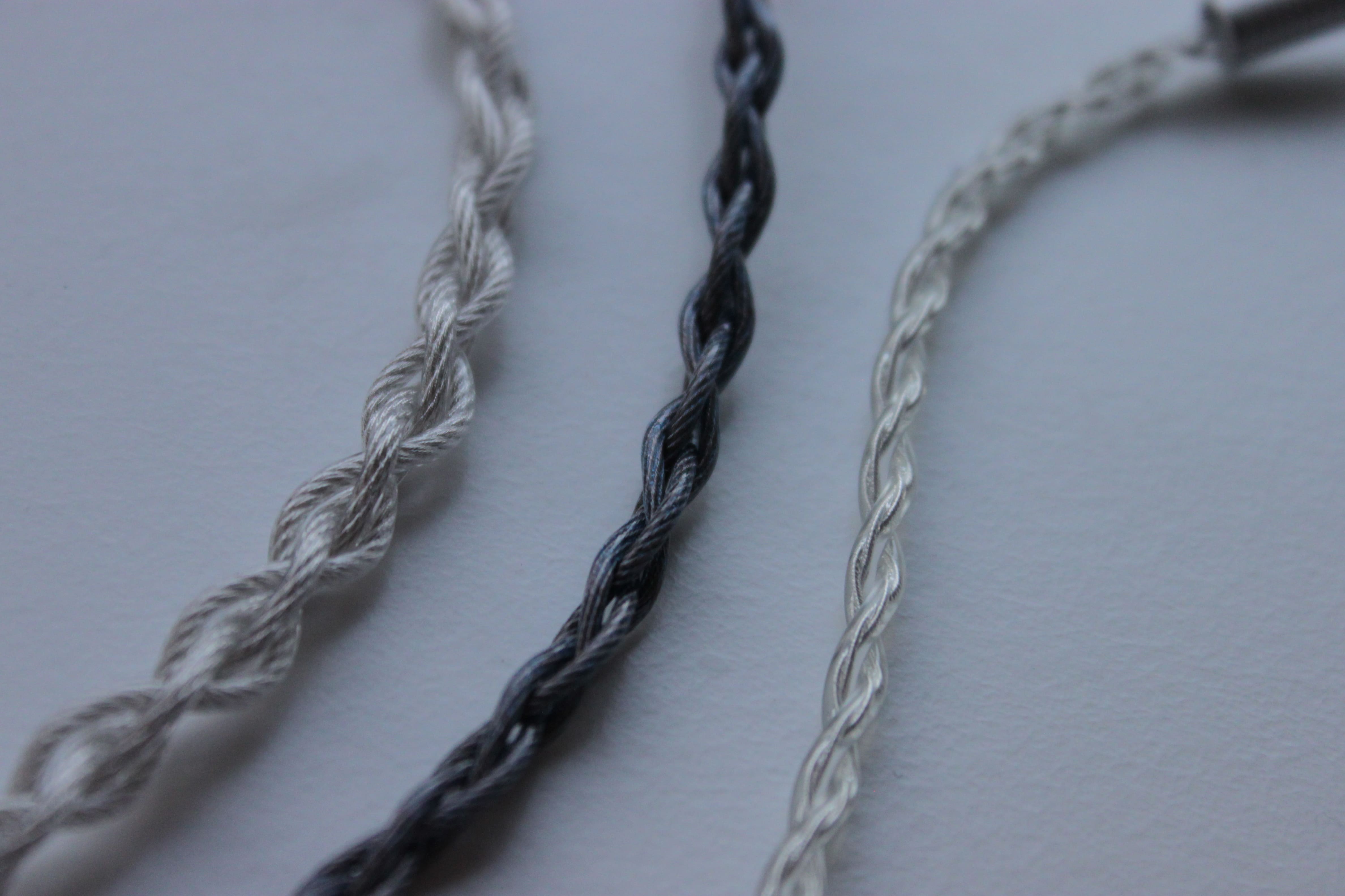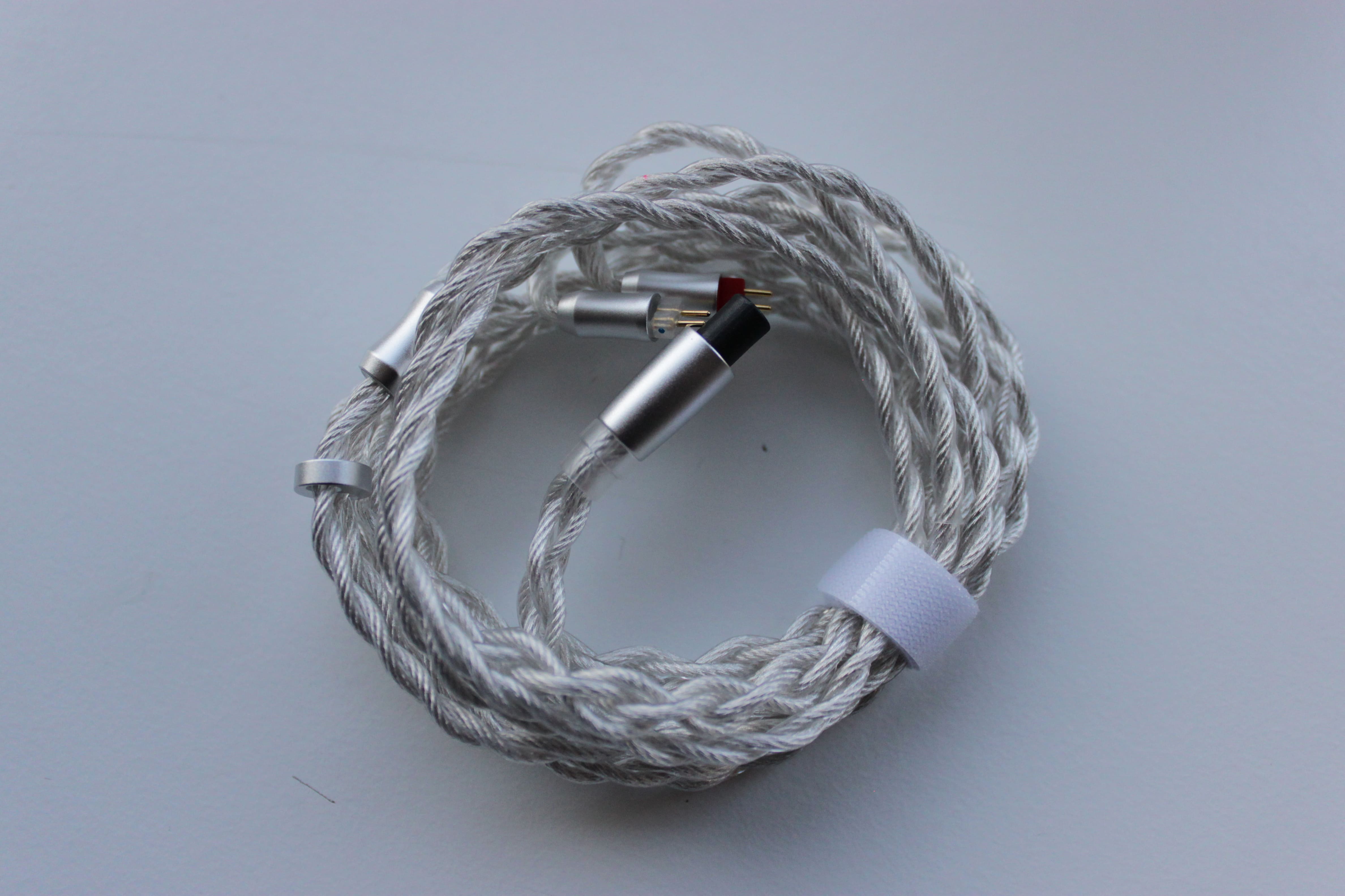 - ein 1,25m langes, hochwertiges, geflochtenes, versilbertes Kupferkabel mit 2-Pin-Anschluss an der Kopfhörerseite und 4-Pin-Anschluss am Stecker