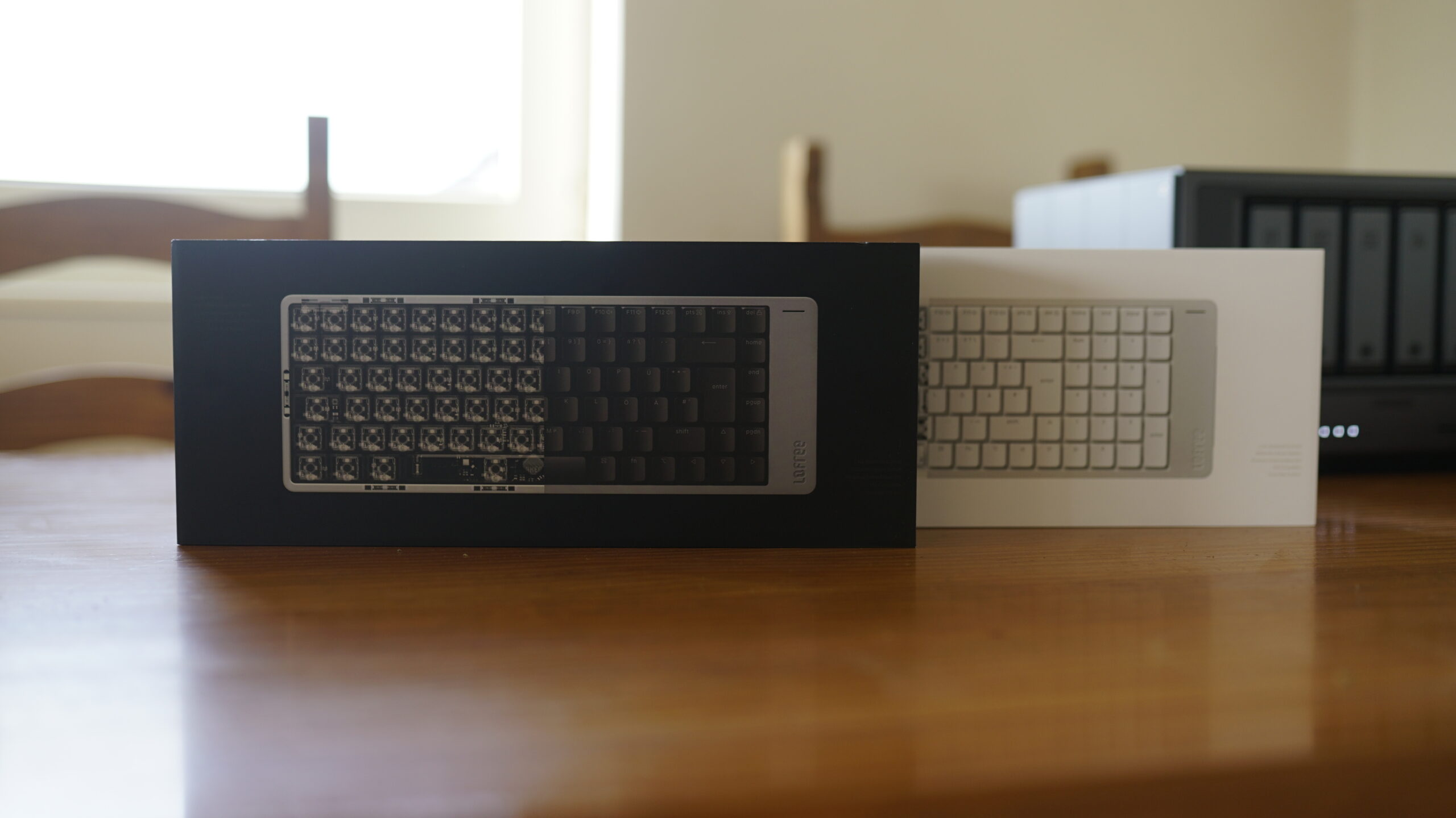 Die Lofree Flow 2 wird in drei verschiedenen Versionen angeboten. Es gibt eine kompakte Variante mit 68 Tasten, also ohne die obere Reihe mit den Funktionstasten und ohne Nummernblock. Bei der Variante mit 84 Tasten kommen die Funktionstasten hinzu und bei 100 Tasten der Nummernblock.