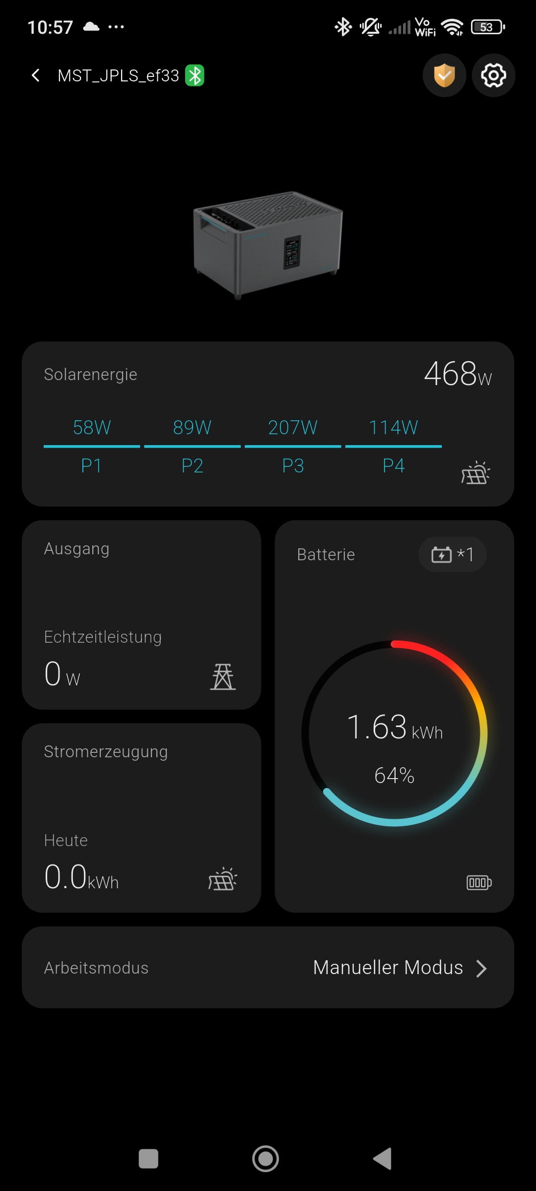 Für den Test wurden alle Anschlüsse mit den originalen Abdeckkappen verschlossen, um ein Eindringen von Feuchtigkeit zu verhindern. Das Speichersystem war in den kompletten 48 Stunden weiterhin in Betrieb. Leider verfügt die Marstek App über keinerlei Temperaturüberwachung. Somit kann der Nutzer nicht nachvollziehen, in welchem Temperaturbereich sich der Speicher momentan bewegt.