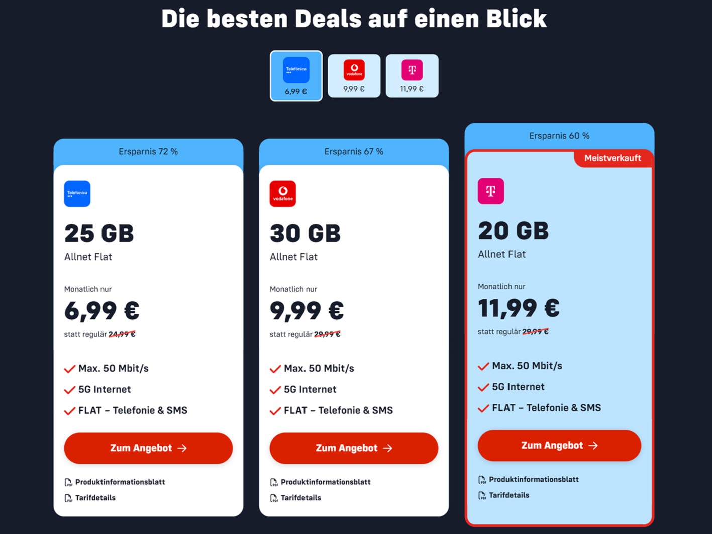 Aber werft bitte zuvor einen Blick auf unsere ausgewählten Vertragsdeals. Regelmäßig zeigen wir euch Aktionen, bei denen ihr deutlich weniger zahlt!