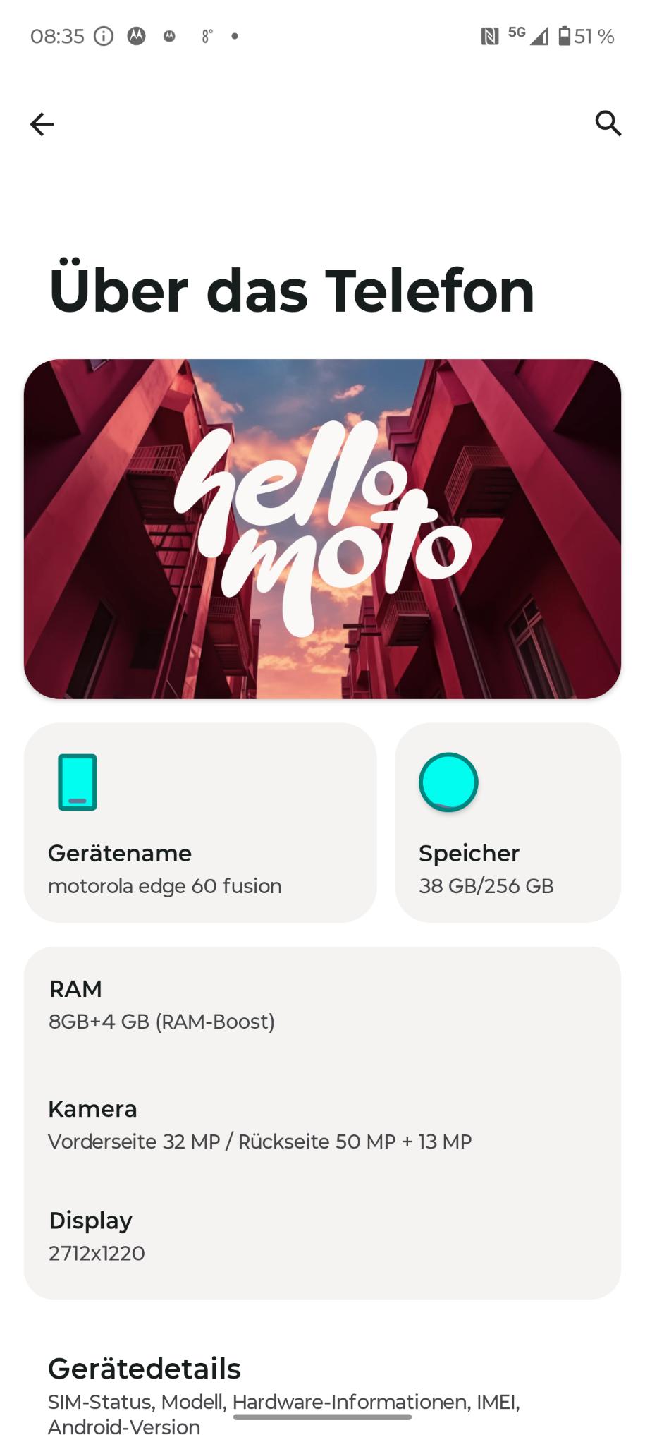 Ansonsten geht die Bedienung der Software flüssig von der Hand. Das komplette System des Motorola Edge 60 Fusion ist in Deutsch verfügbar. Abstürze oder Auffälligkeiten gab es in den vergangenen 3 Wochen keine. Das Smartphone erhält vier Jahre Sicherheitsupdates (März 2029) und 3 Android Basis-Updates. Damit liegt man ein Stück hinter der Konkurrenz von Samsung oder Xiaomi.