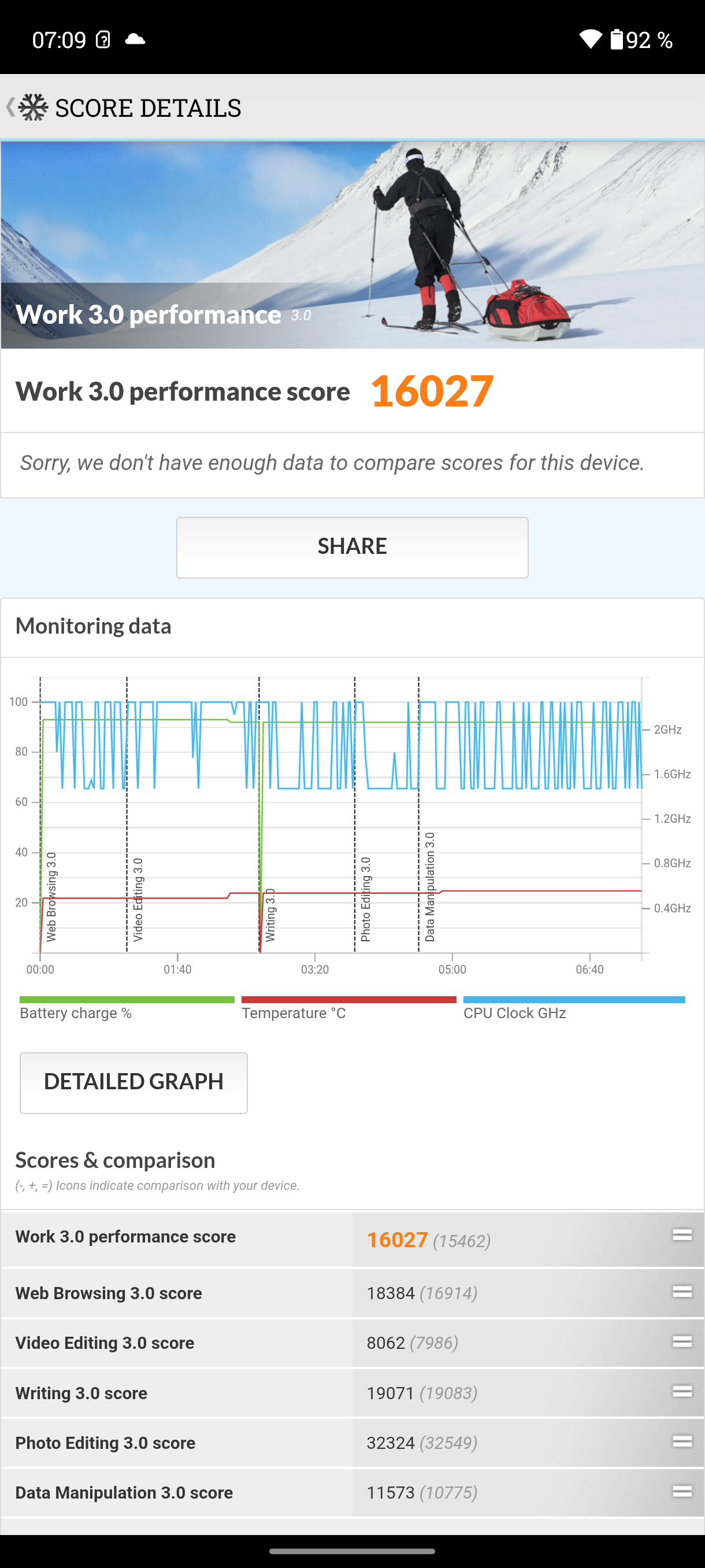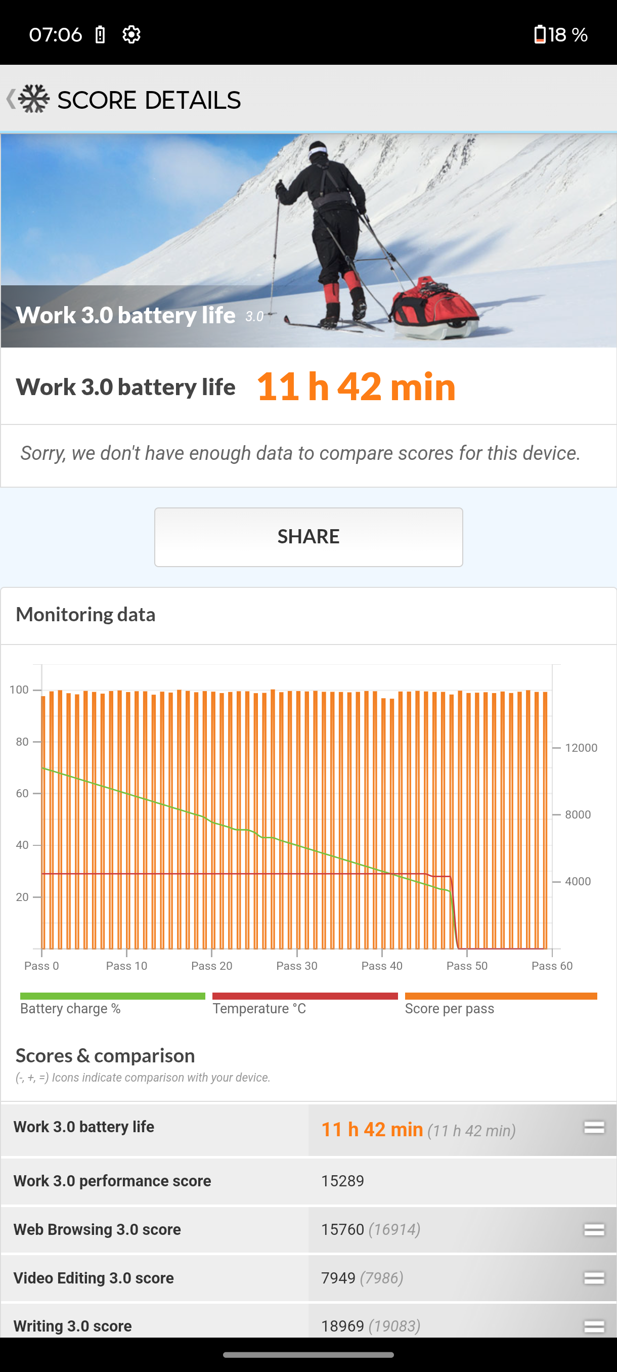 Ein 5.200mAh Akku ist verbaut. Im Akkutest bei 200 Lux und 120Hz verbrauchte das Smartphone 11 Stunden und 42 Minuten. Bei 200 Lux und 60Hz waren es 14 Stunden und 30 Minuten. Beim 24-Stunden-Stand-by-Test wurden etwa 7% des Akkus verbraucht. Im Alltag erwies sich das Smartphone als zuverlässiger Begleiter, selbst an langen Tagen. Allerdings wäre angesichts der Größe des Akkus und des Prozessors durchaus mehr zu erwarten gewesen.