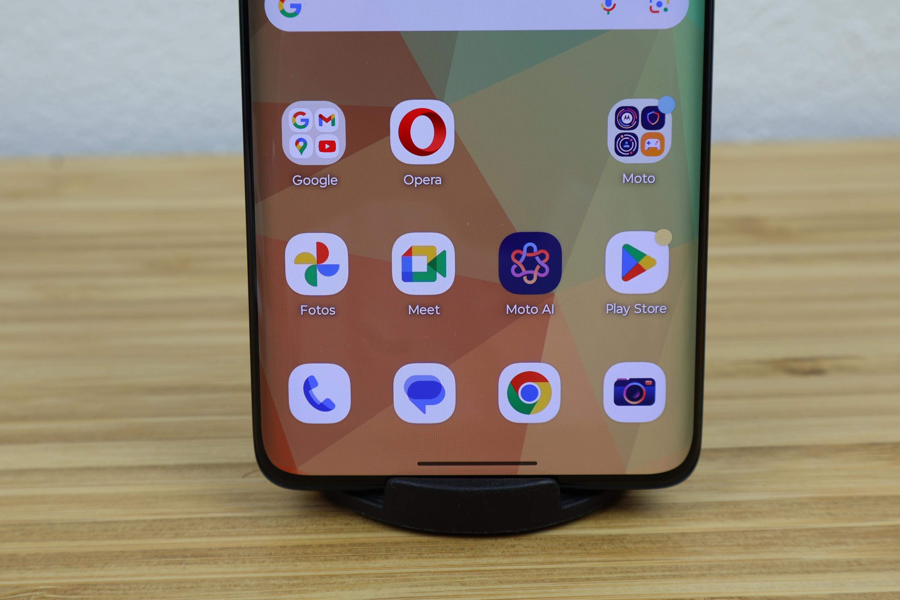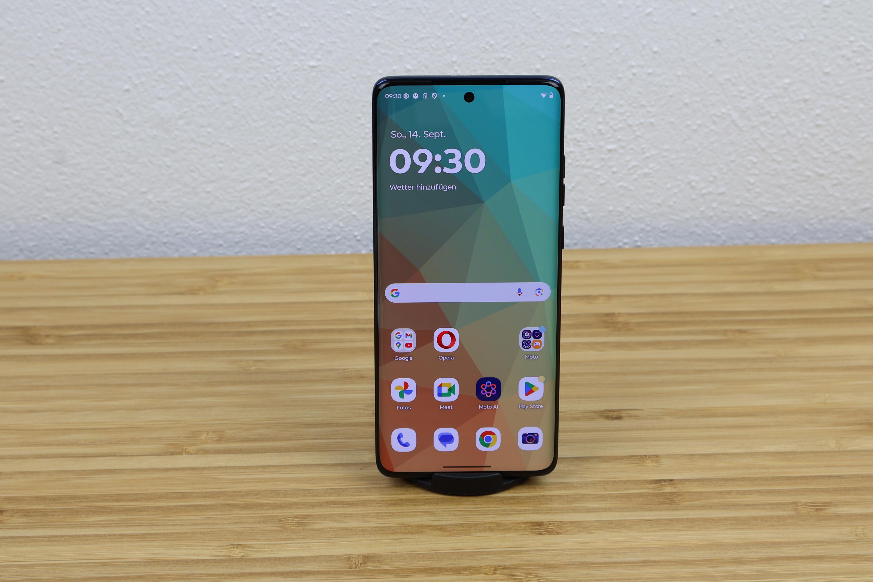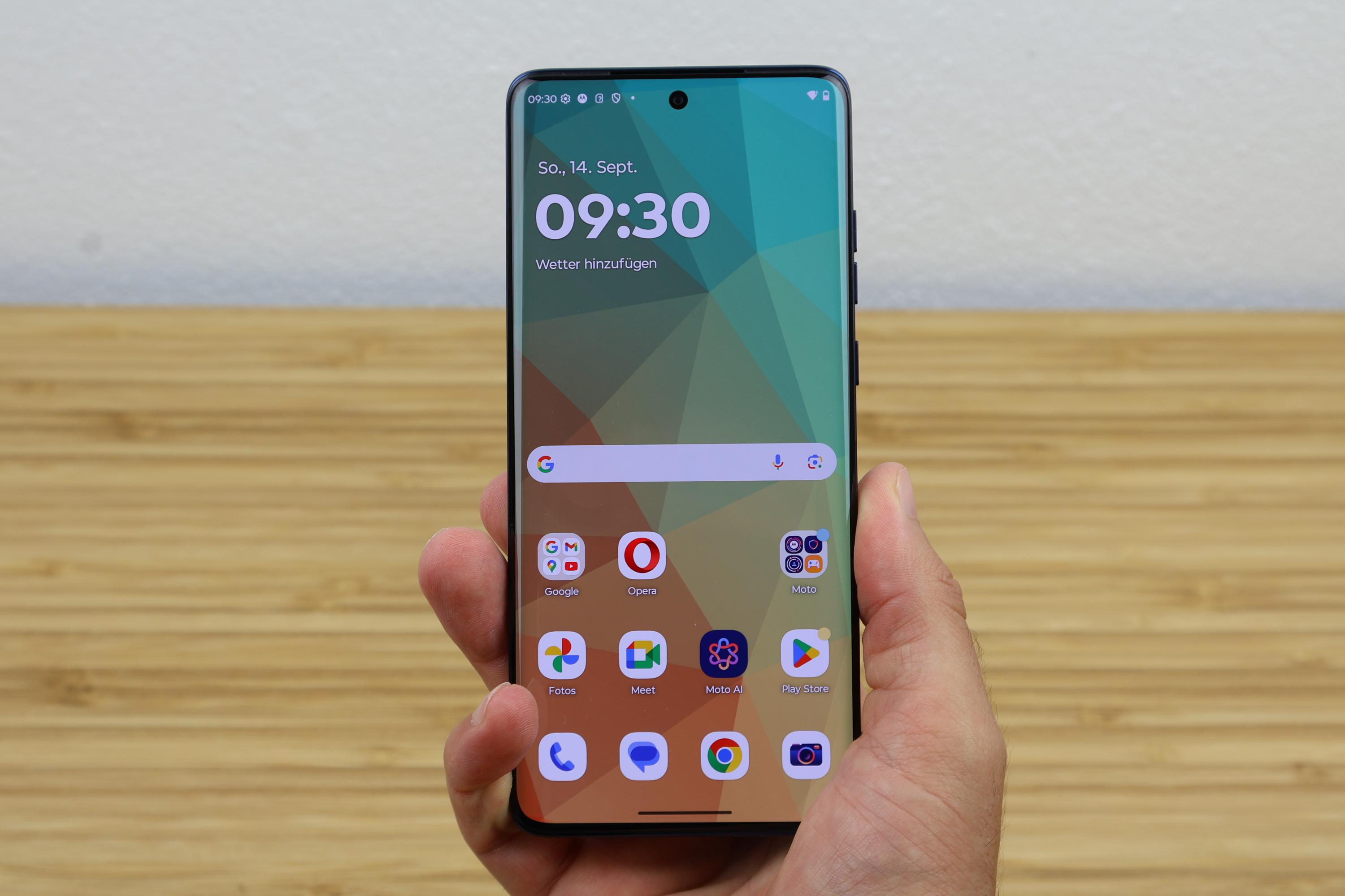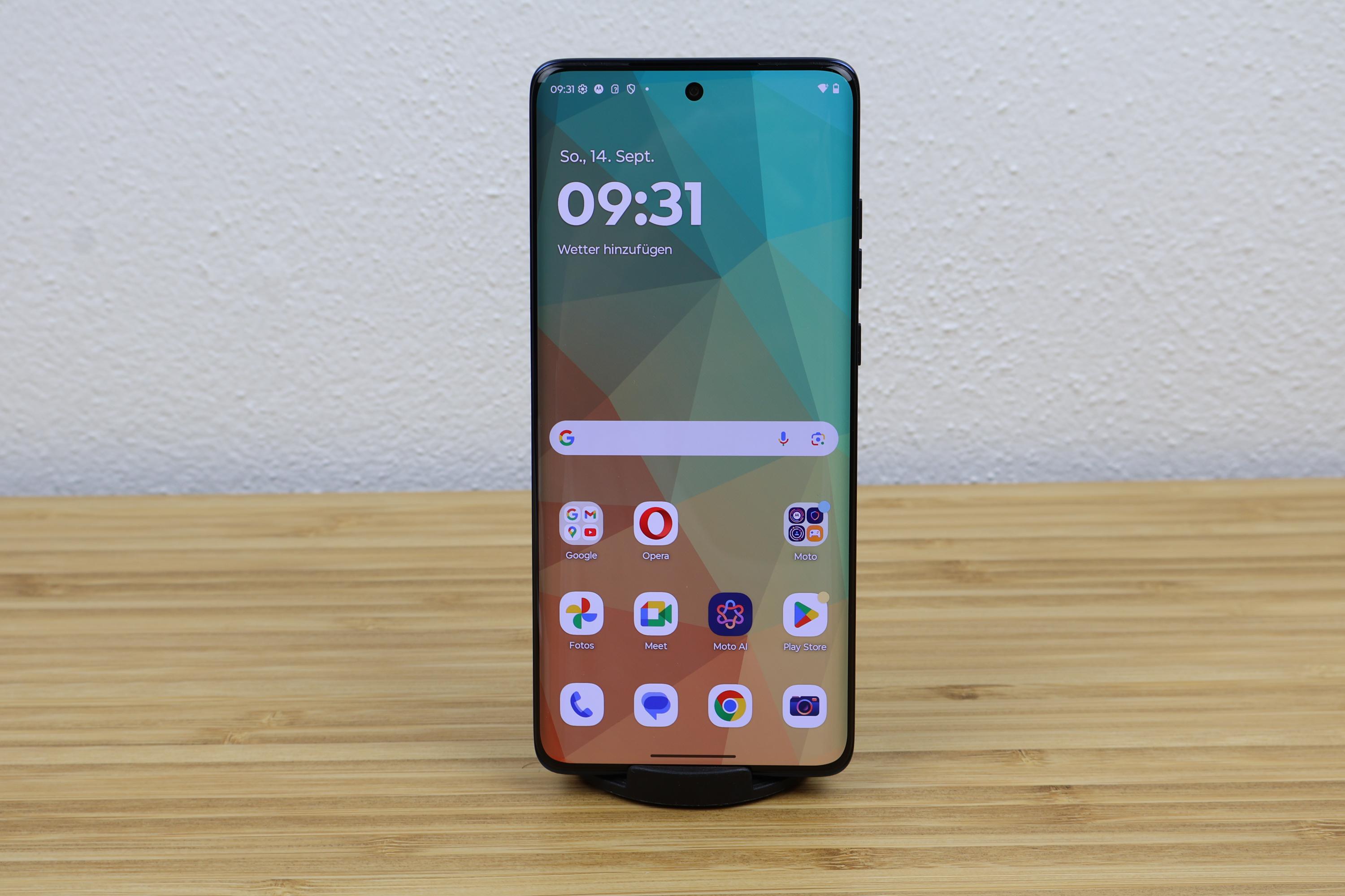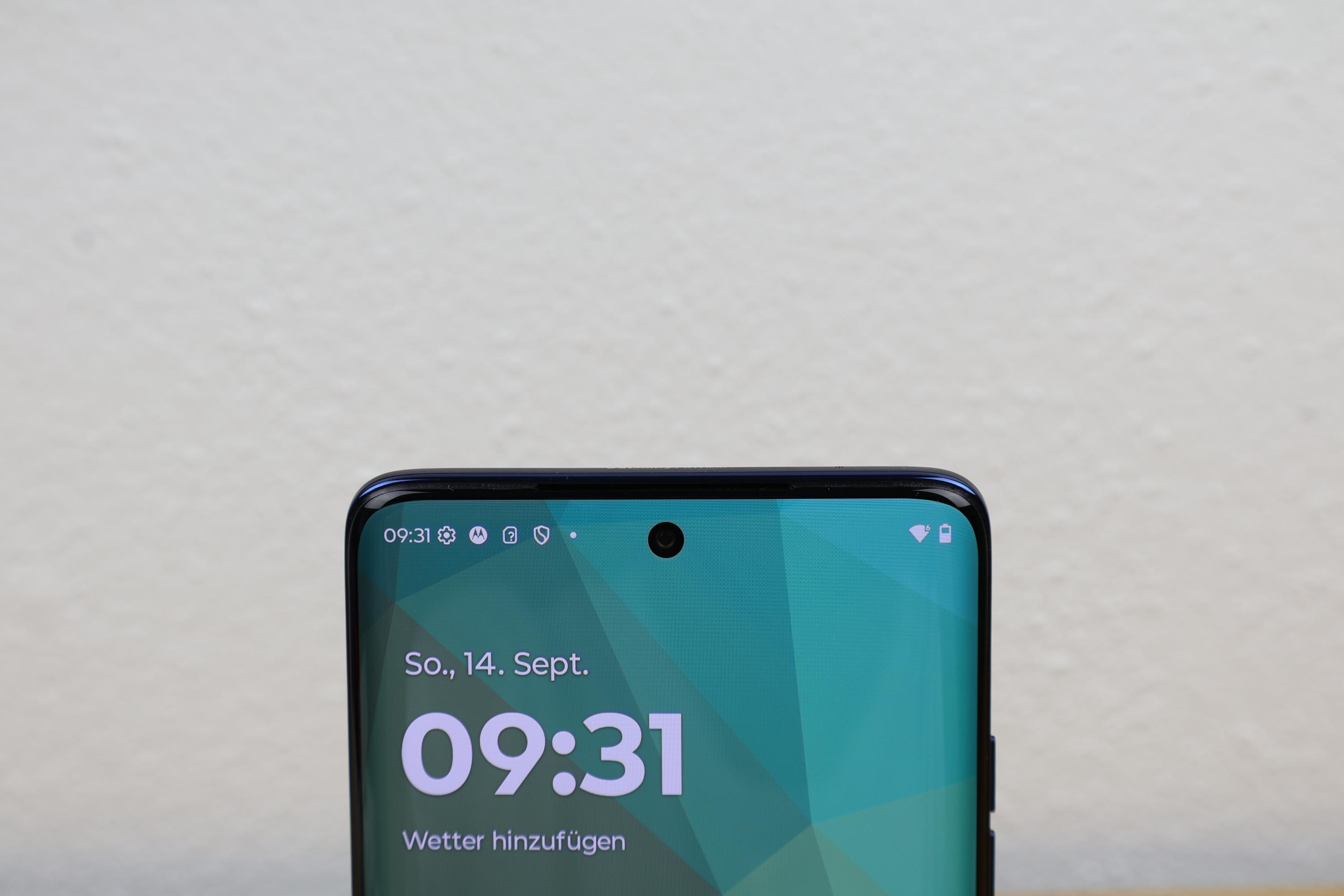 Auch das Display wurde mit der neuesten Water-Touch-Technologie ausgestattet. Dies lässt sich bestätigen: Das Gerät ist auch bei Regen problemlos nutzbar. Zusätzlich werden HDR10+ und Widevine L1 unterstützt. Motorola bewirbt außerdem eine 100-prozentige Abdeckung des DCI-P3-Farbraums und eine Farbtiefe von 10 Bit.