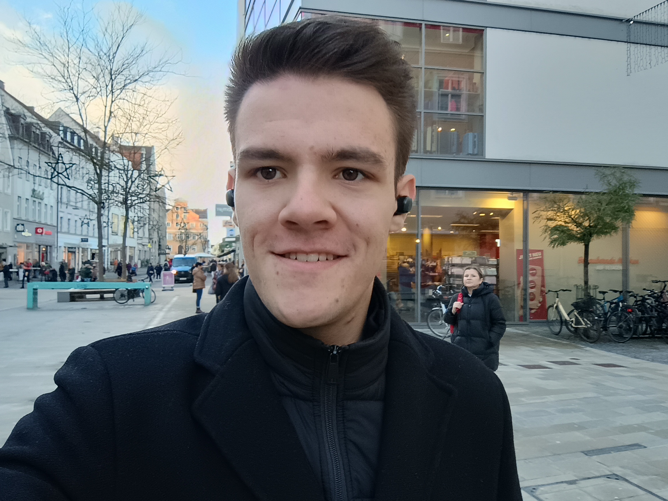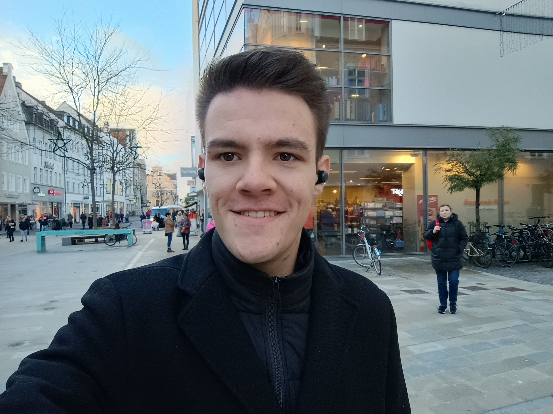 Die 16 Megapixel-Knipse auf der Vorderseite kann hingegen besser abschneiden. Hier bekommen wir eine angenehme Schärfe, gepaart mit einer natürlichen Farbdarstellung. Bei Selfies kann zwischen einem Zuschnitt und dem gesamten Sichtfeld gewählt werden. Das gesamte Sichtfeld nimmt hierbei mehr vom Hintergrund auf.
